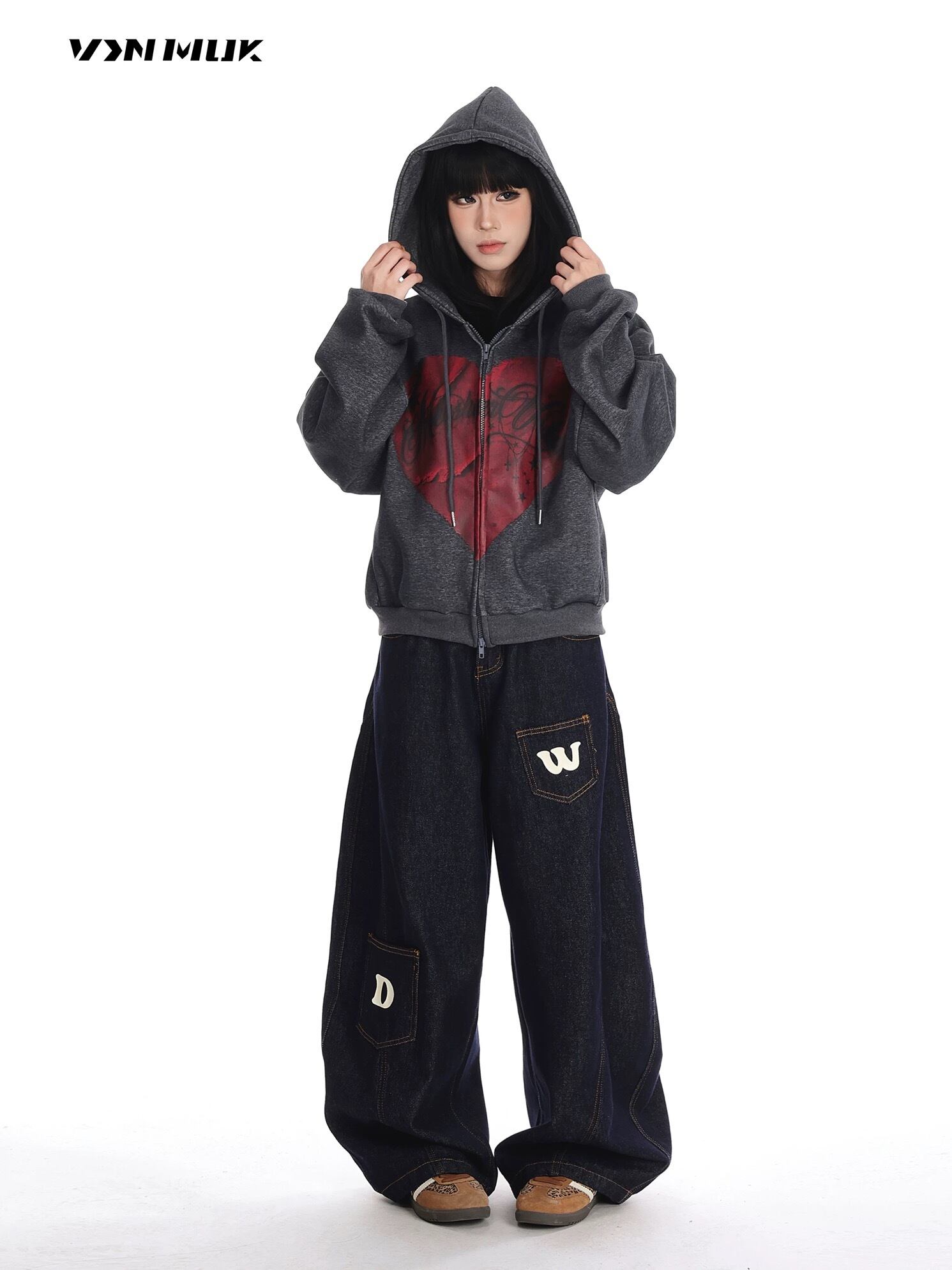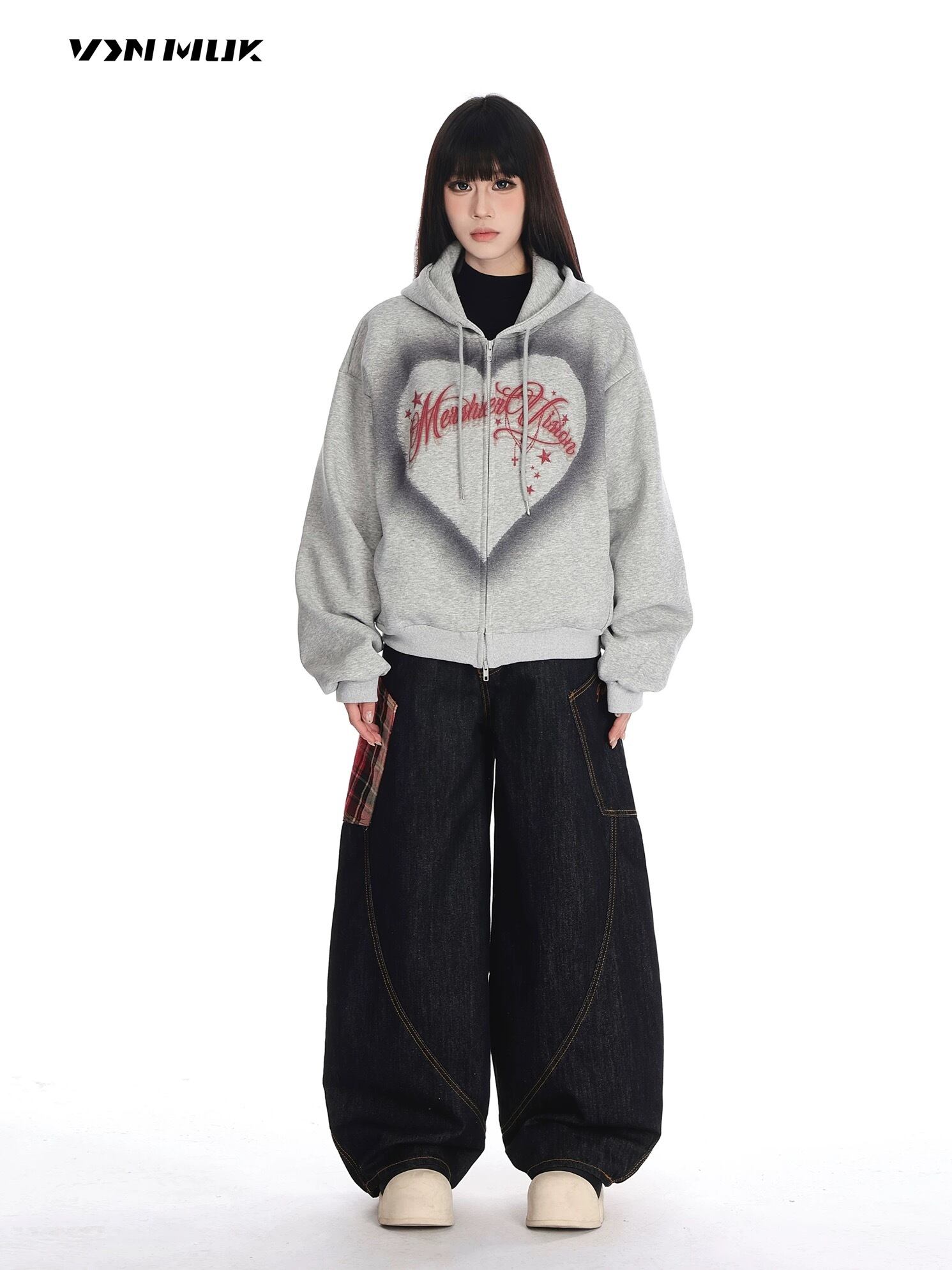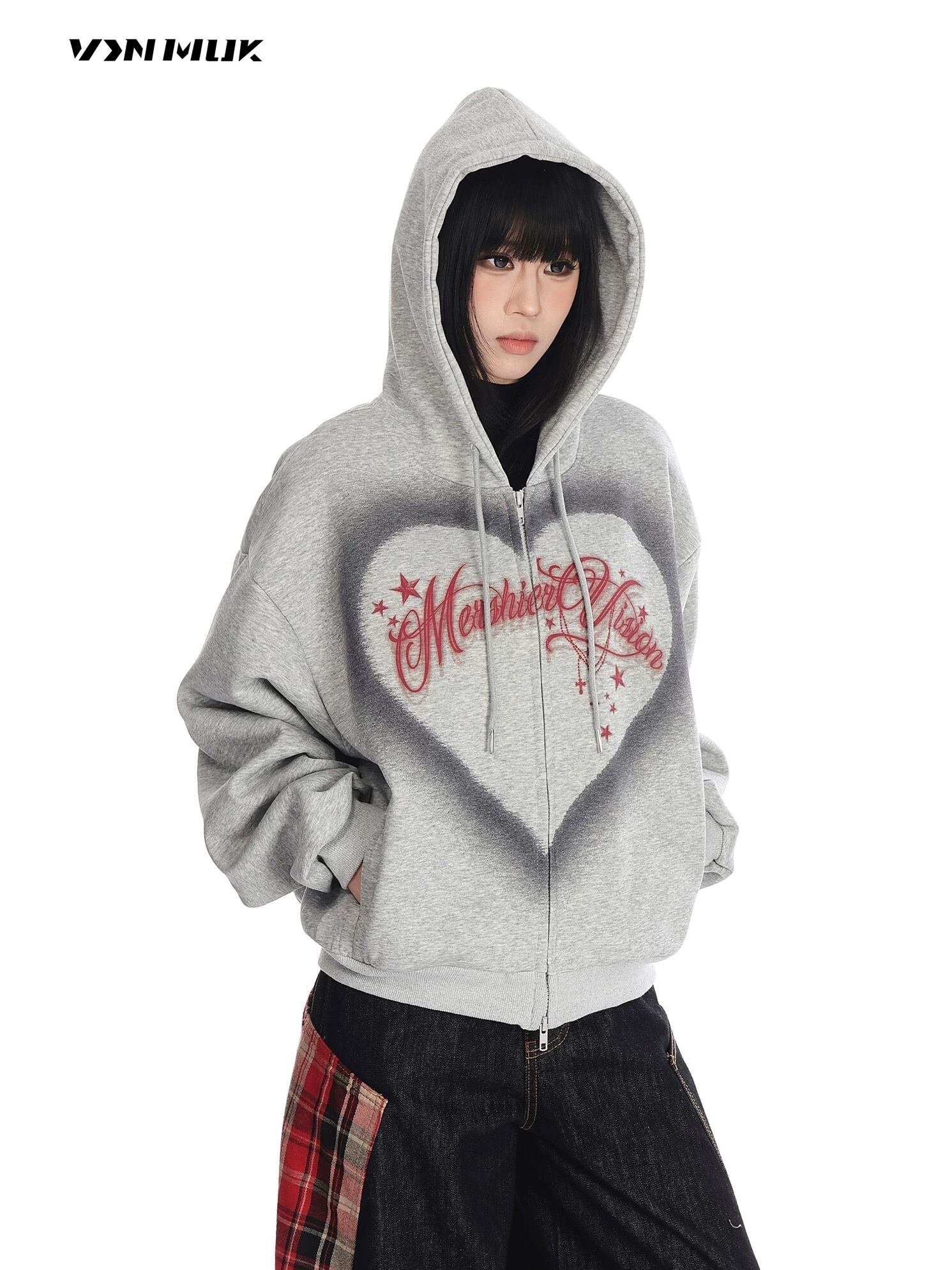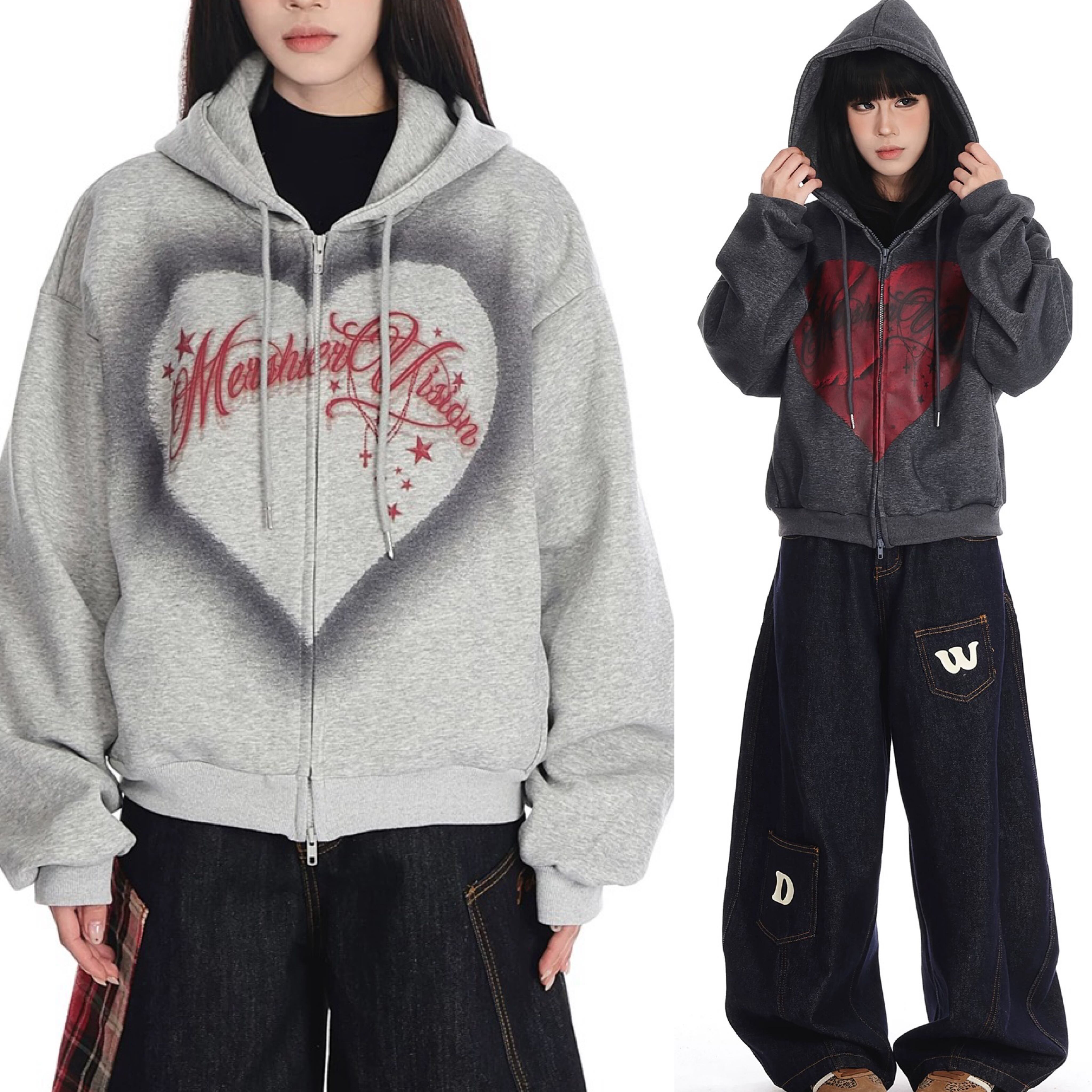 パーカー グレー ハート 黒 赤 スウェット フード トレーナー トップス アウター ジャケット ブルゾン ストリート 原宿、カジュアル メンズライク XL ユニセックス 渋谷 ギャル ダンス