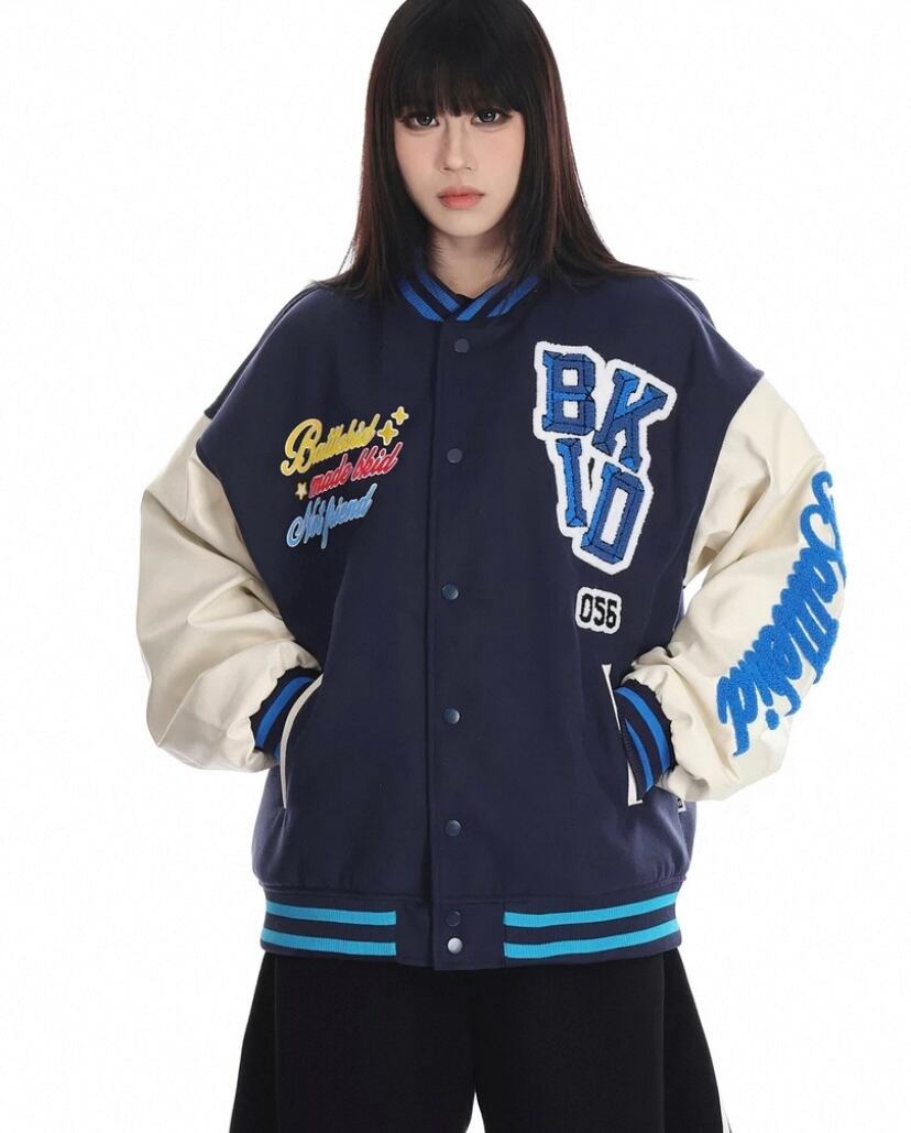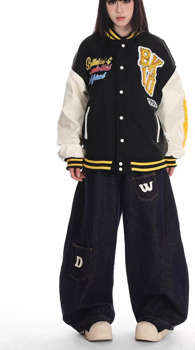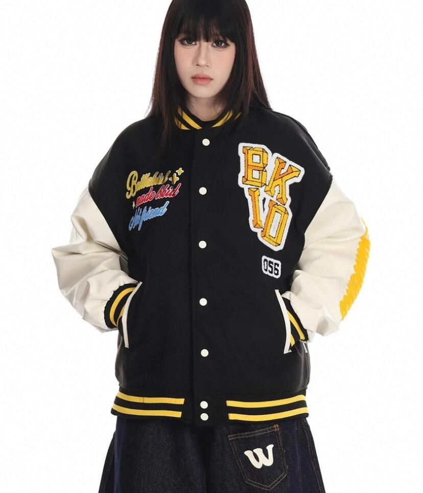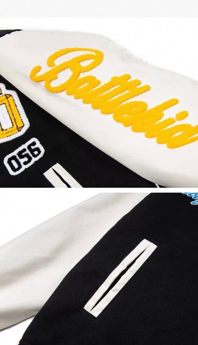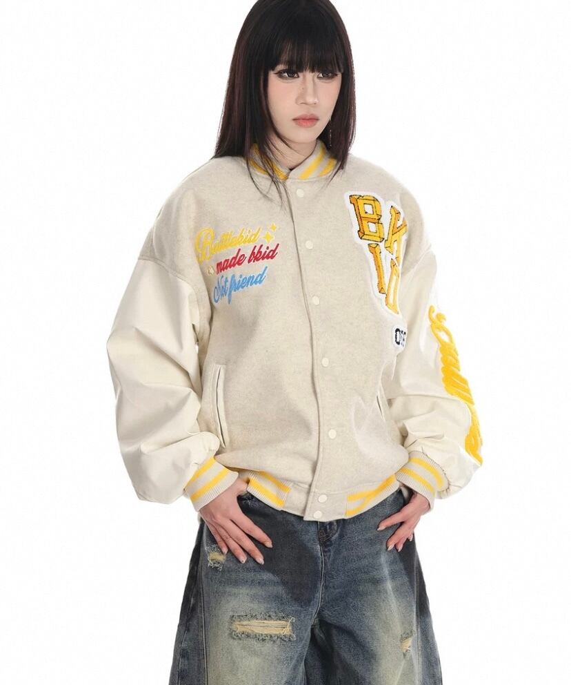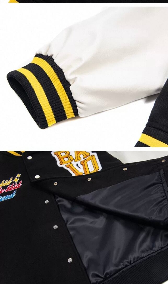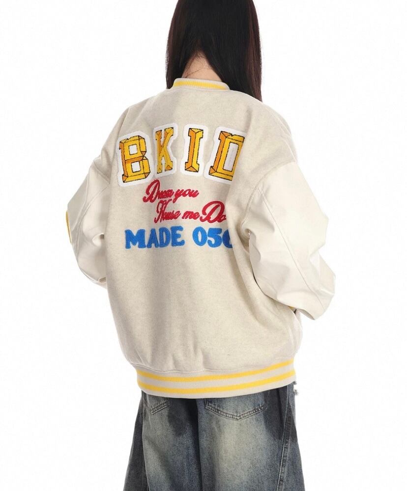 黄色 ベージュ、ネイビー、水色、黒 スタジャン、イエロー ジャケット、ブルゾン、アウター コート、ユニセックス、XL 野球 ユニフォーム、かわいい ワッペン 原宿 ストリート 渋谷