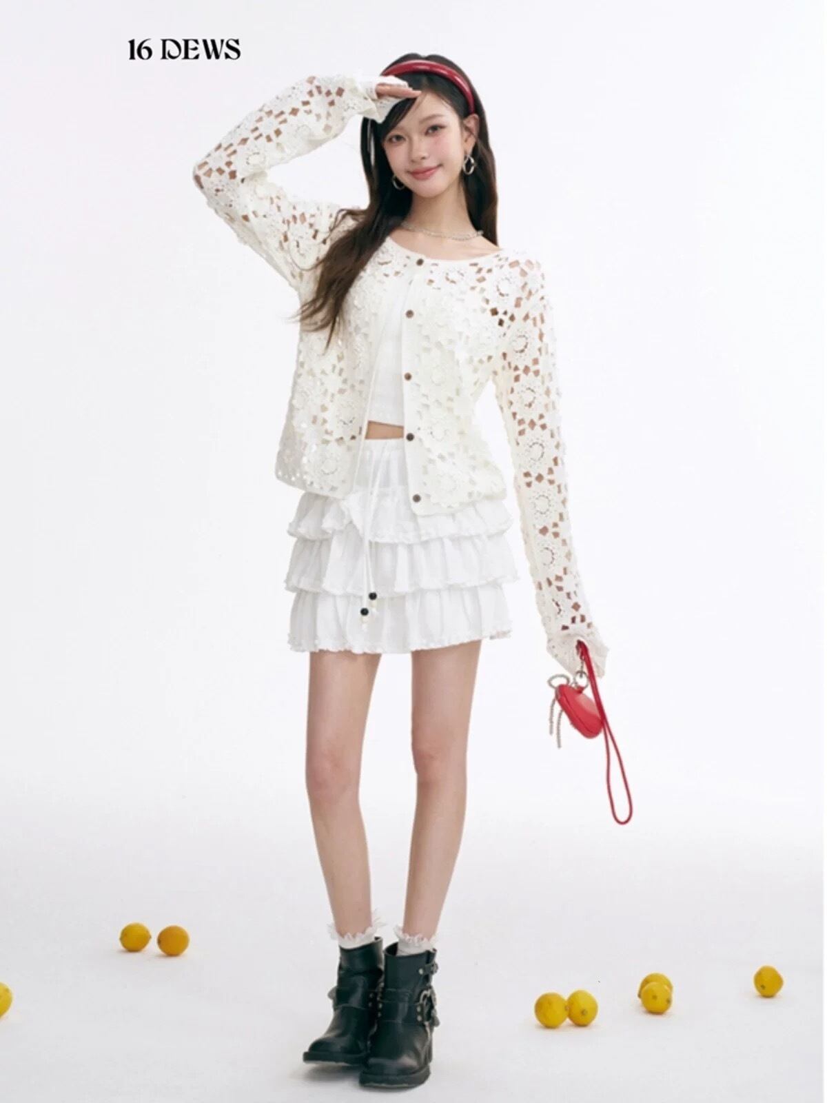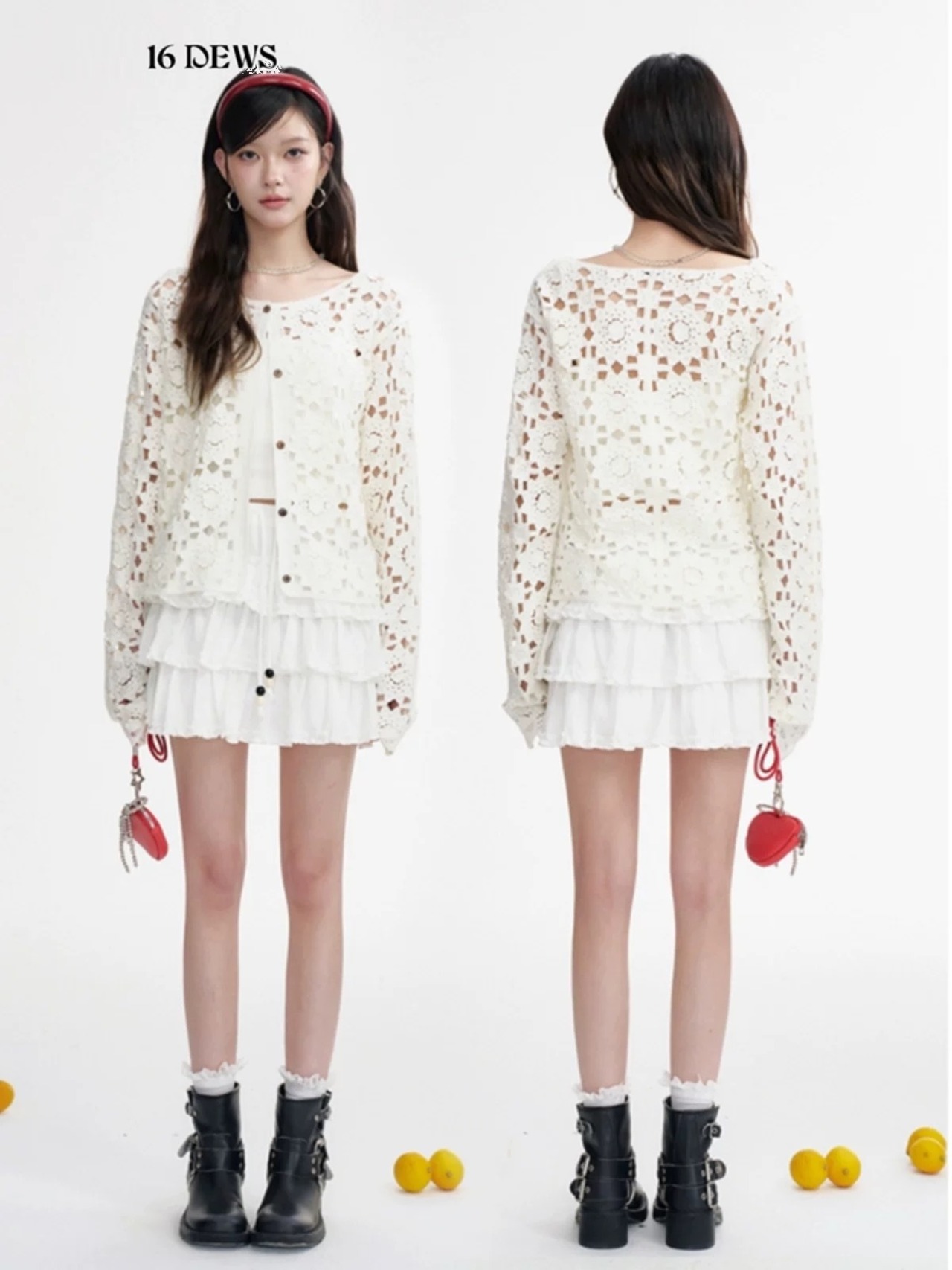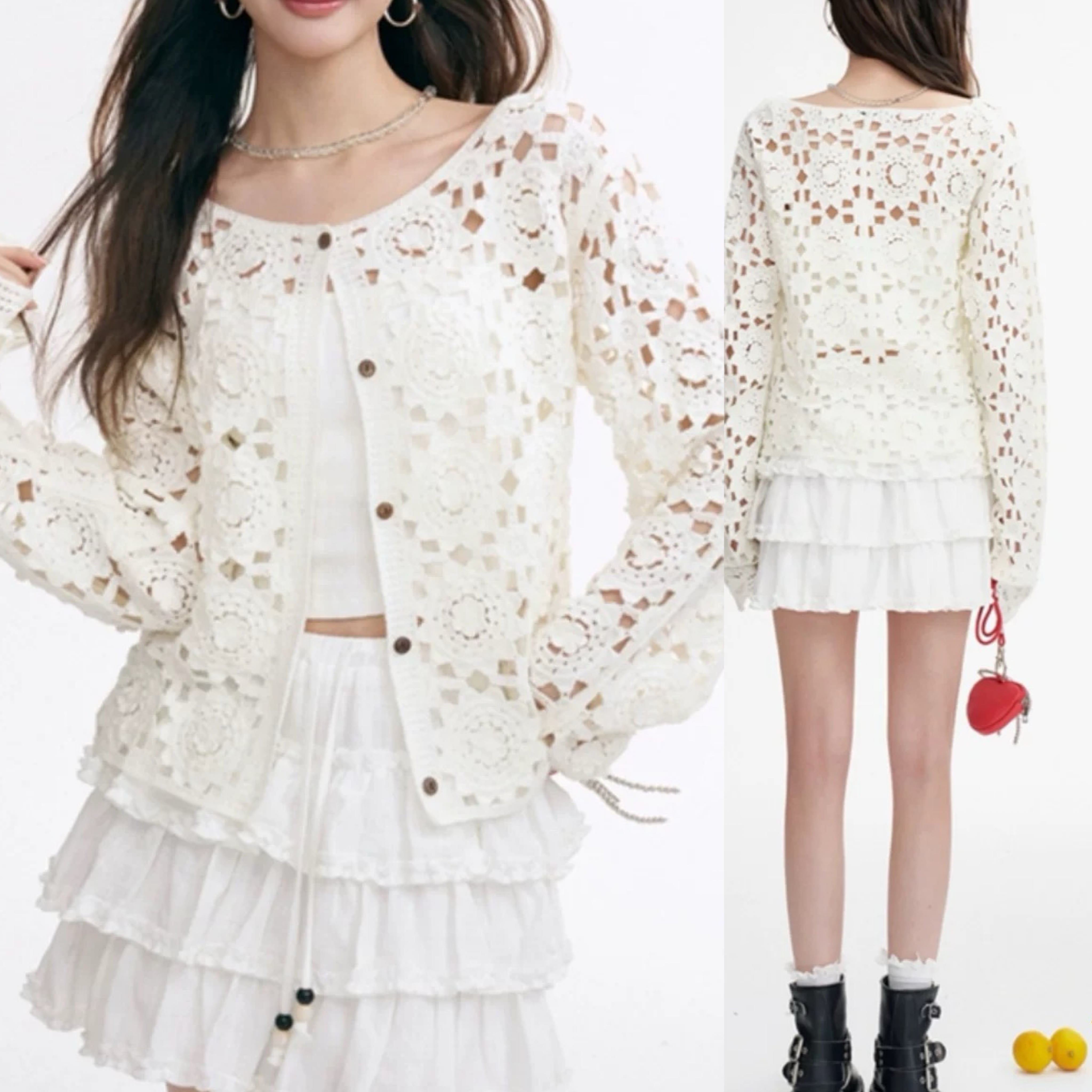 花柄、フラワー 白、ホワイト、カーディガン、特集ジャケット、カーディガン、かわいい華やか、爽やか、エレガント