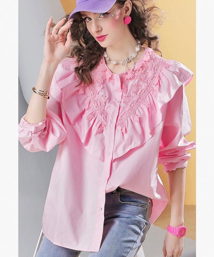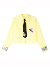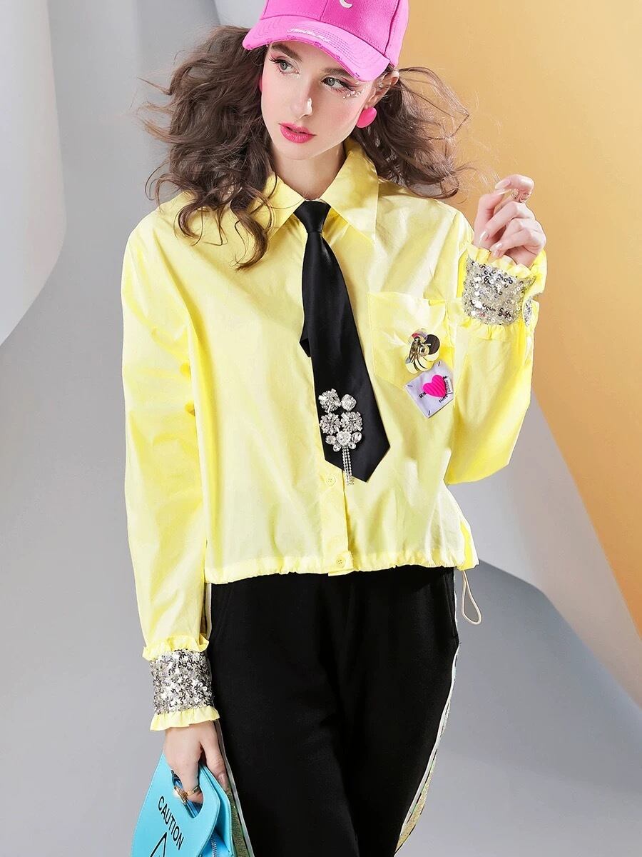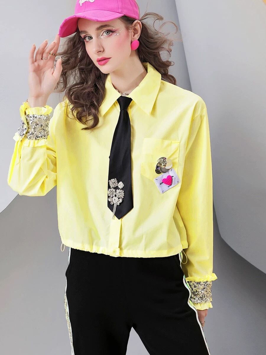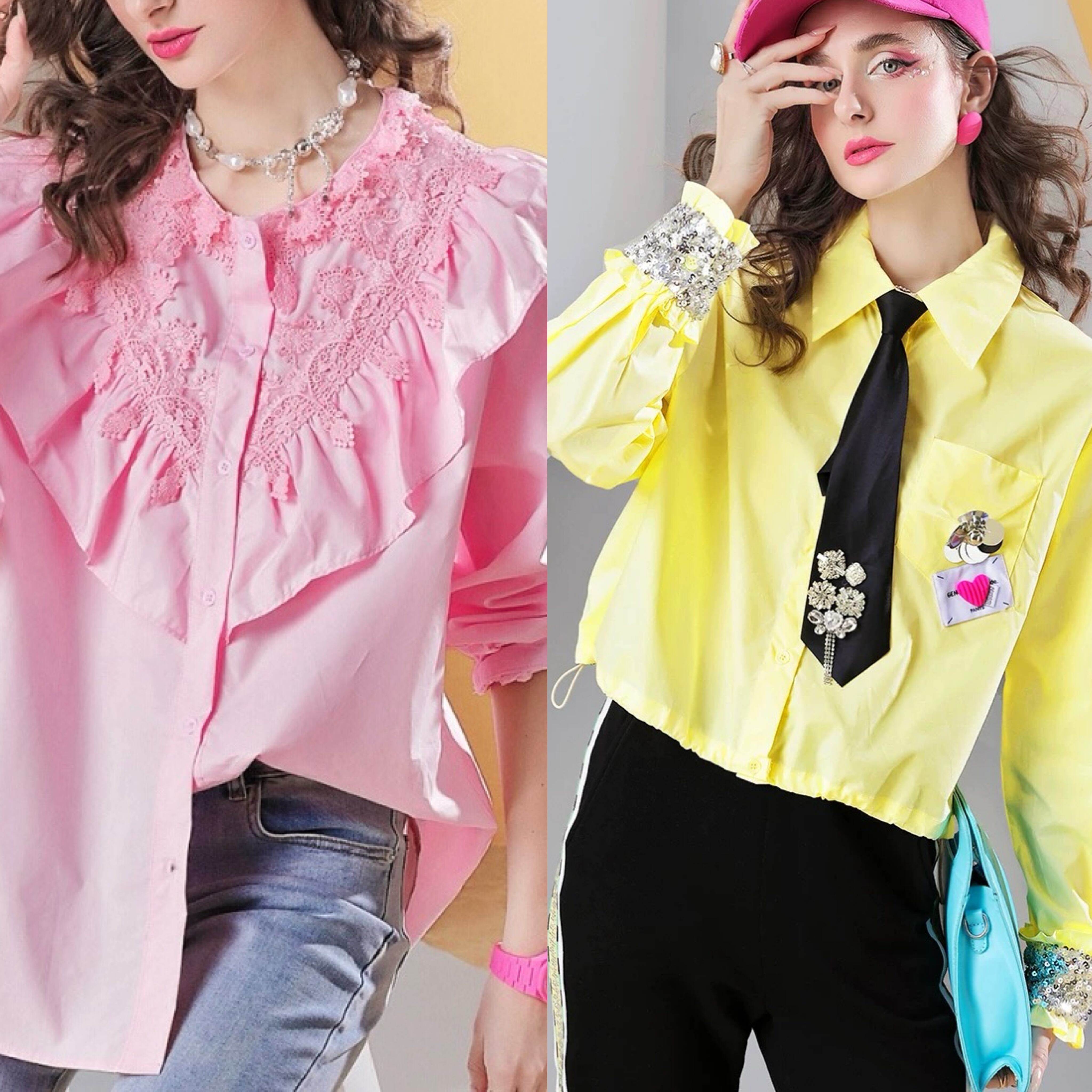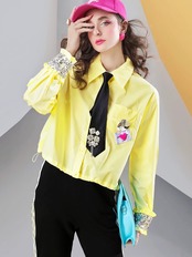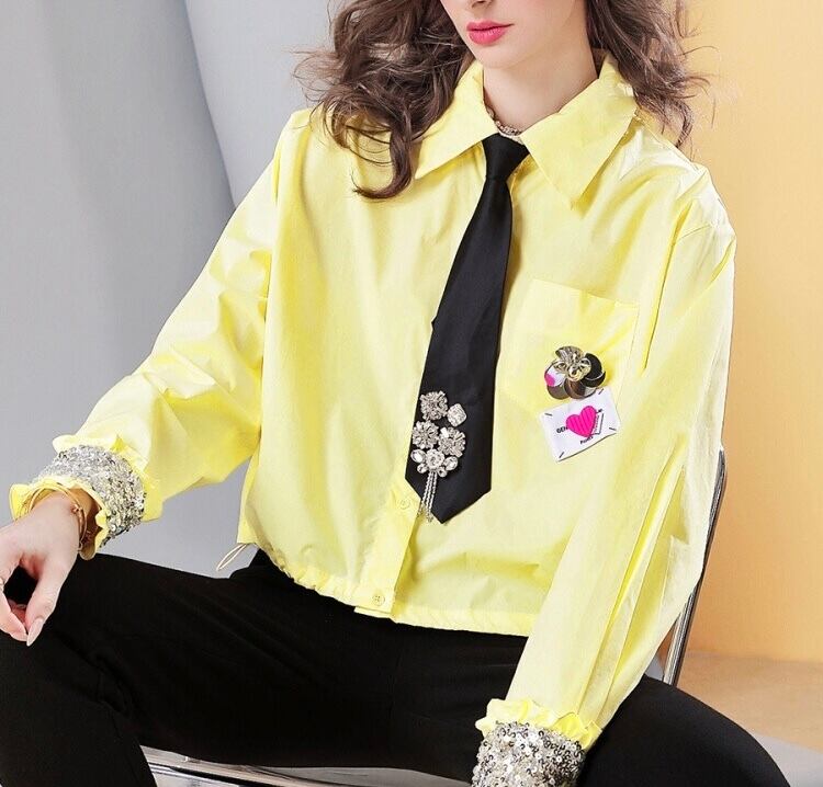 黄色 ピンク トップス シャツ ブラウス、カジュアル ネクタイ、シンプル、かわいい。爽やか、エレガント トップス