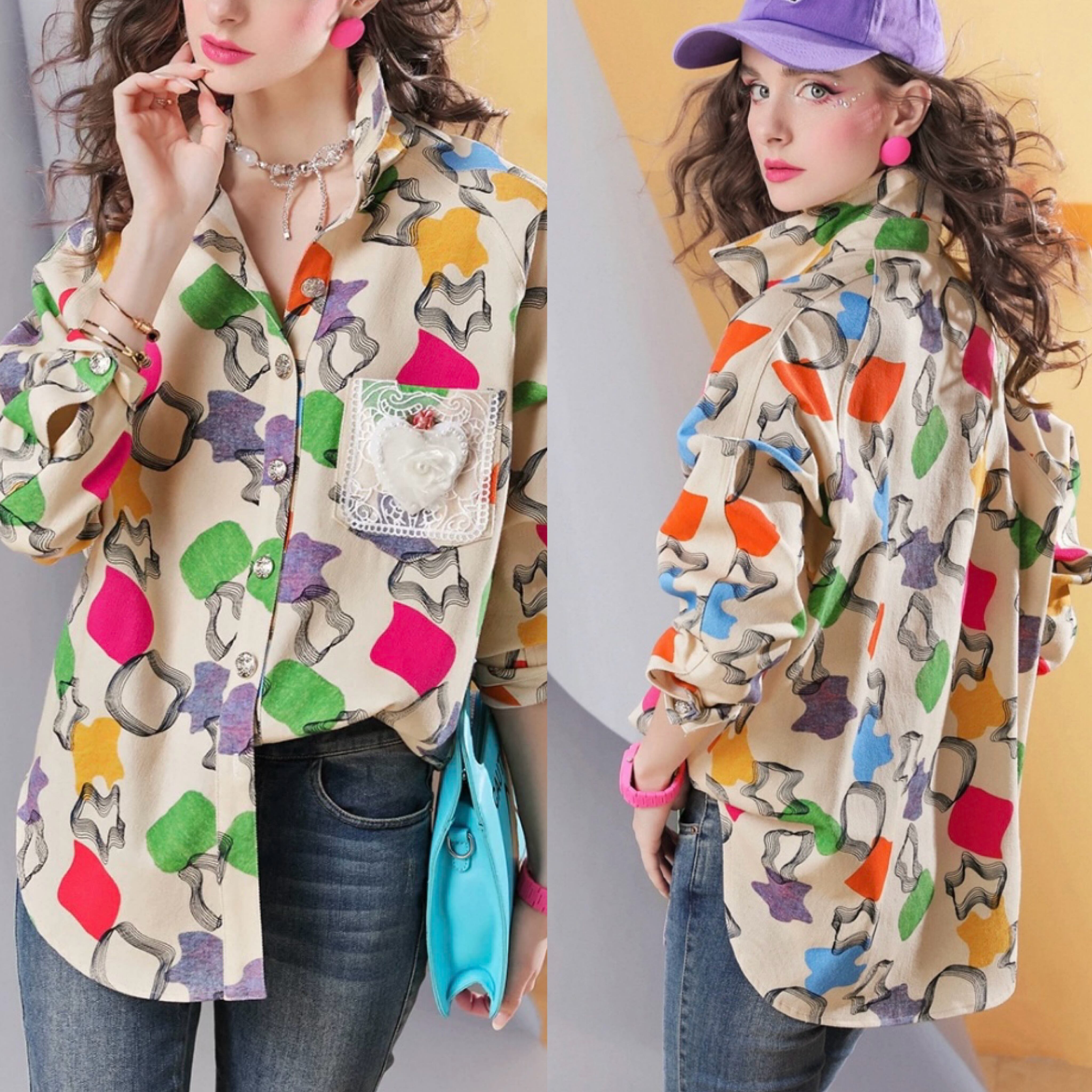 カラフル オレンジ、緑、ベージュ、エレガント、スポーツ ゴルフ、大人、シャツ、ブラウス、トップス