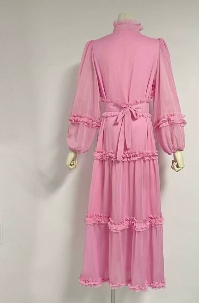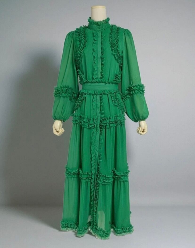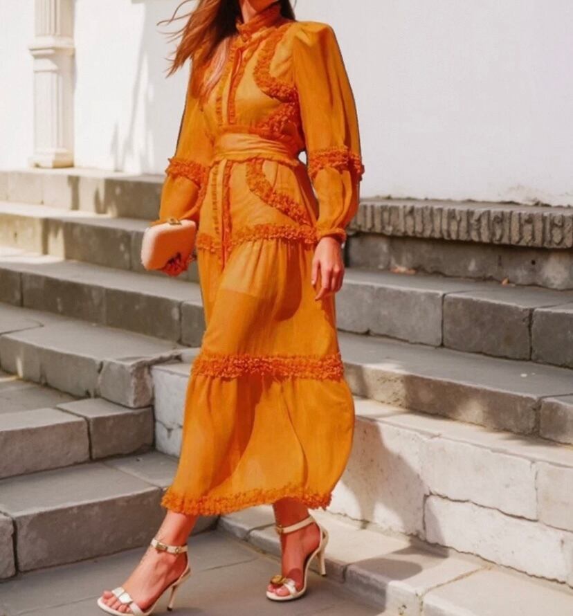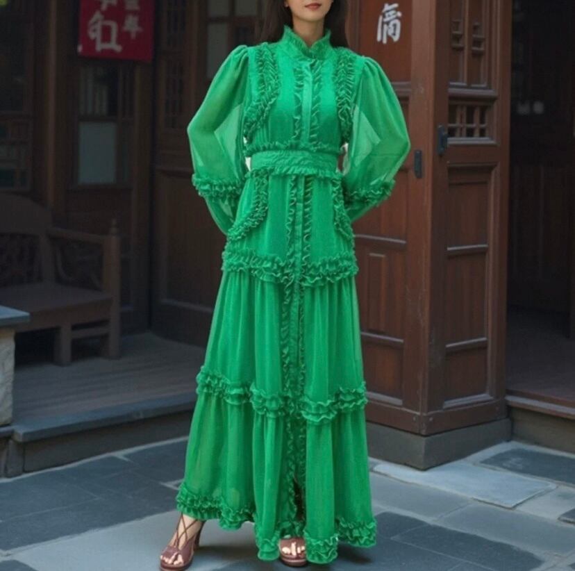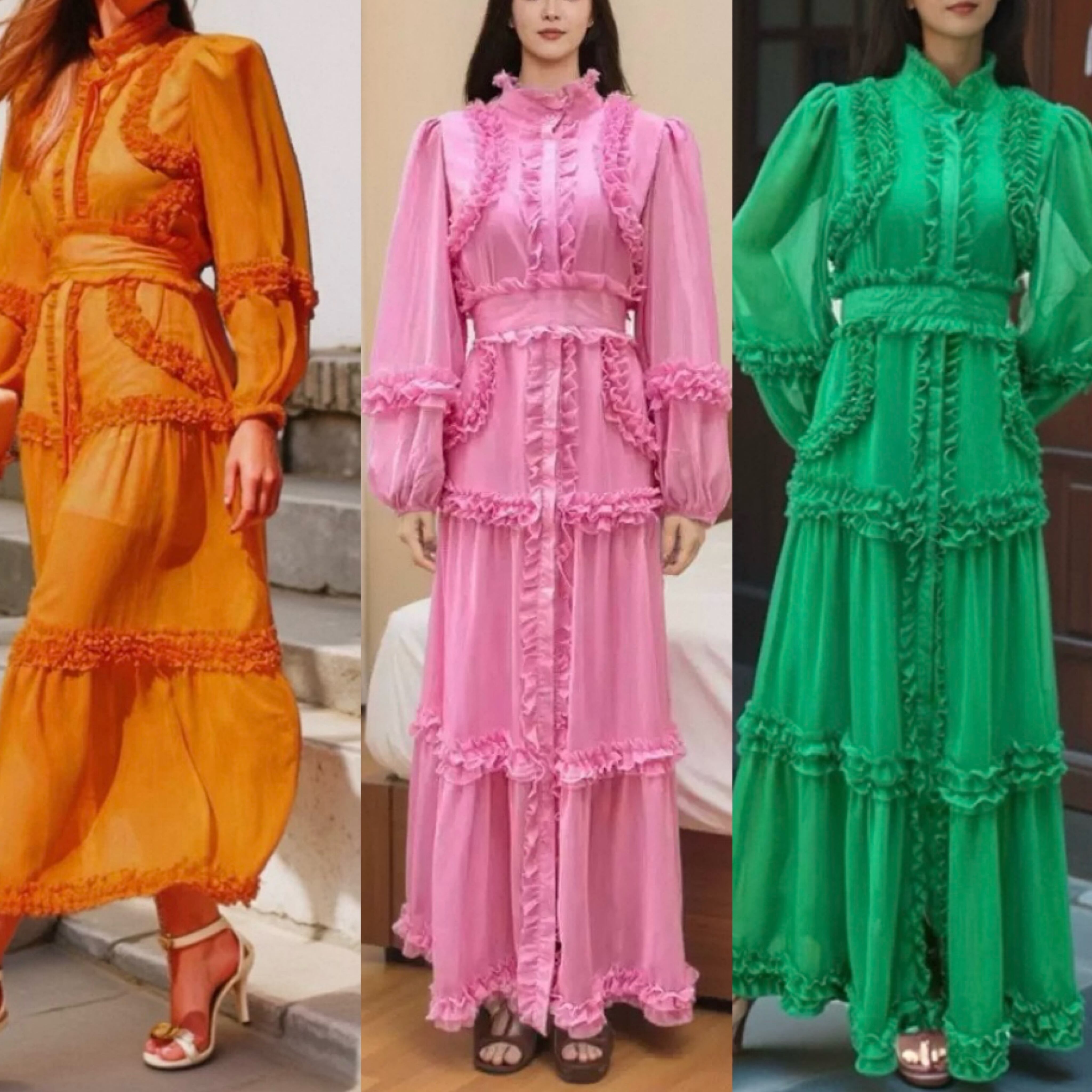 緑、オレンジ、ピンク、エレガント ロング マキシ ワンピース ブラウス