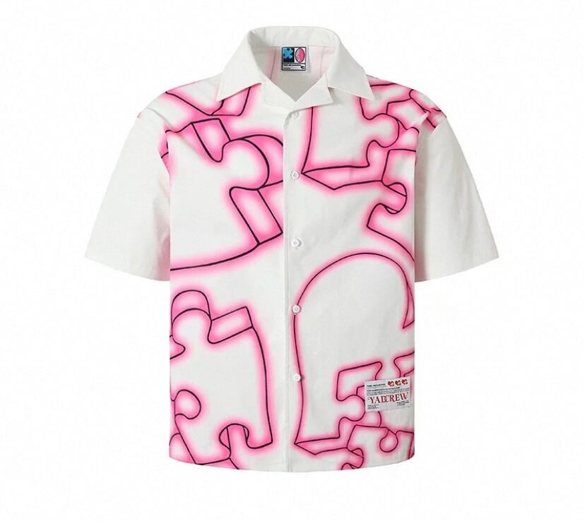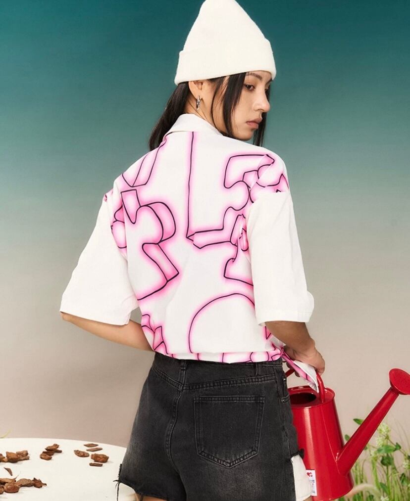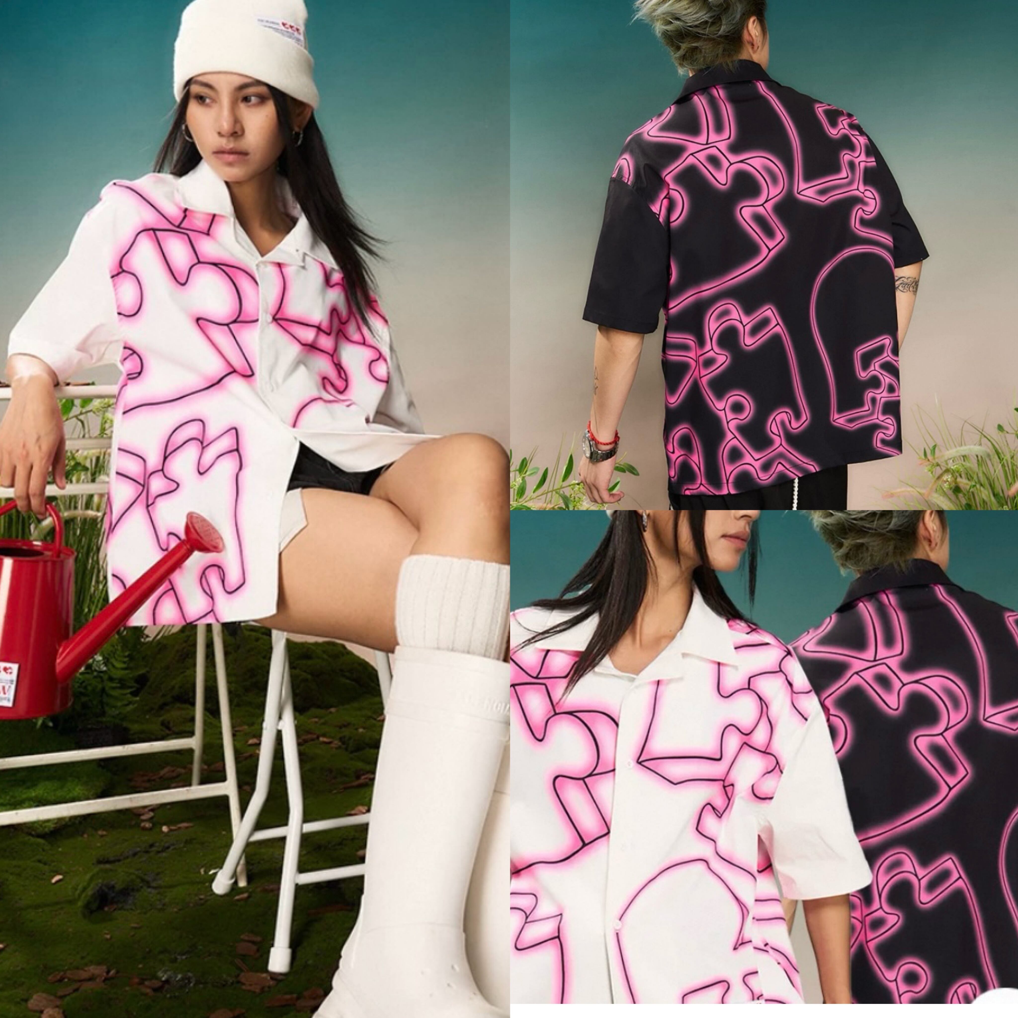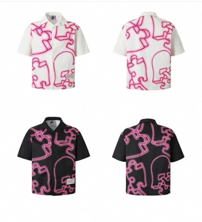 ストリート ユニセックス、メンズライク XL 、オーバーサイズ シャツ、ピンク、白 黒 ストリート