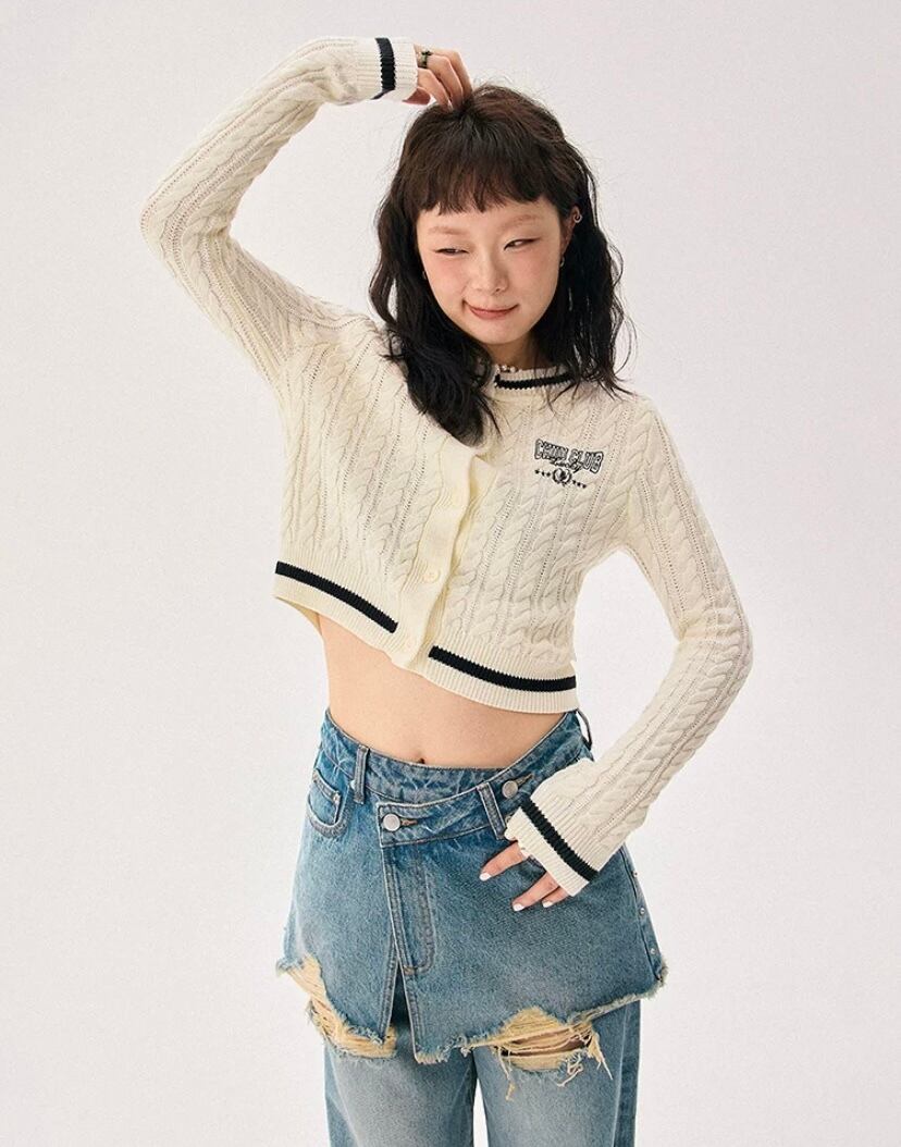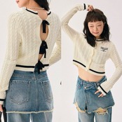 白 ニット、カーディガン、セーター ネイビー スクール 制服 白 アイボリー、背中リボン