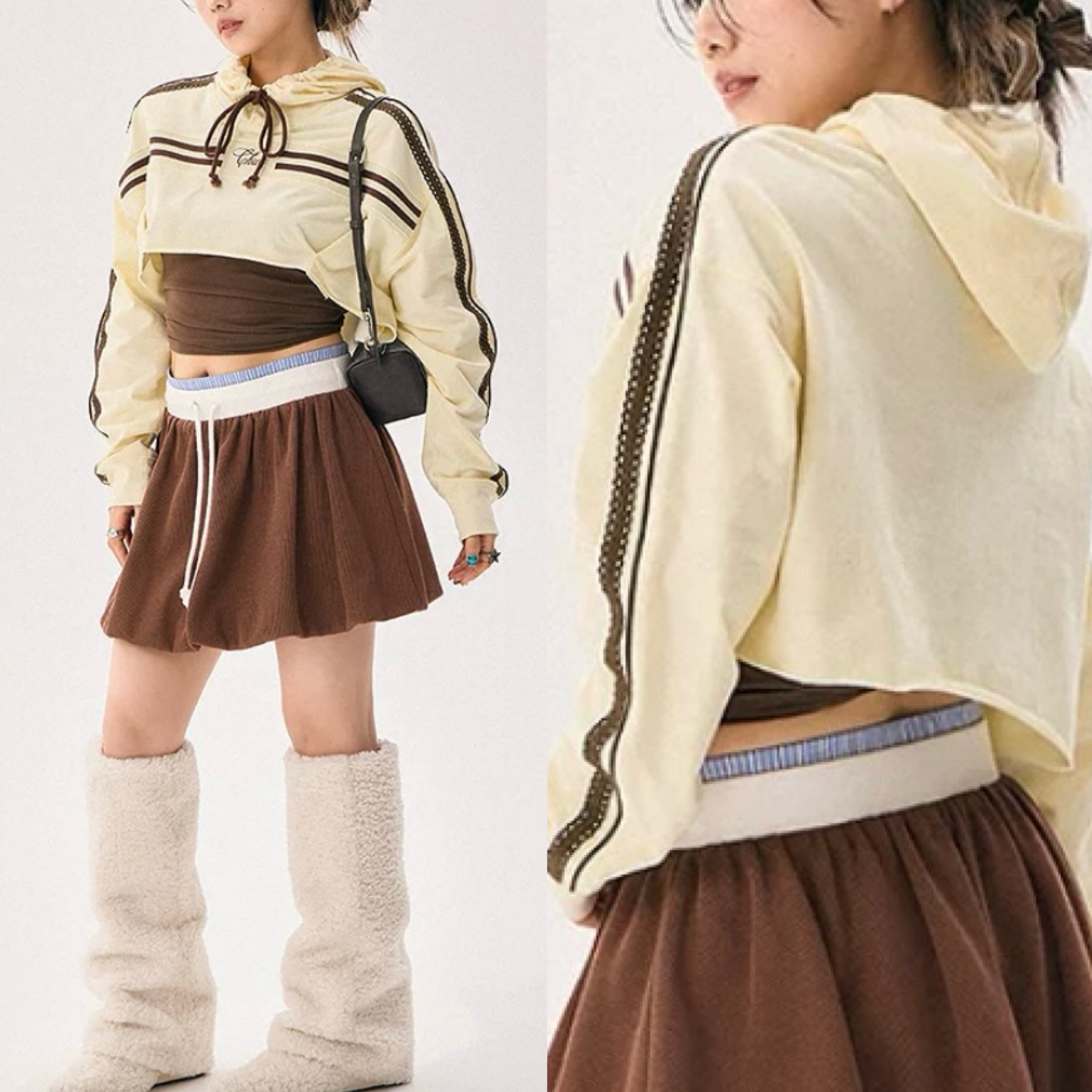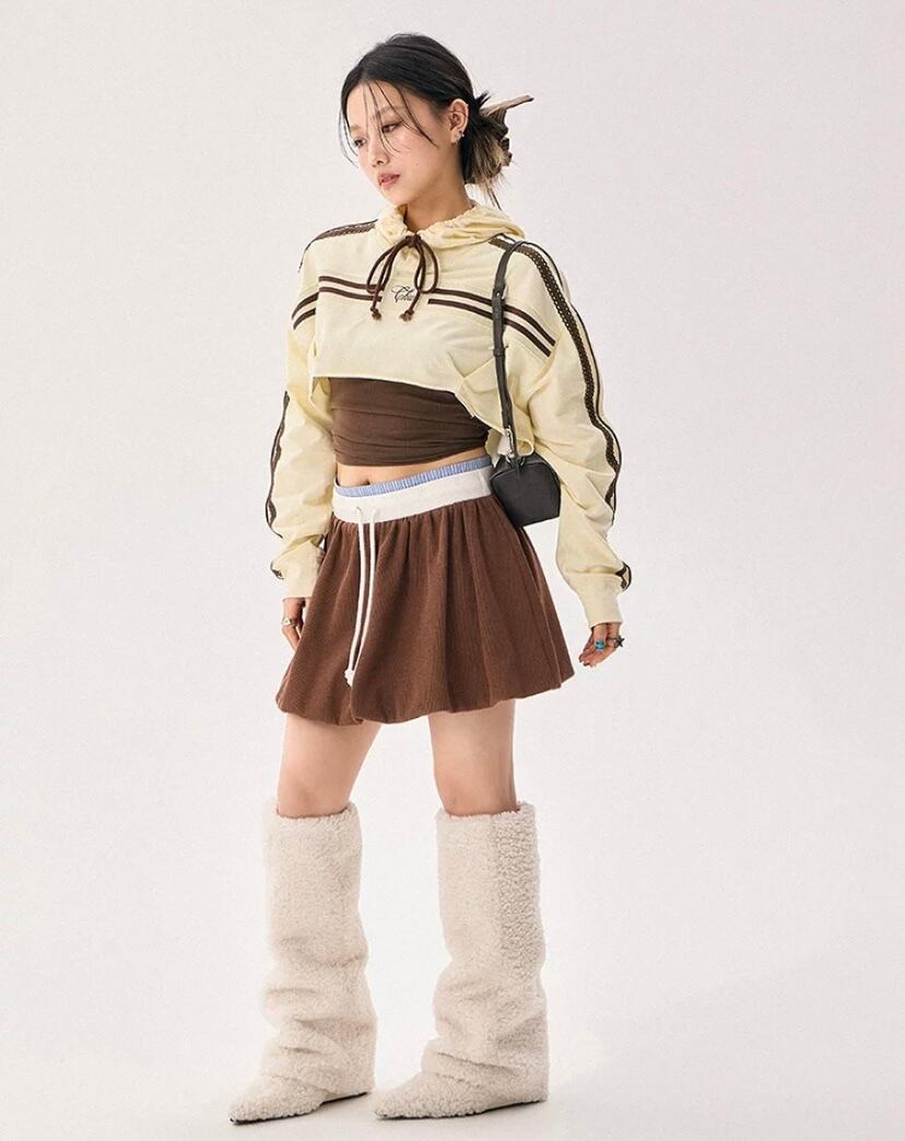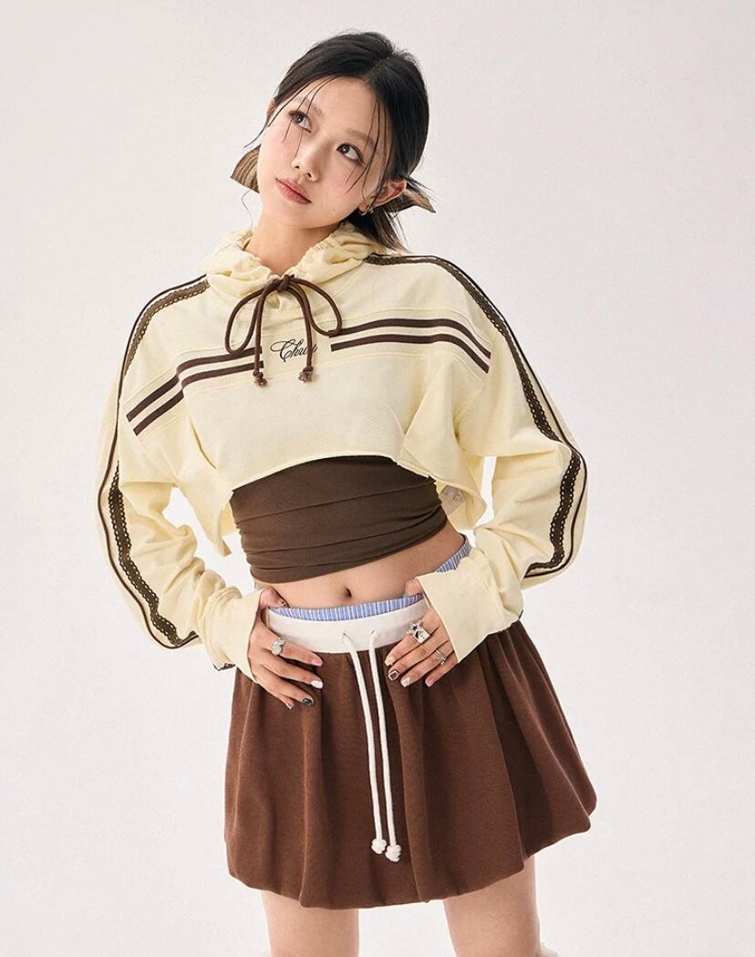 パーカー トレーナー、白 アイボリー 黄色 ベージュ、ショート Y2K ダンス 渋谷 原宿