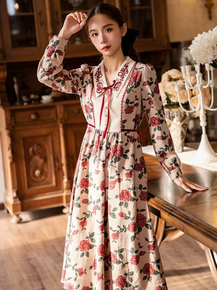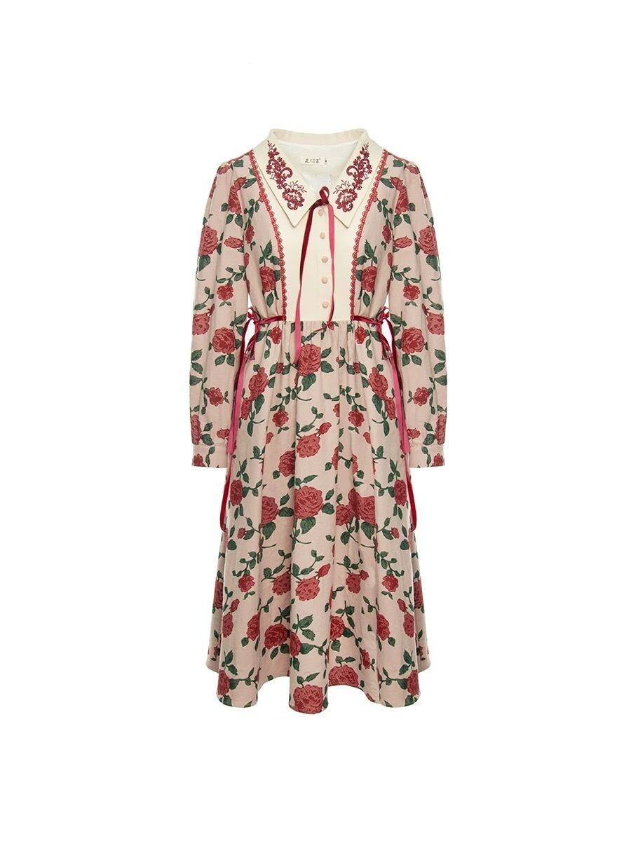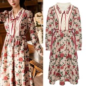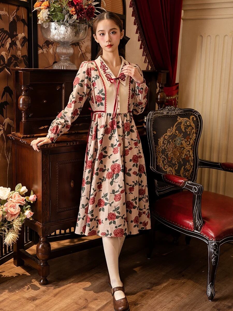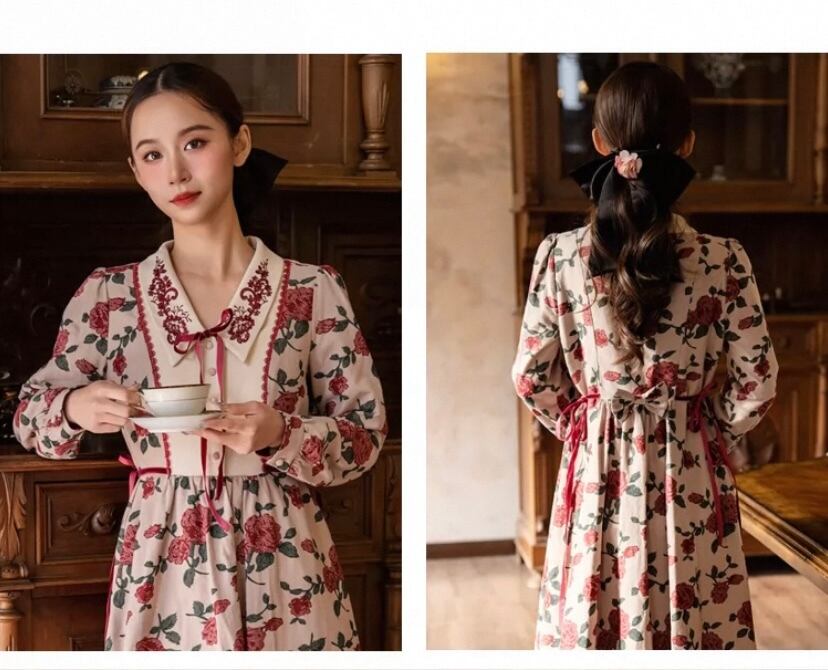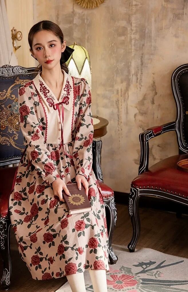 薔薇 花柄、フラワー リボン ガーリー 、ブラウス ワンピース