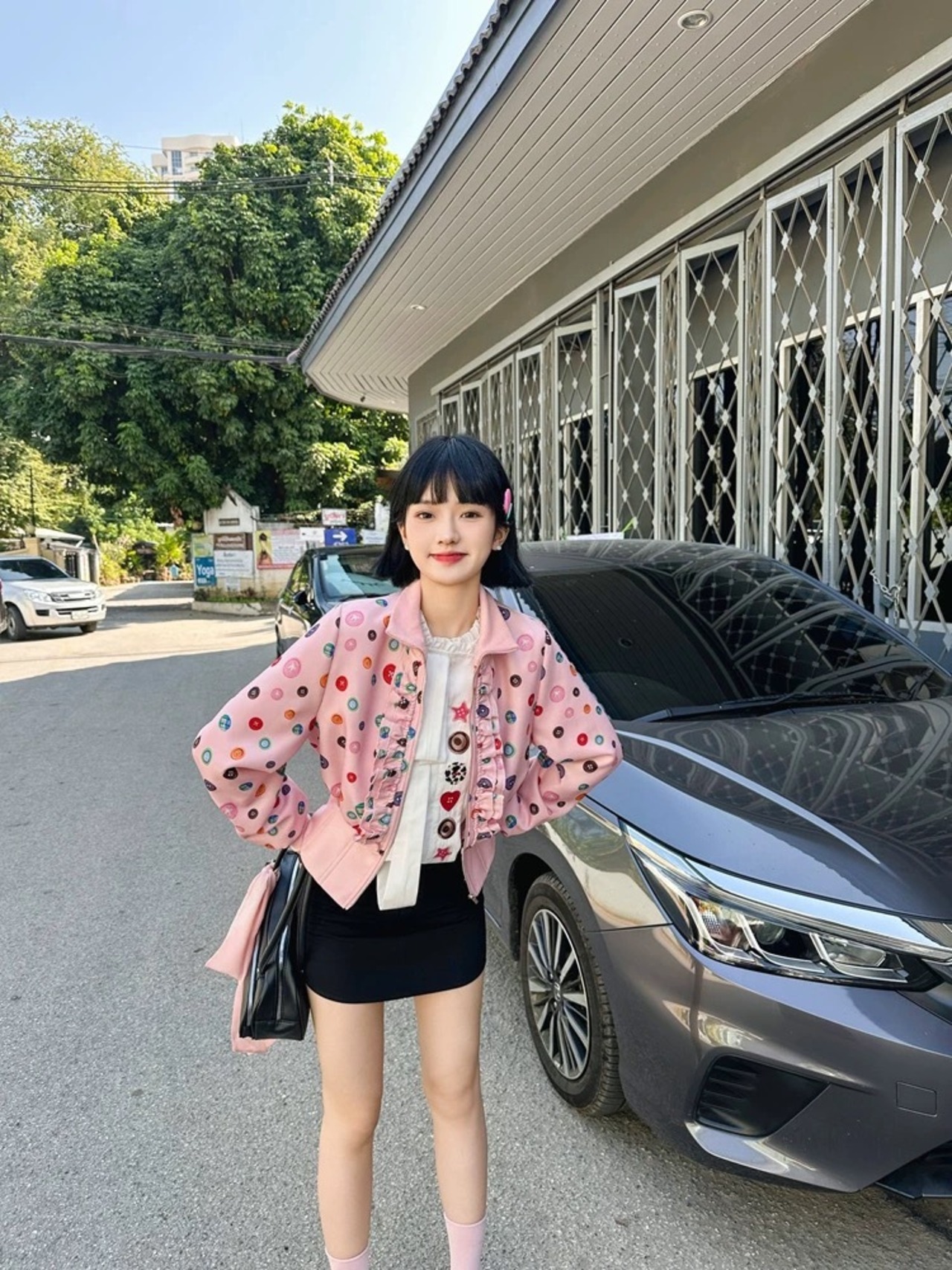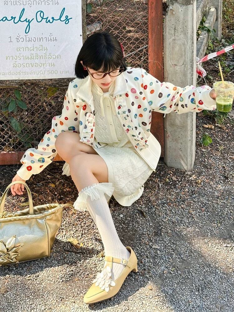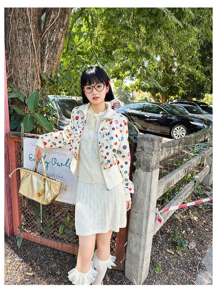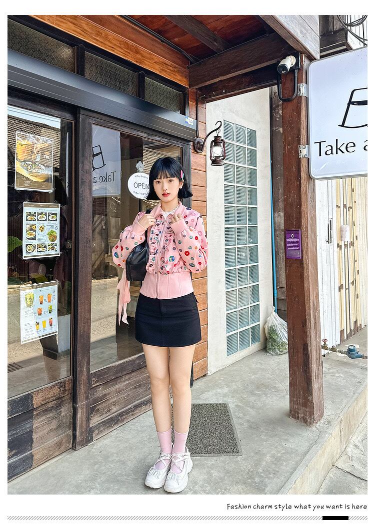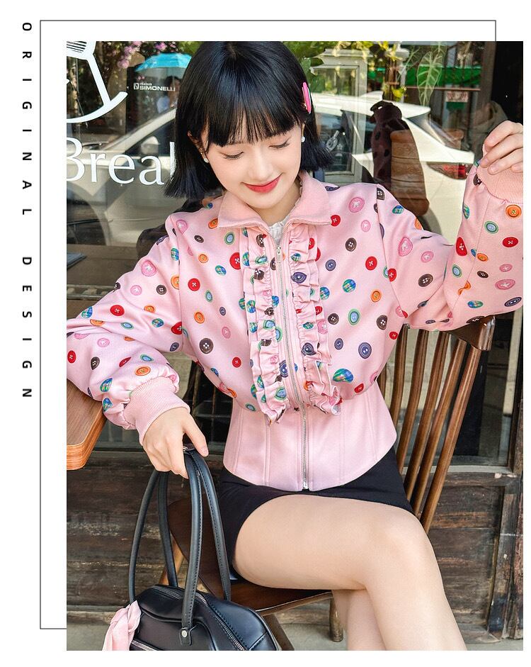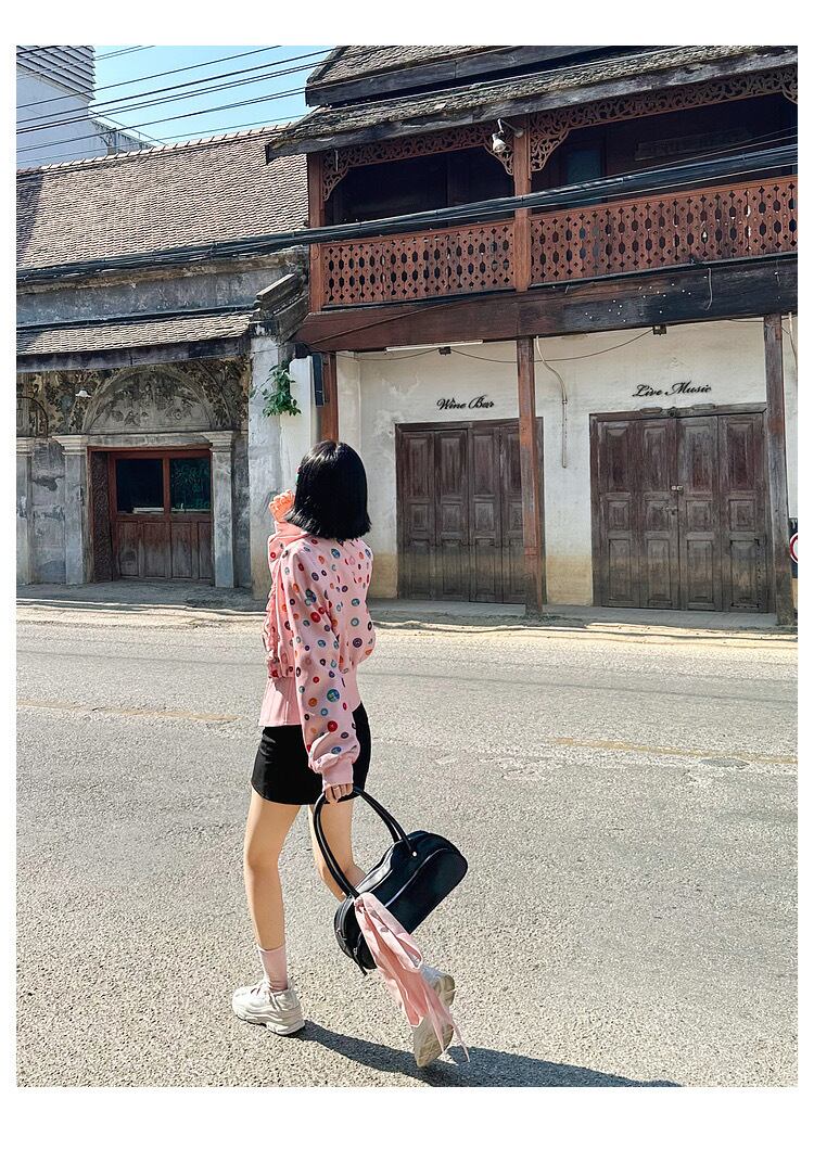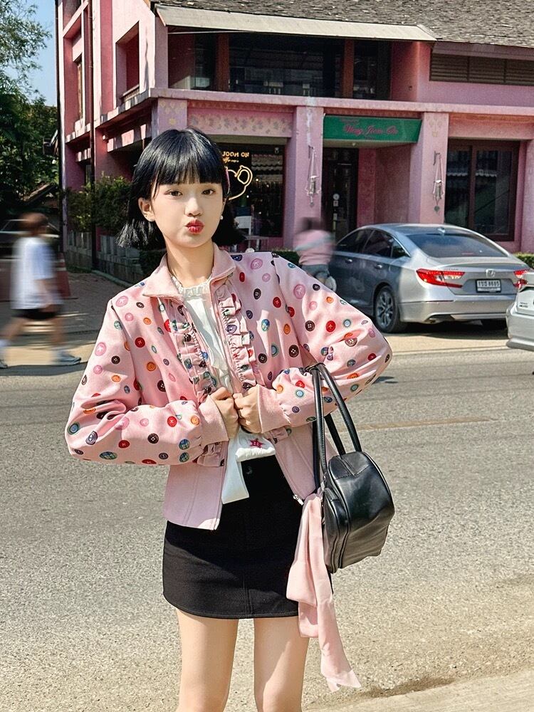 水玉、白、ピンク、花柄、カラフル かわいい ジャケット、ブルゾン、カーディガン