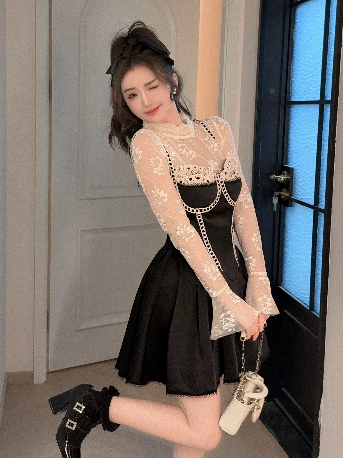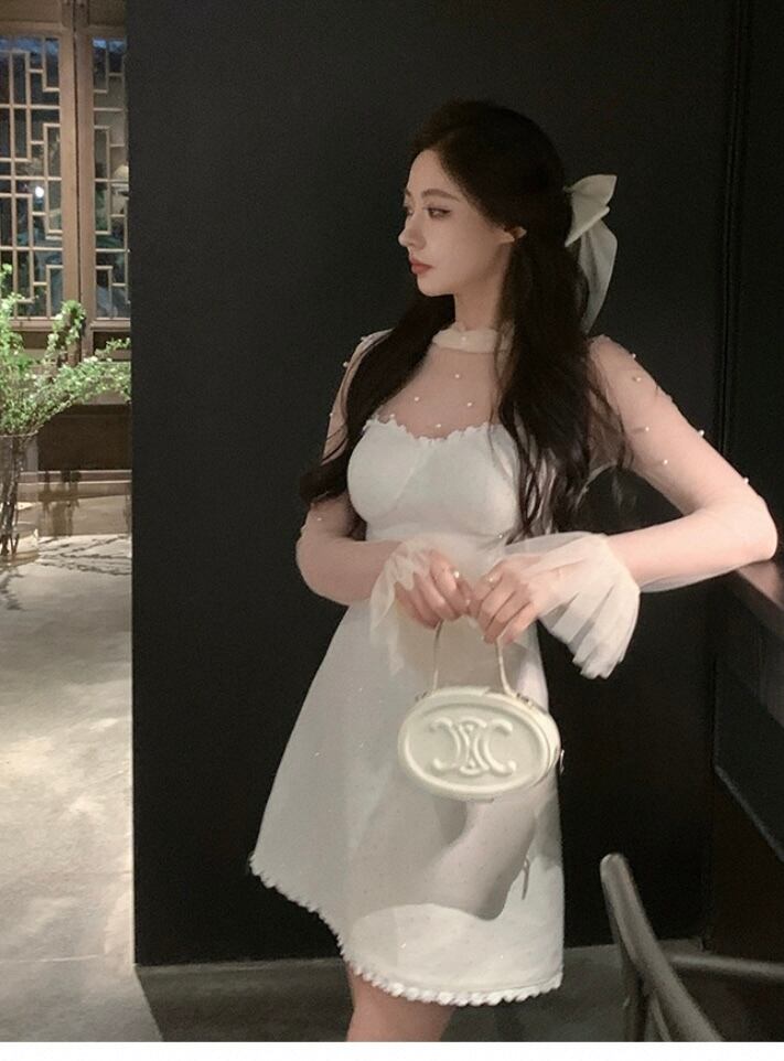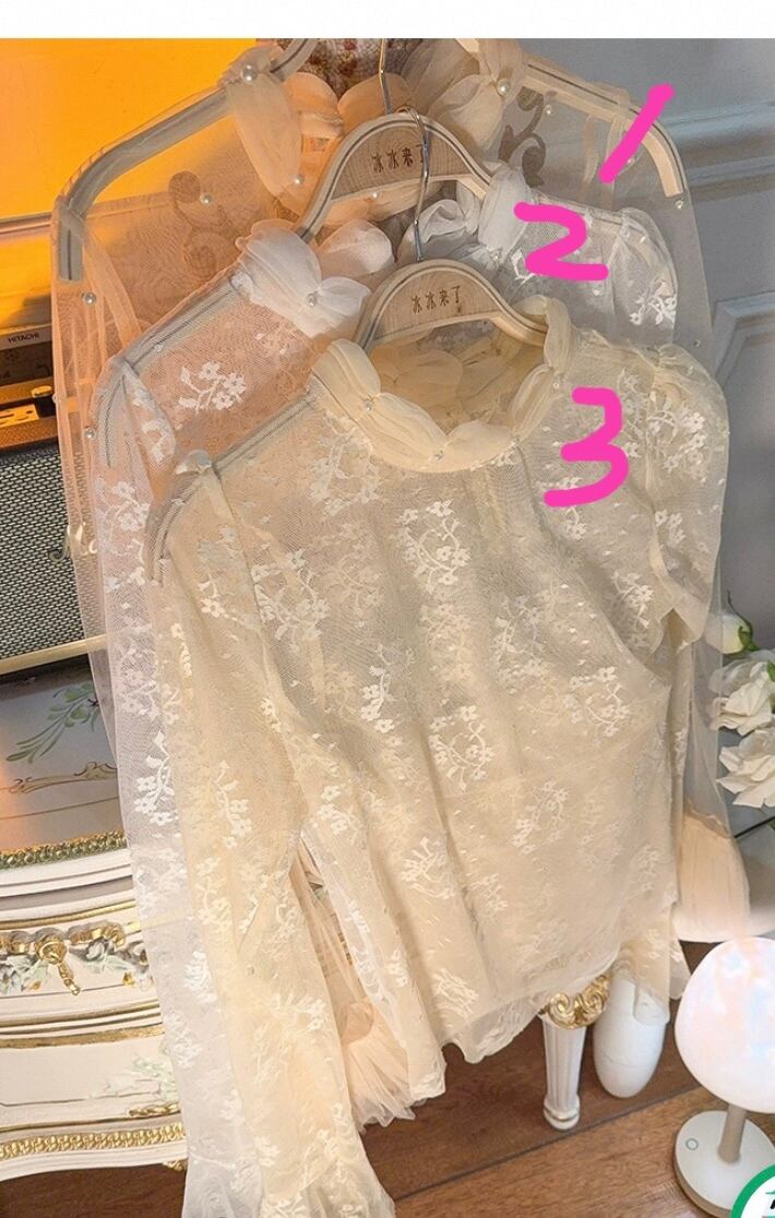 シースルー ブラウス、トップス、白 パール 花柄、フラワー 重ね着 ブラウス エレガント かわいい お嬢様