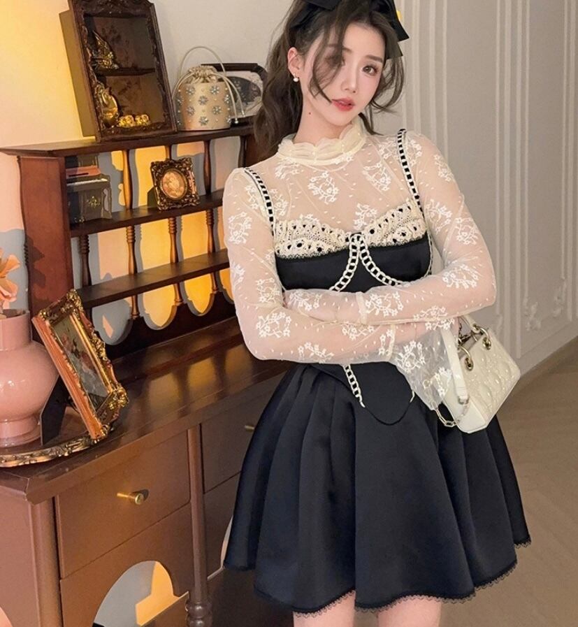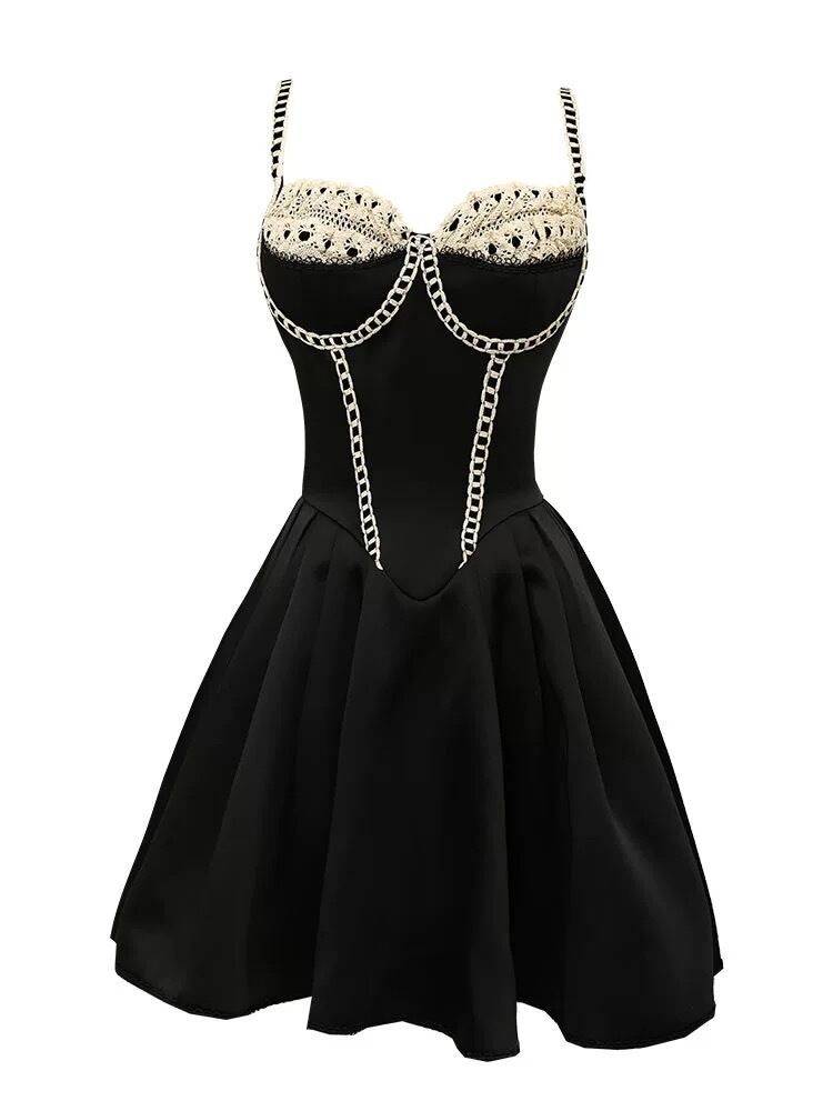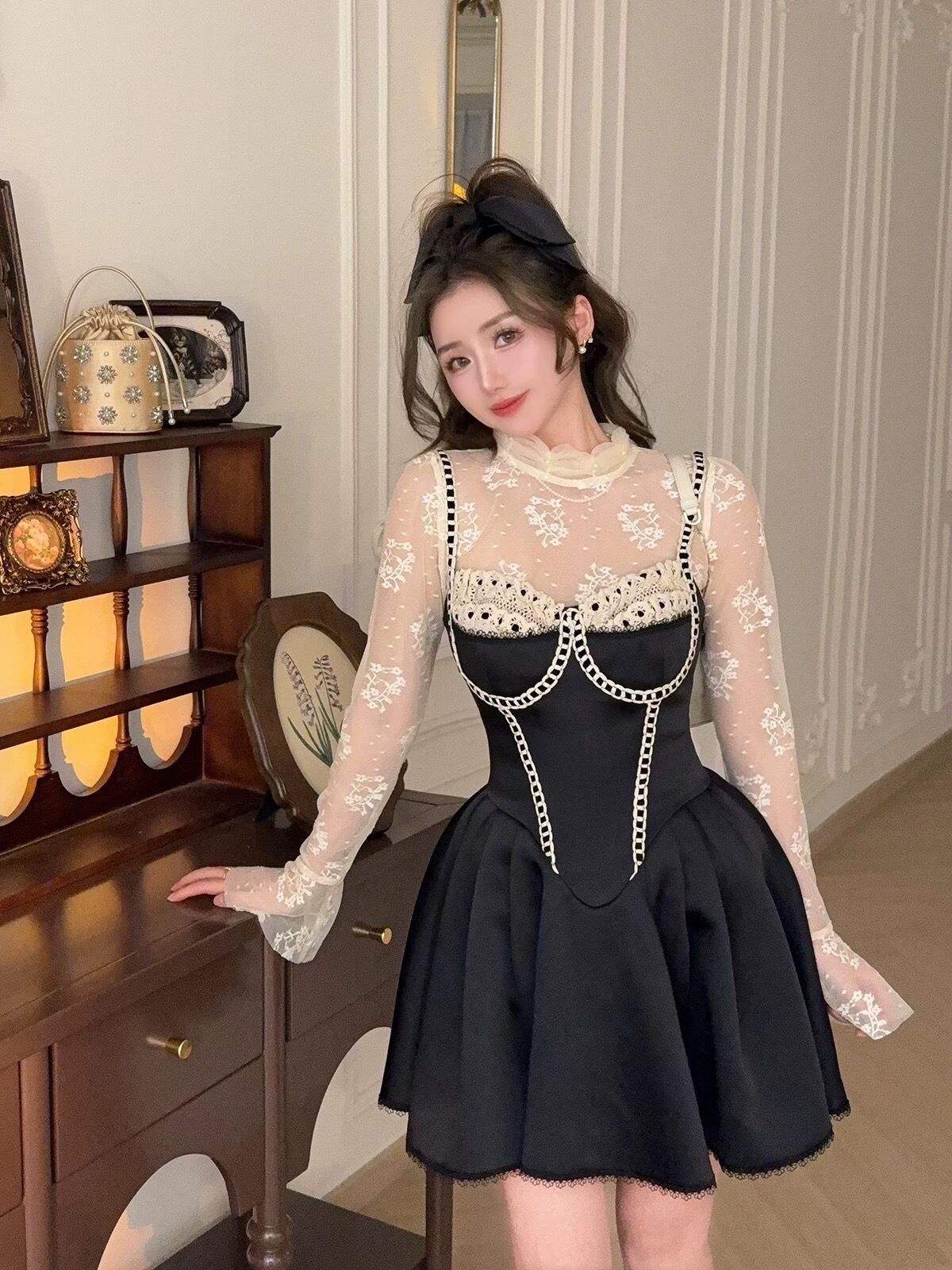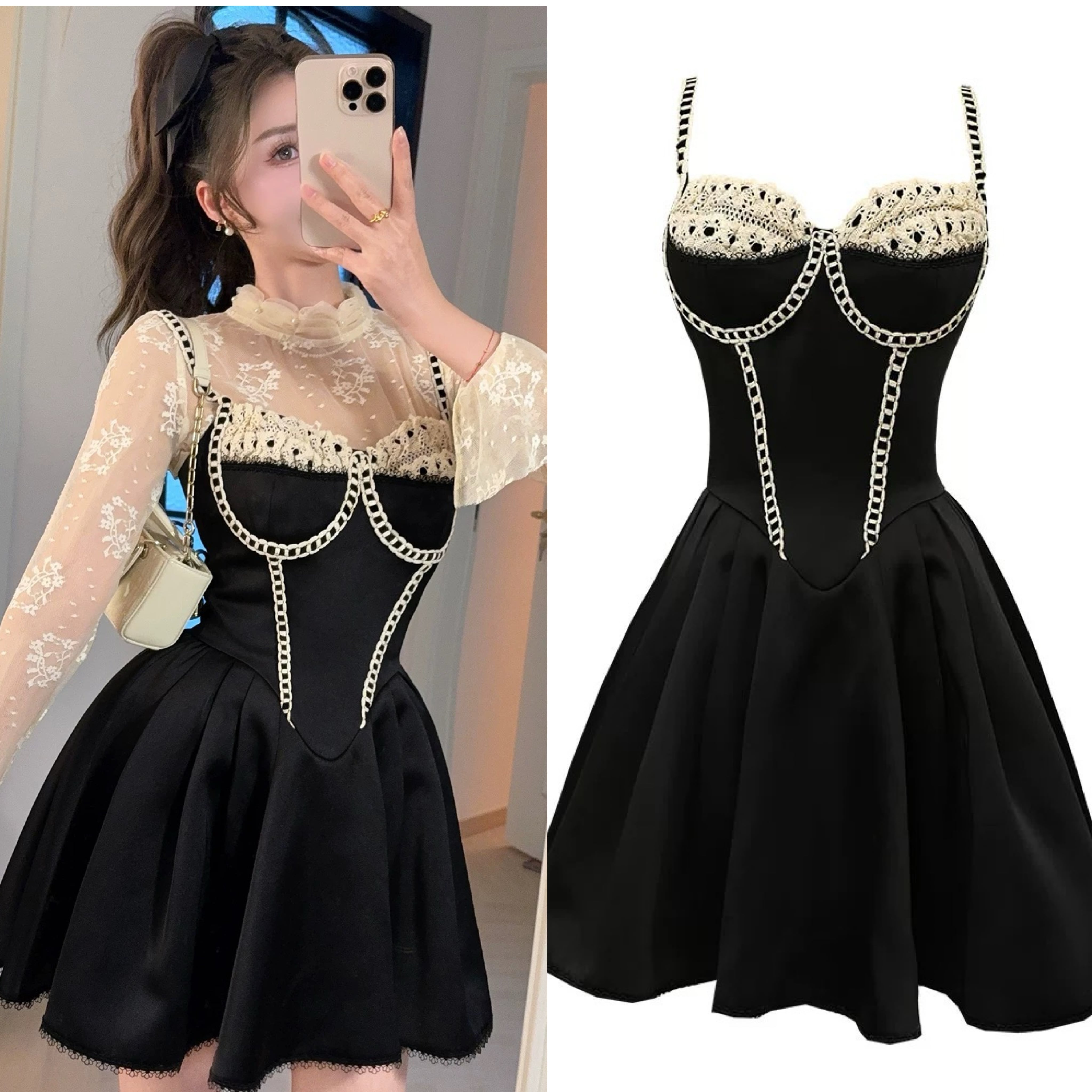 黒 キャミソール ワンピース、エレガント、かわいい お嬢様、トップス スカート フレアスカート ガーリー