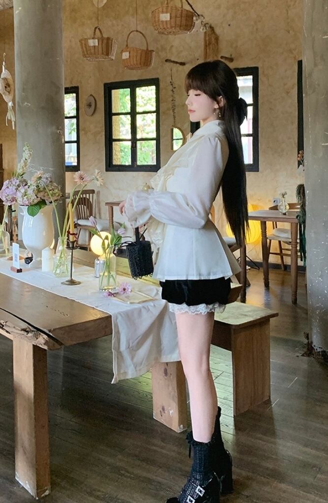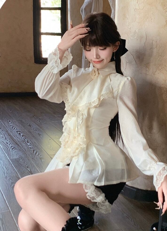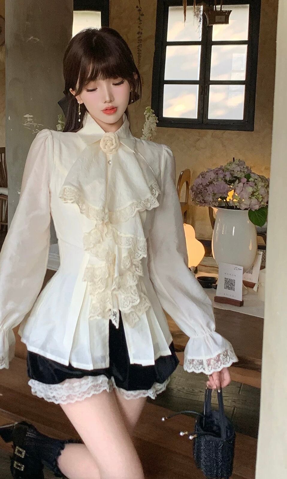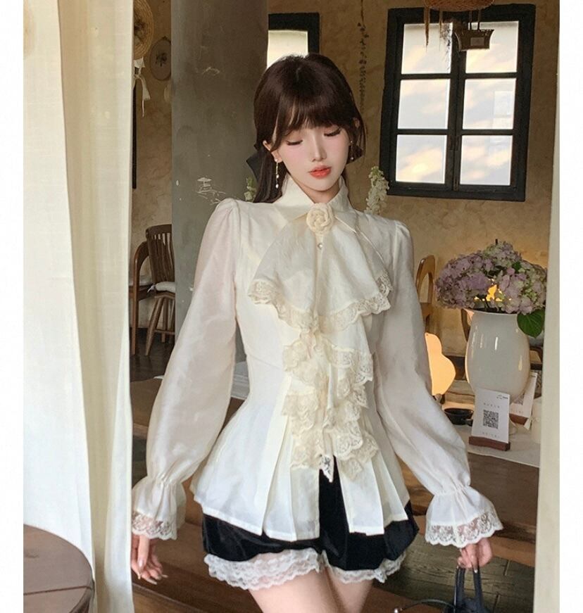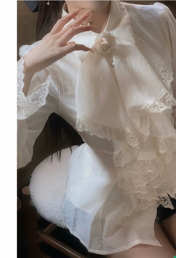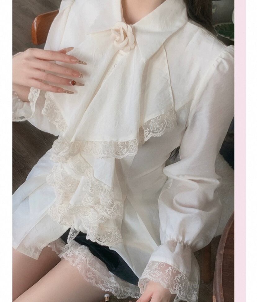 白 ブラウス、トップス ブラウス、ハイネック、カメリア姫、王様、プリンセス ガーリー、お嬢様、ロリータ