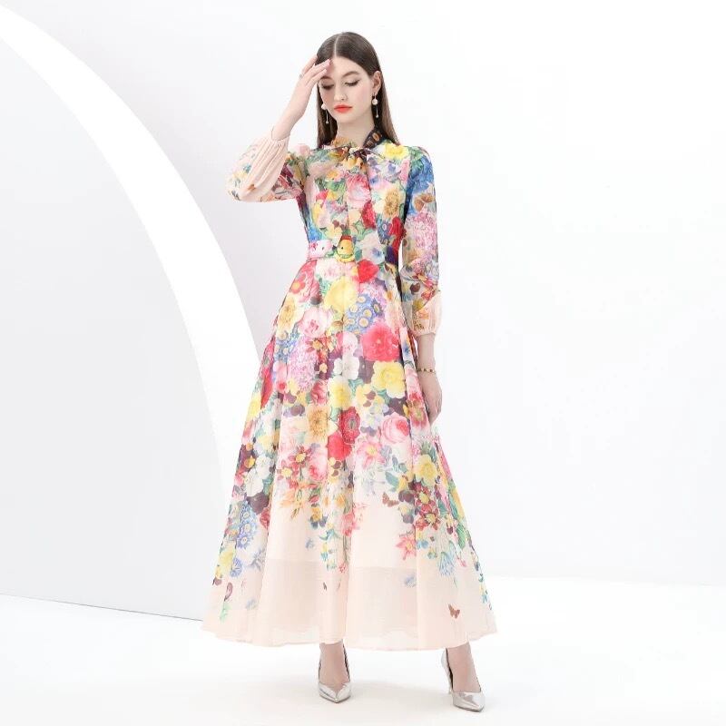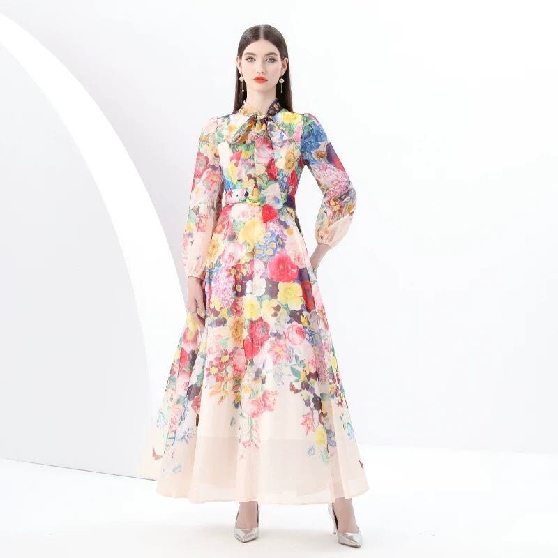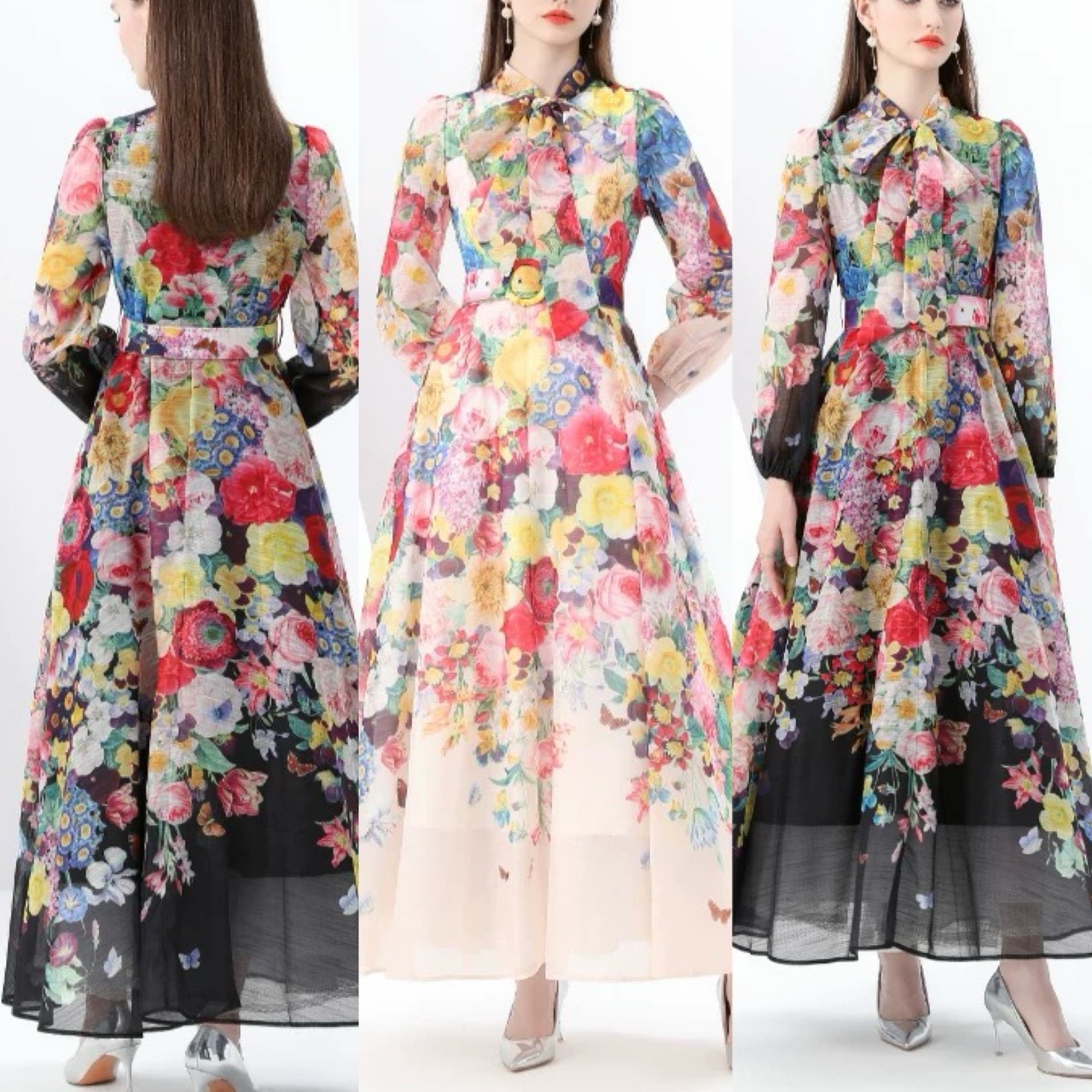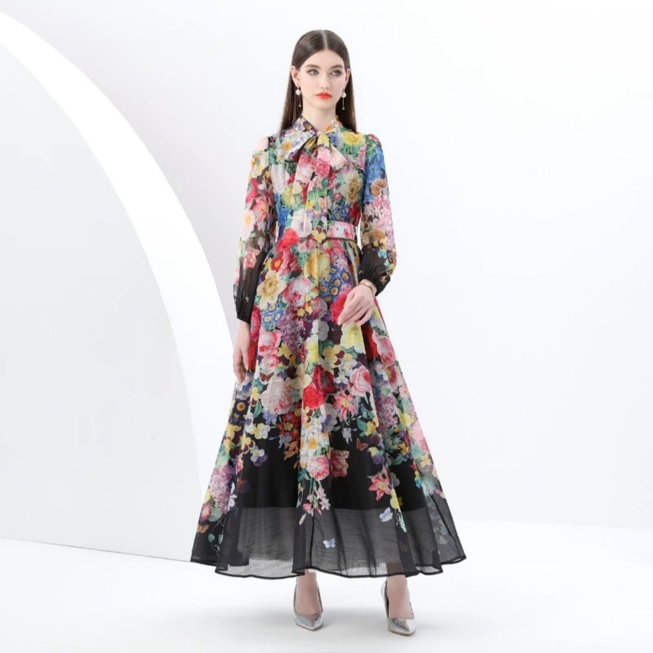 黒、白 花柄、リボン ブラウス、スカート ワンピース トップ