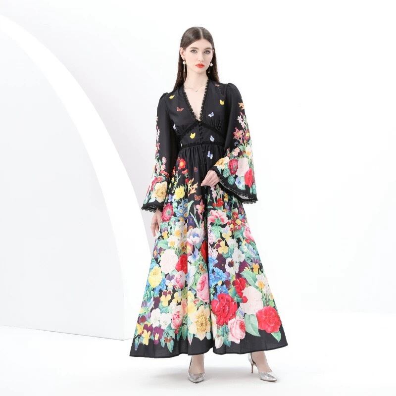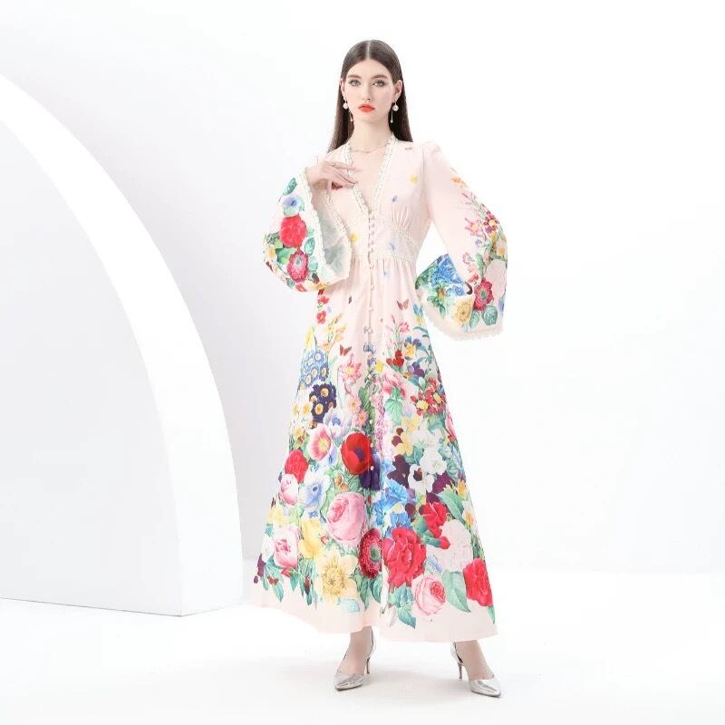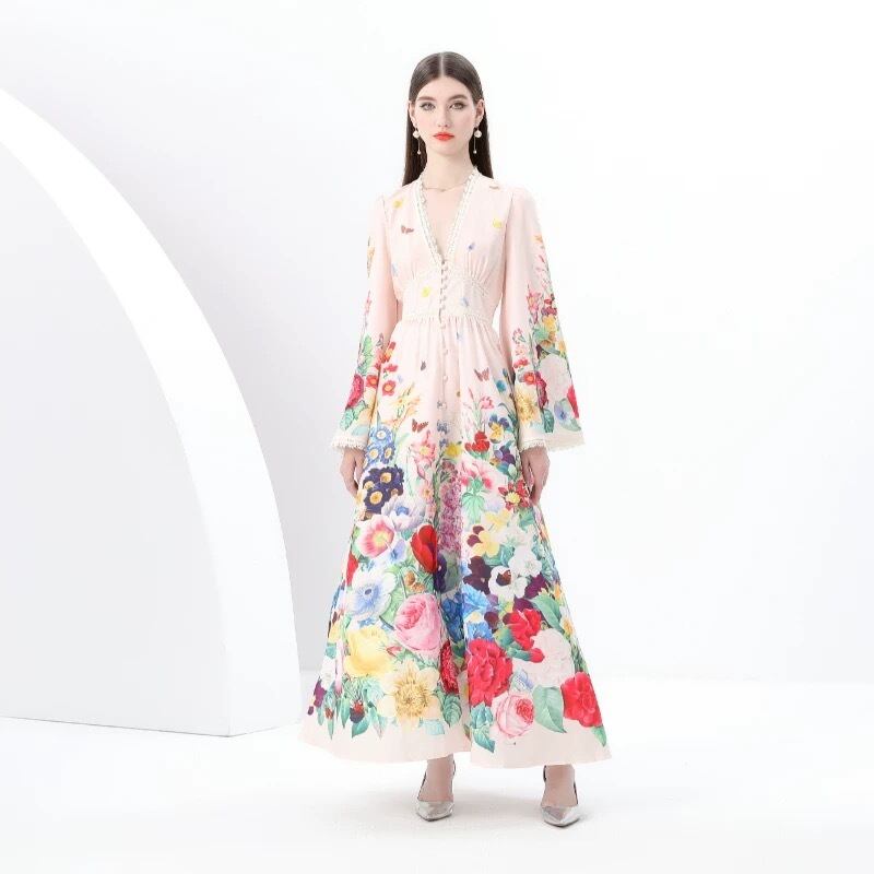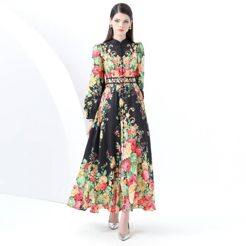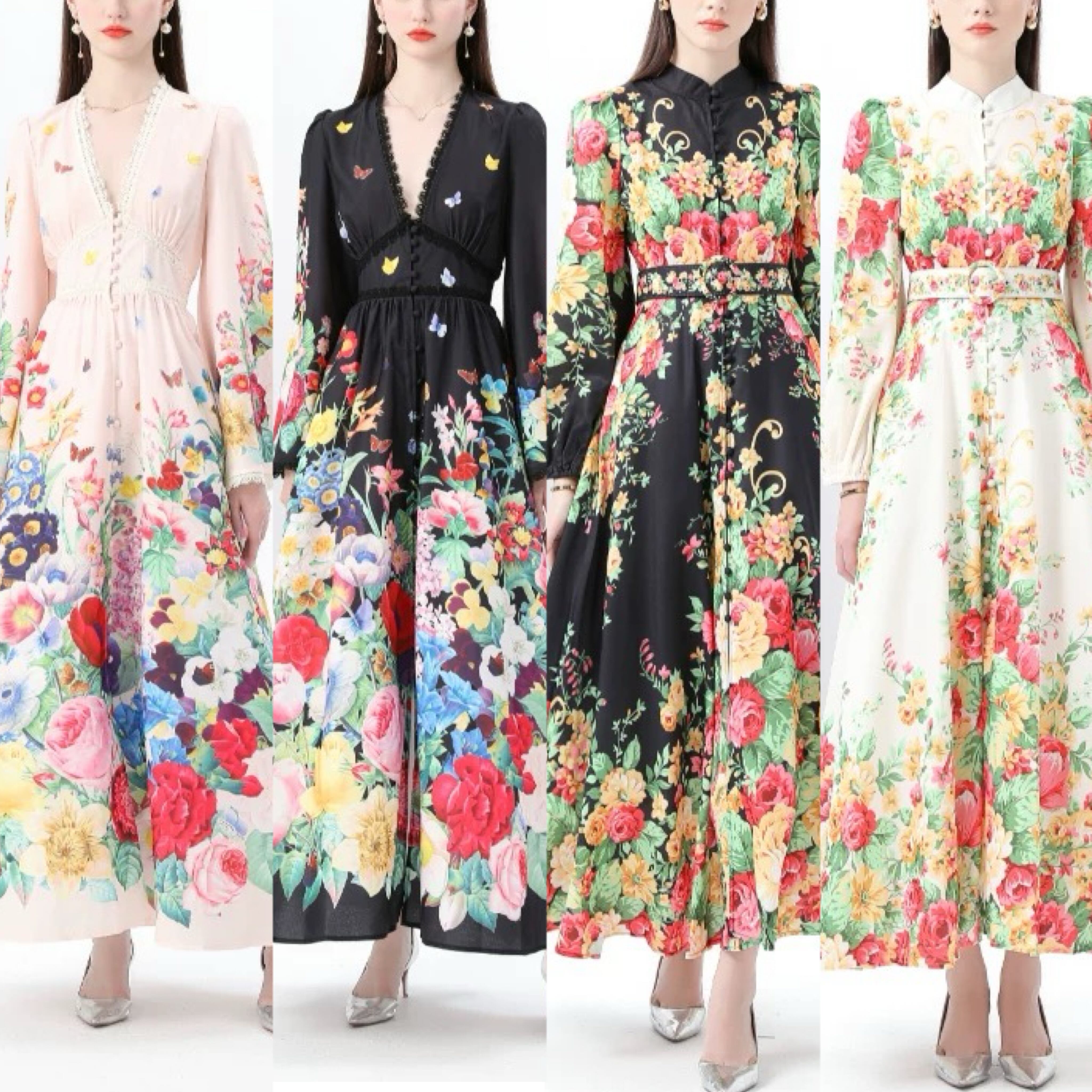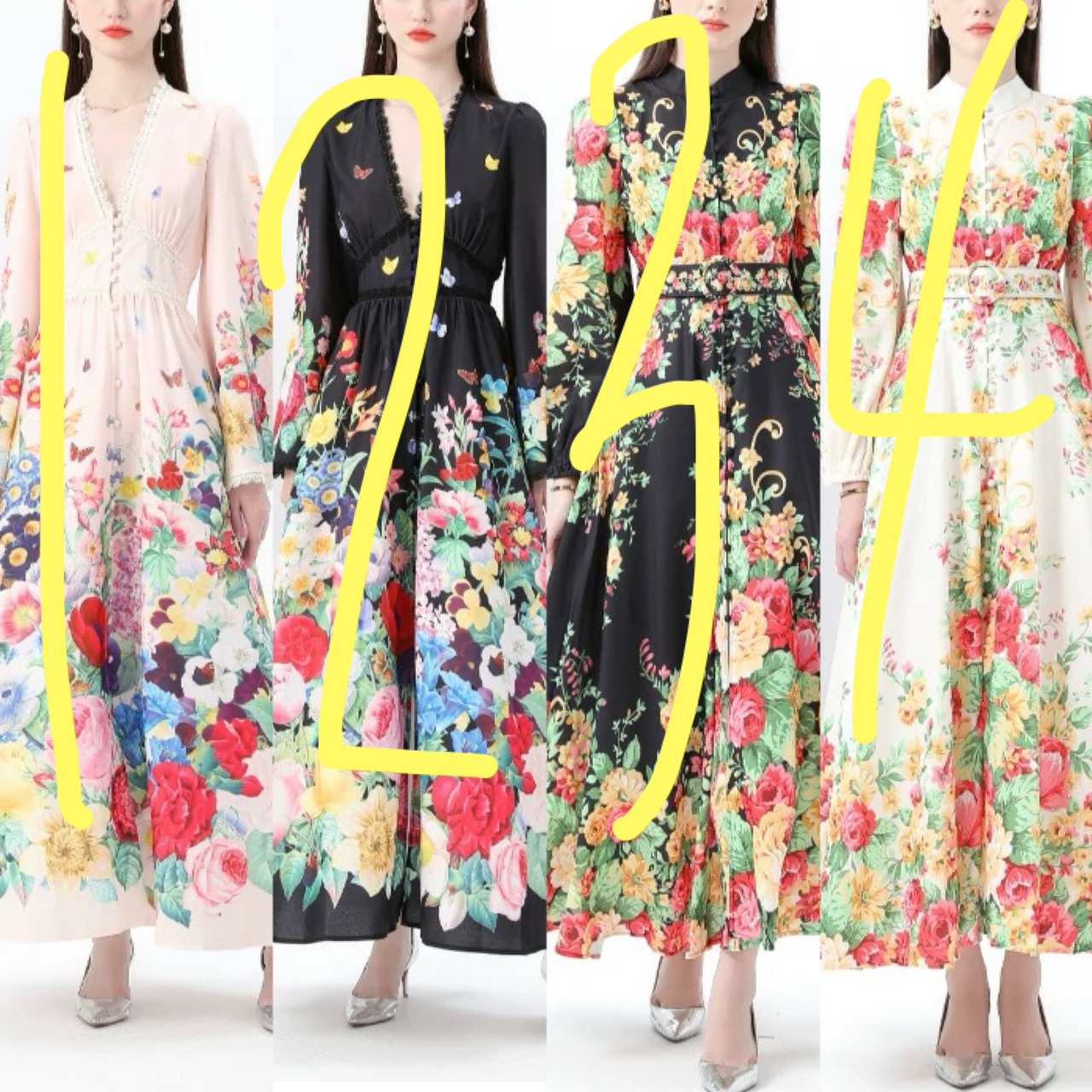 白 ピンク、黒 花柄、フラワー エレガント ワンピース