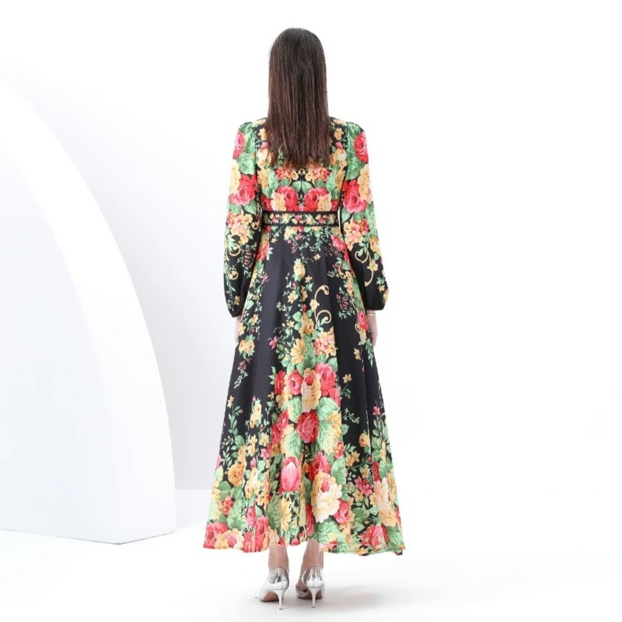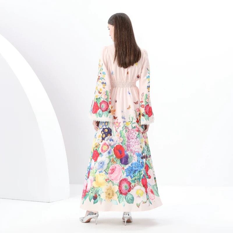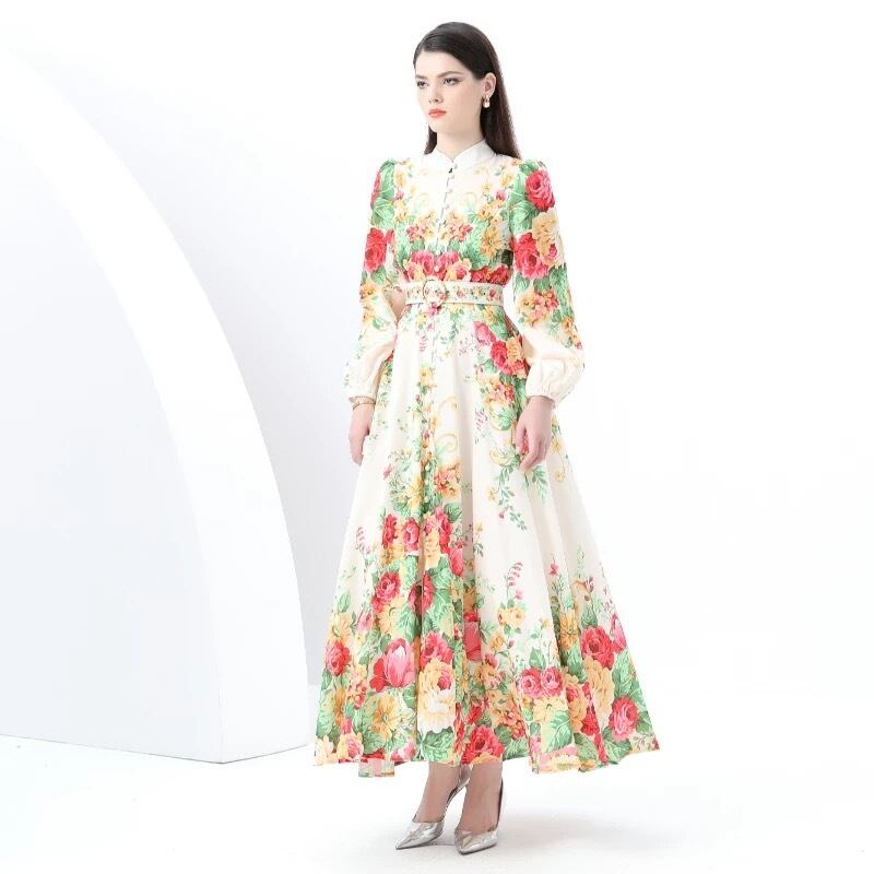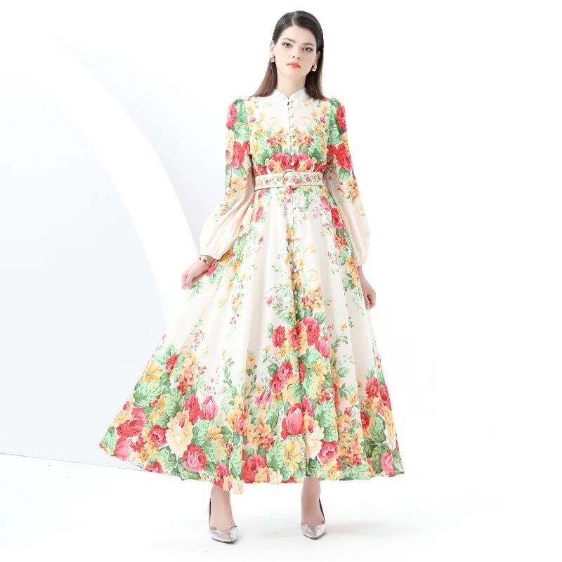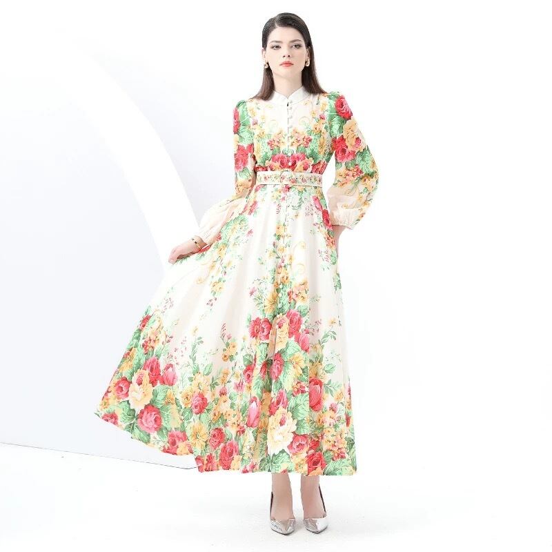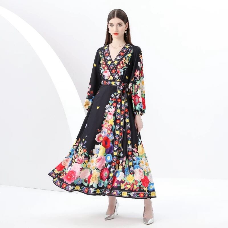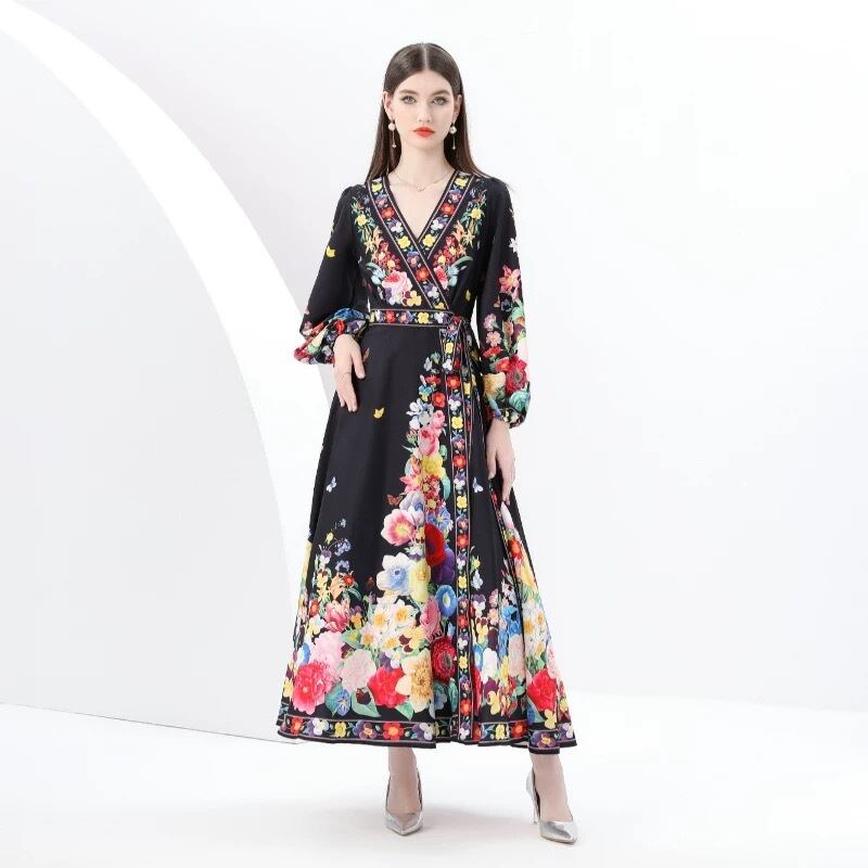 白 ピンク、黒 花柄、フラワー エレガント ワンピース