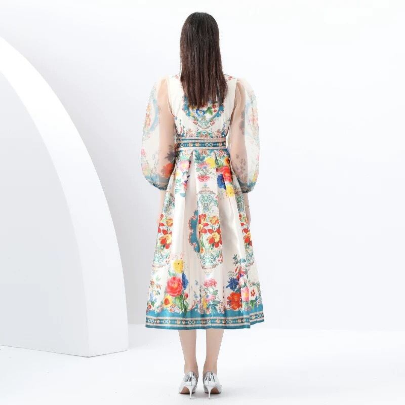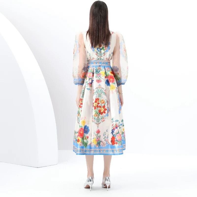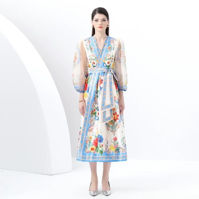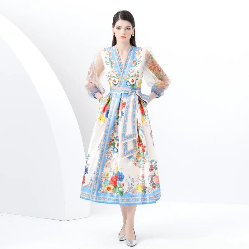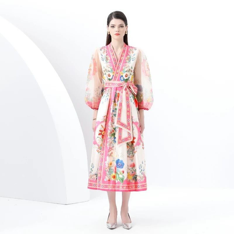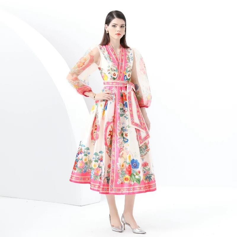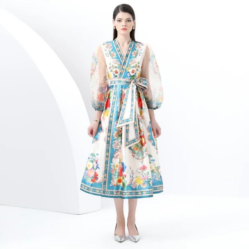 オレンジ、水色、緑、ピンク、エスニック エレガント ワンピース