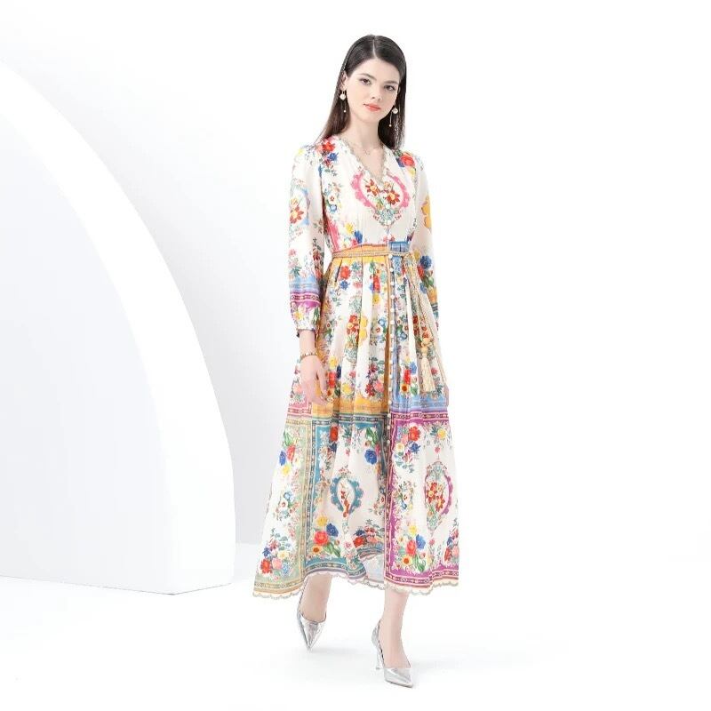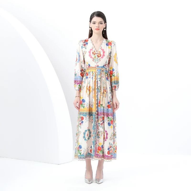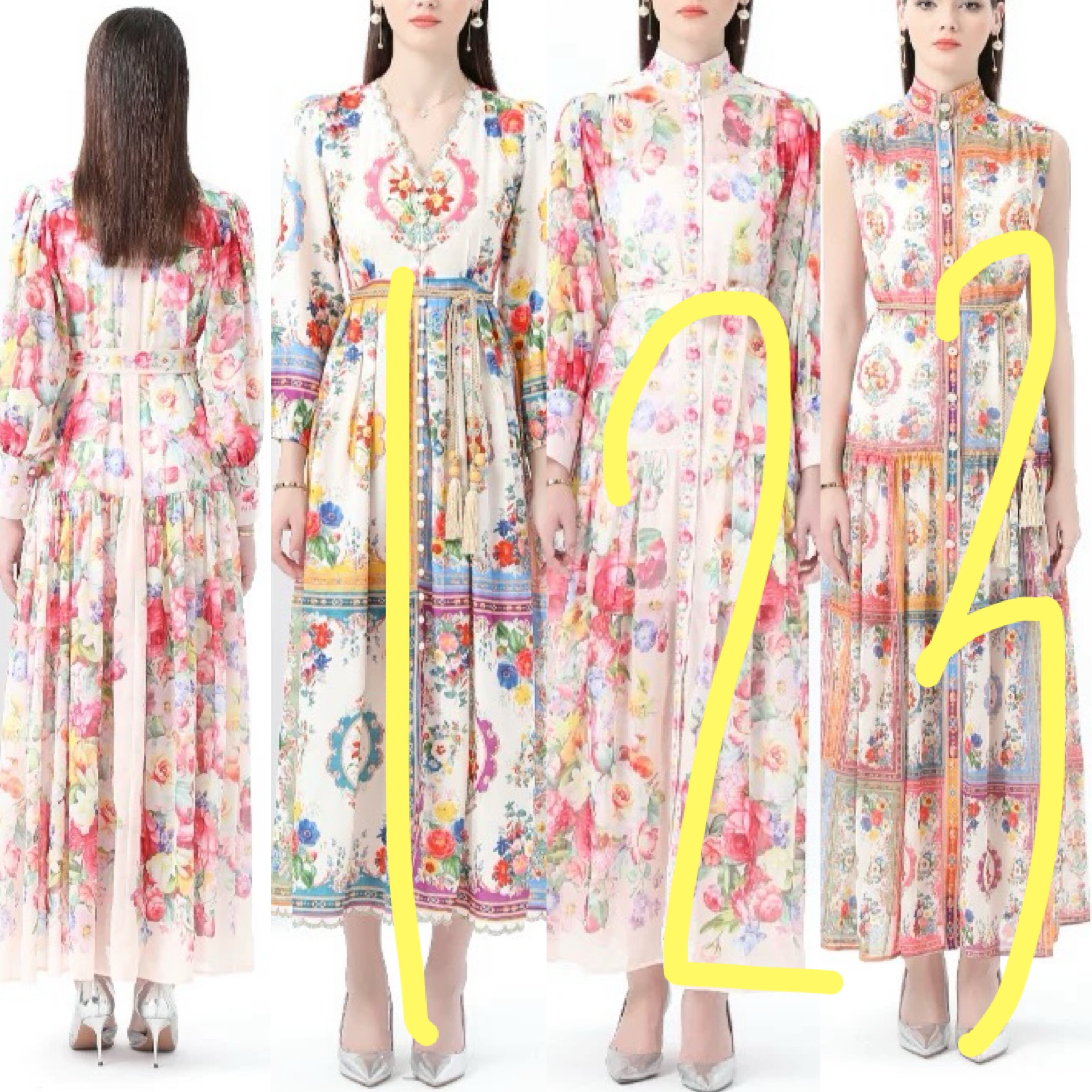 エレガント ワンピース ブラウス、マキシ スカート 花柄