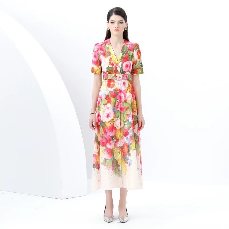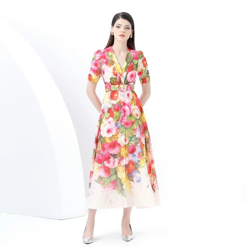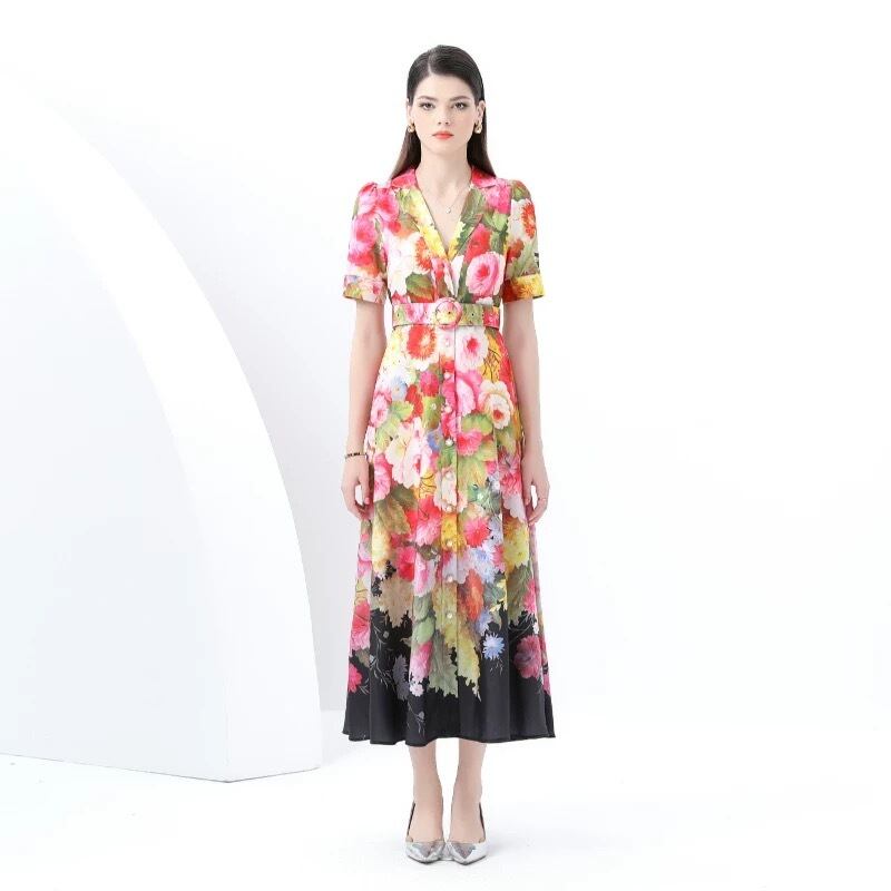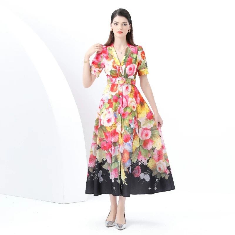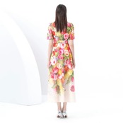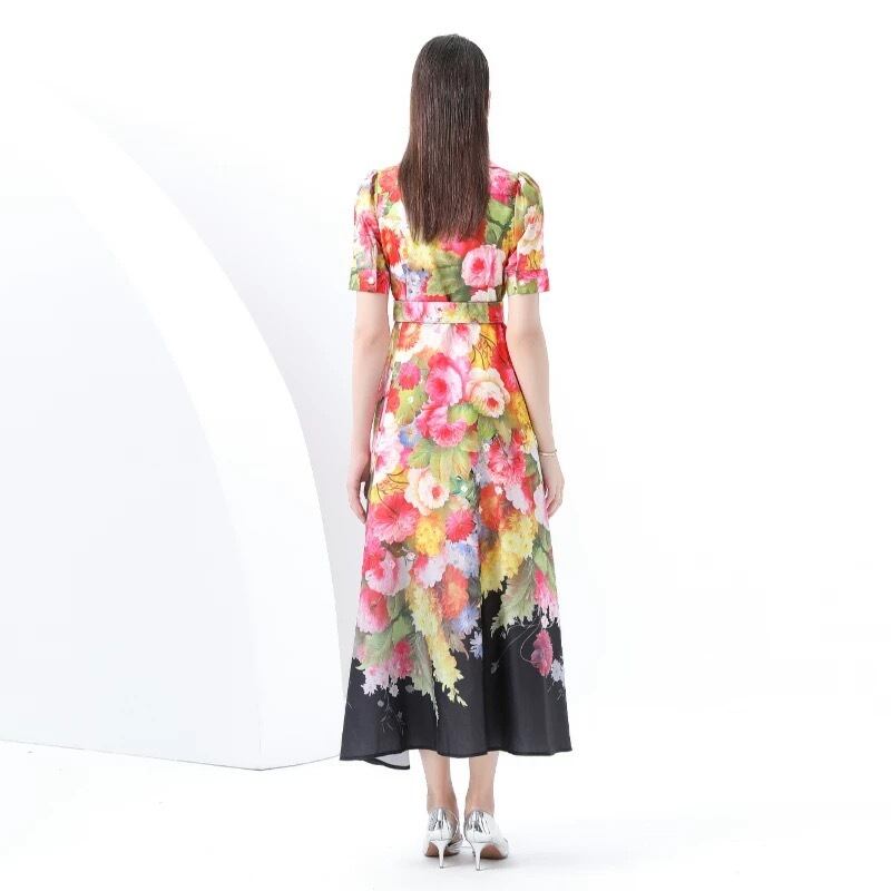 緑 黄色 リボン 花柄 フラワー マキシスカート ワンピース
