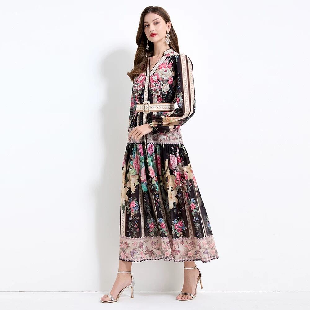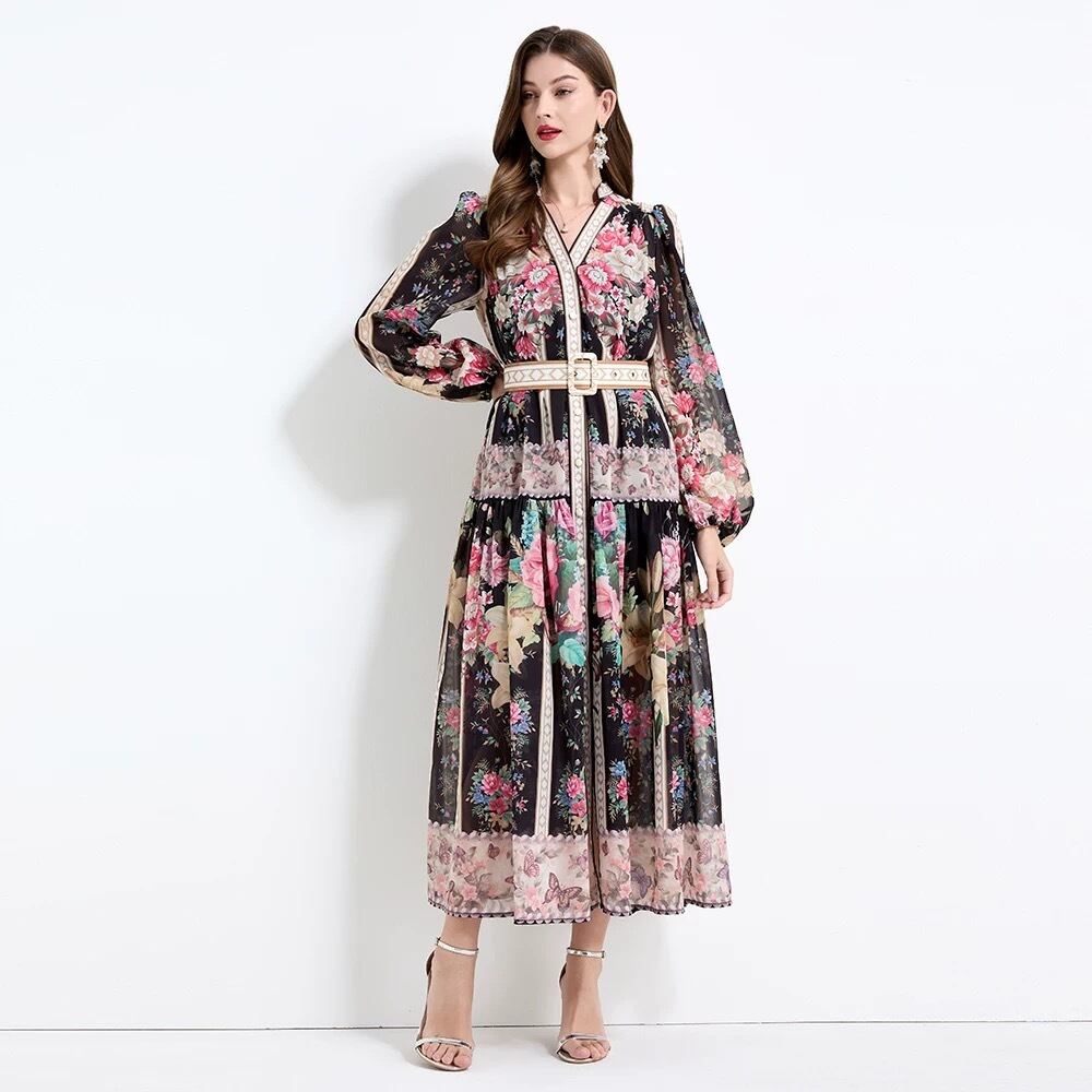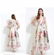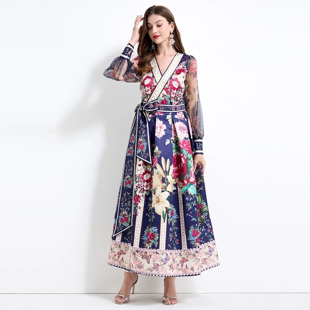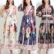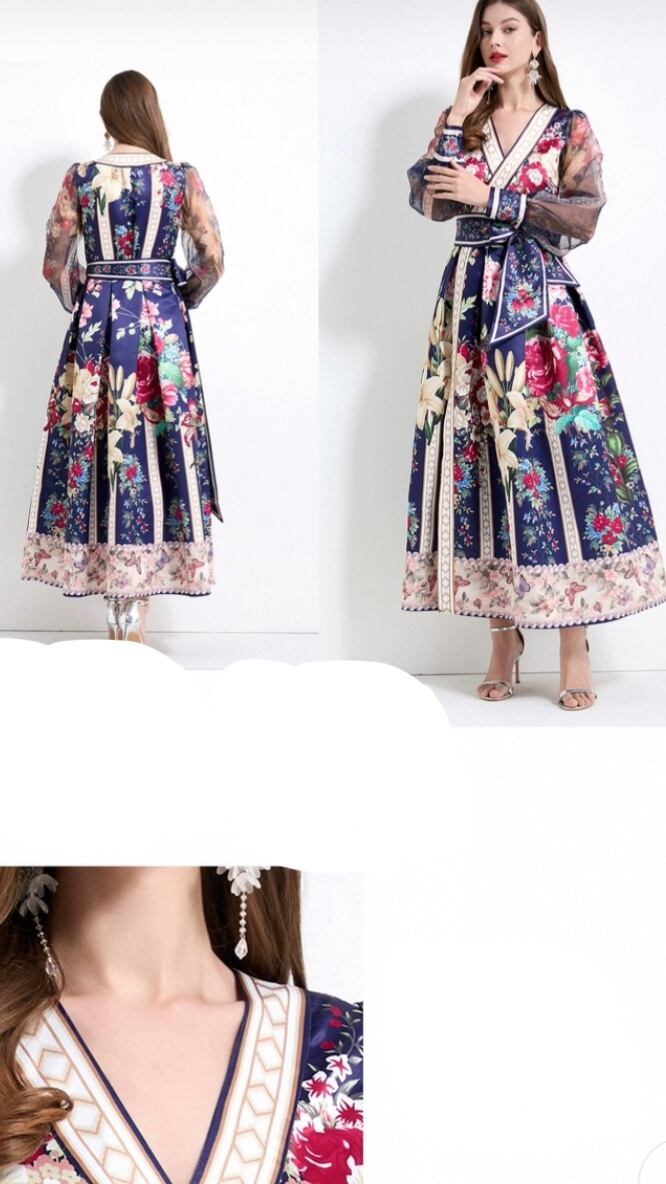 ネイビー、白、黒 エスニック、花柄、エレガント ワンピース