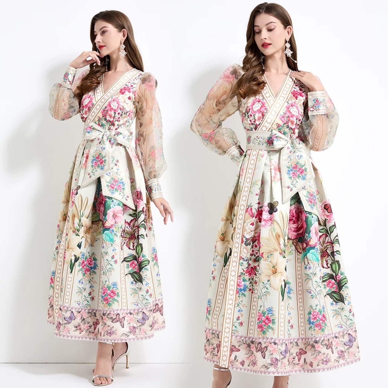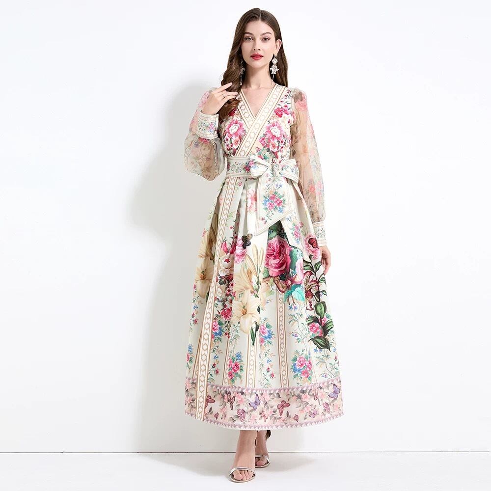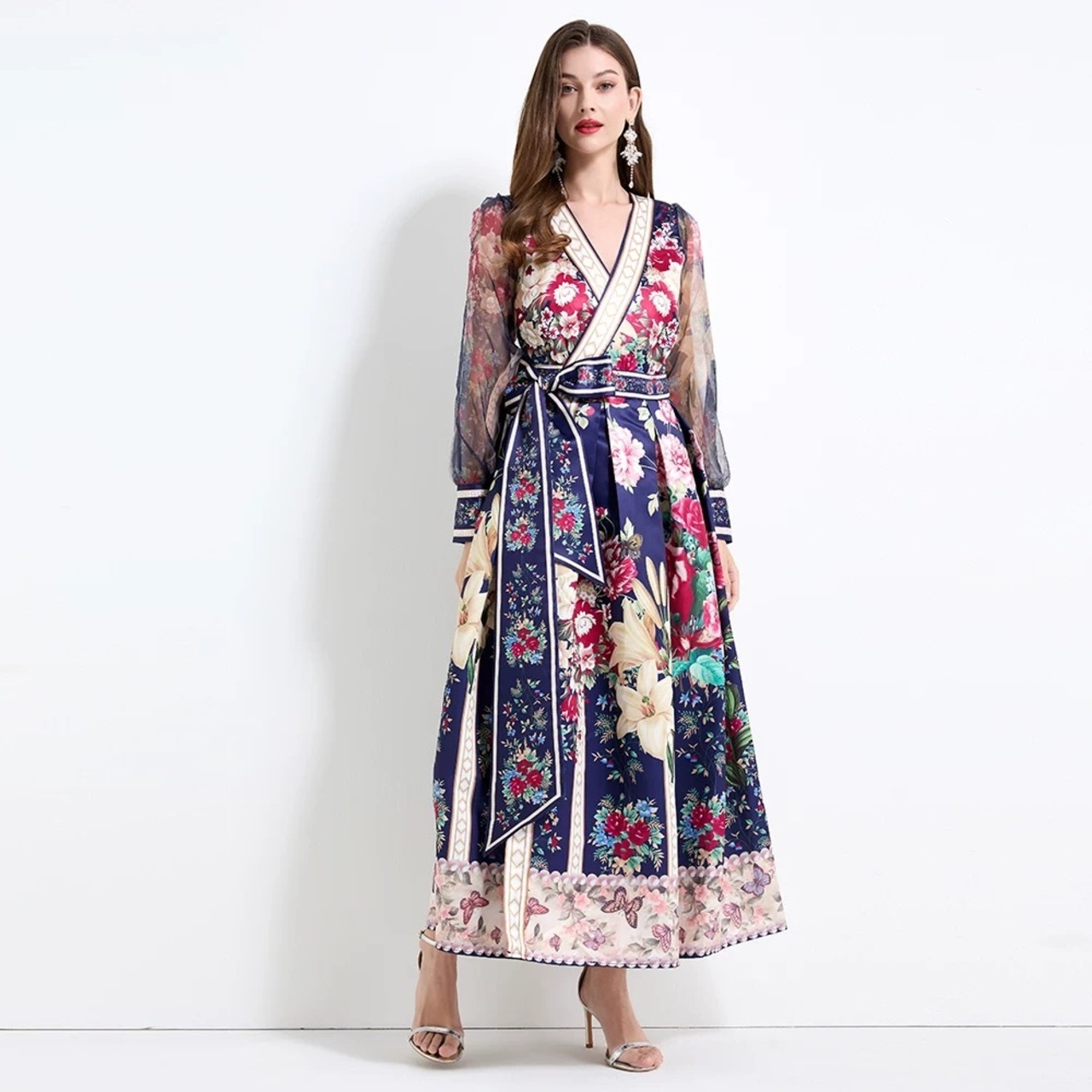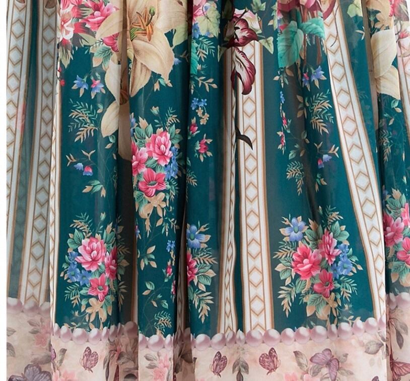 ネイビー、白、黒 エスニック、花柄、エレガント ワンピース