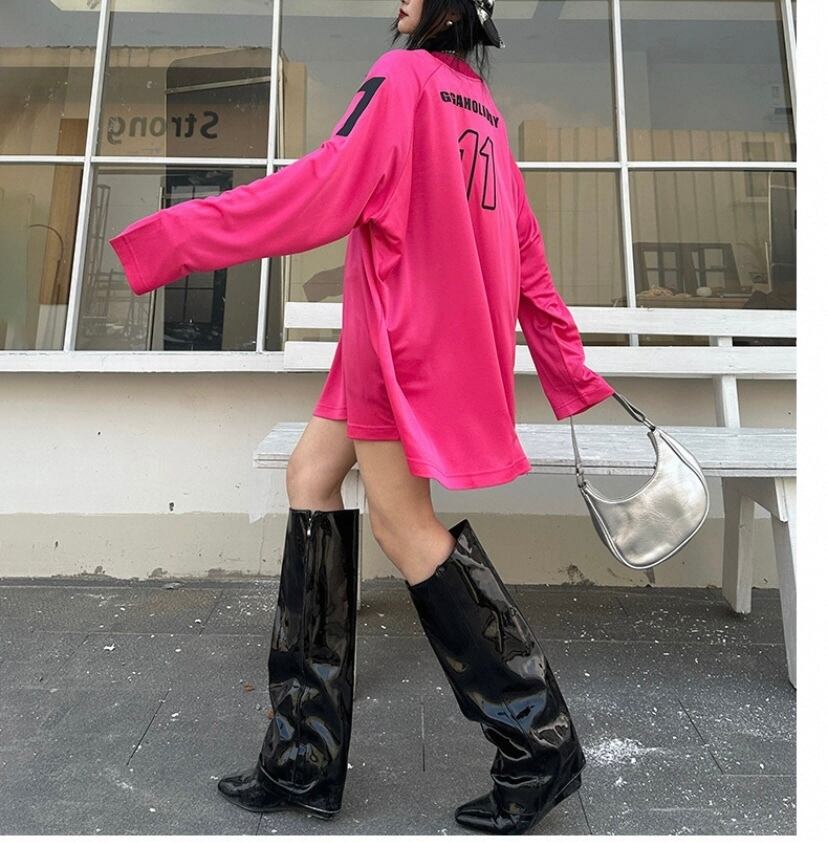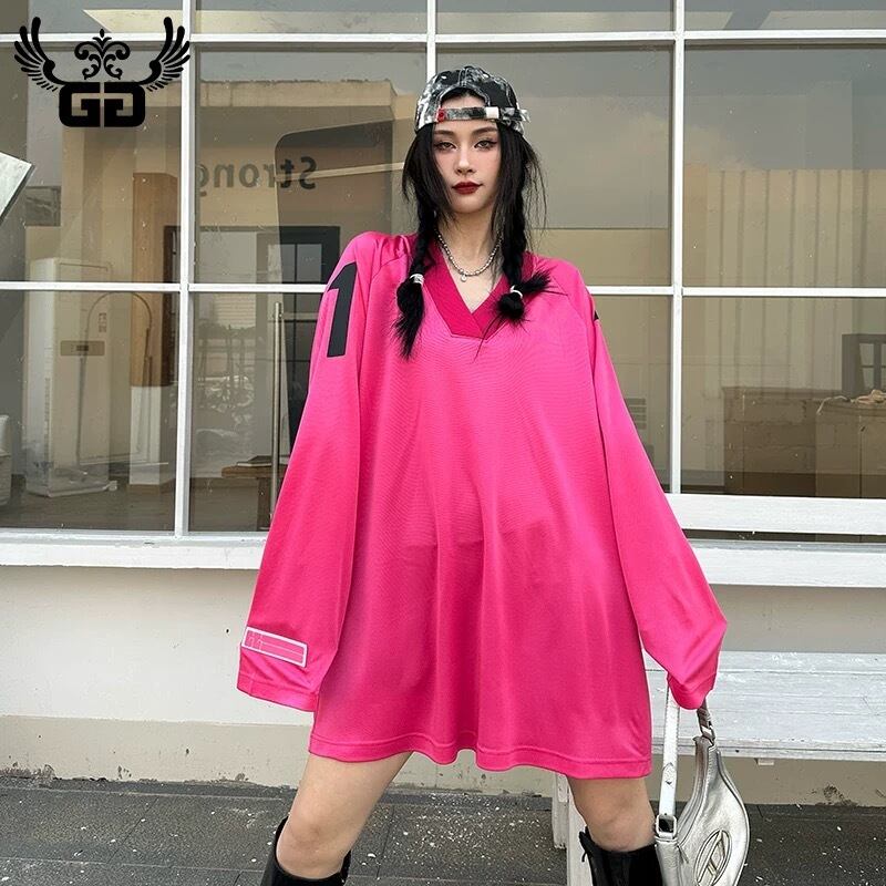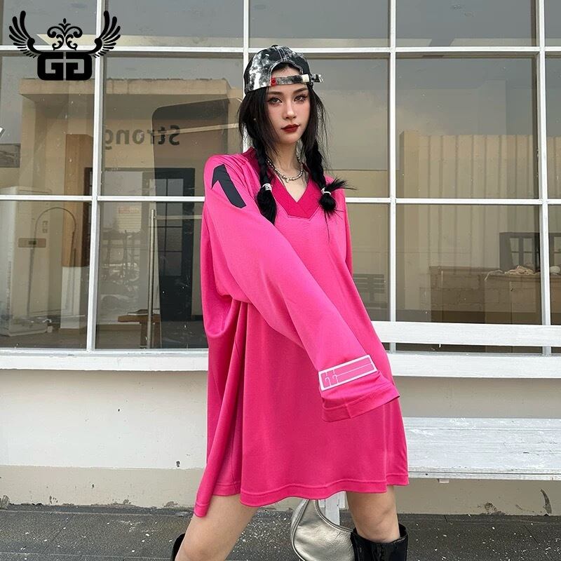 オーバーサイズ、ピンク、ブイネック トップスワンピース、ブラウス、スウェット
