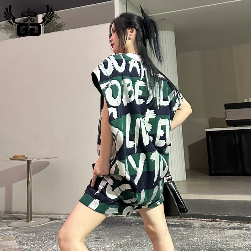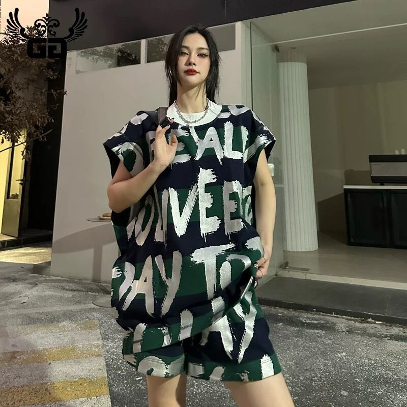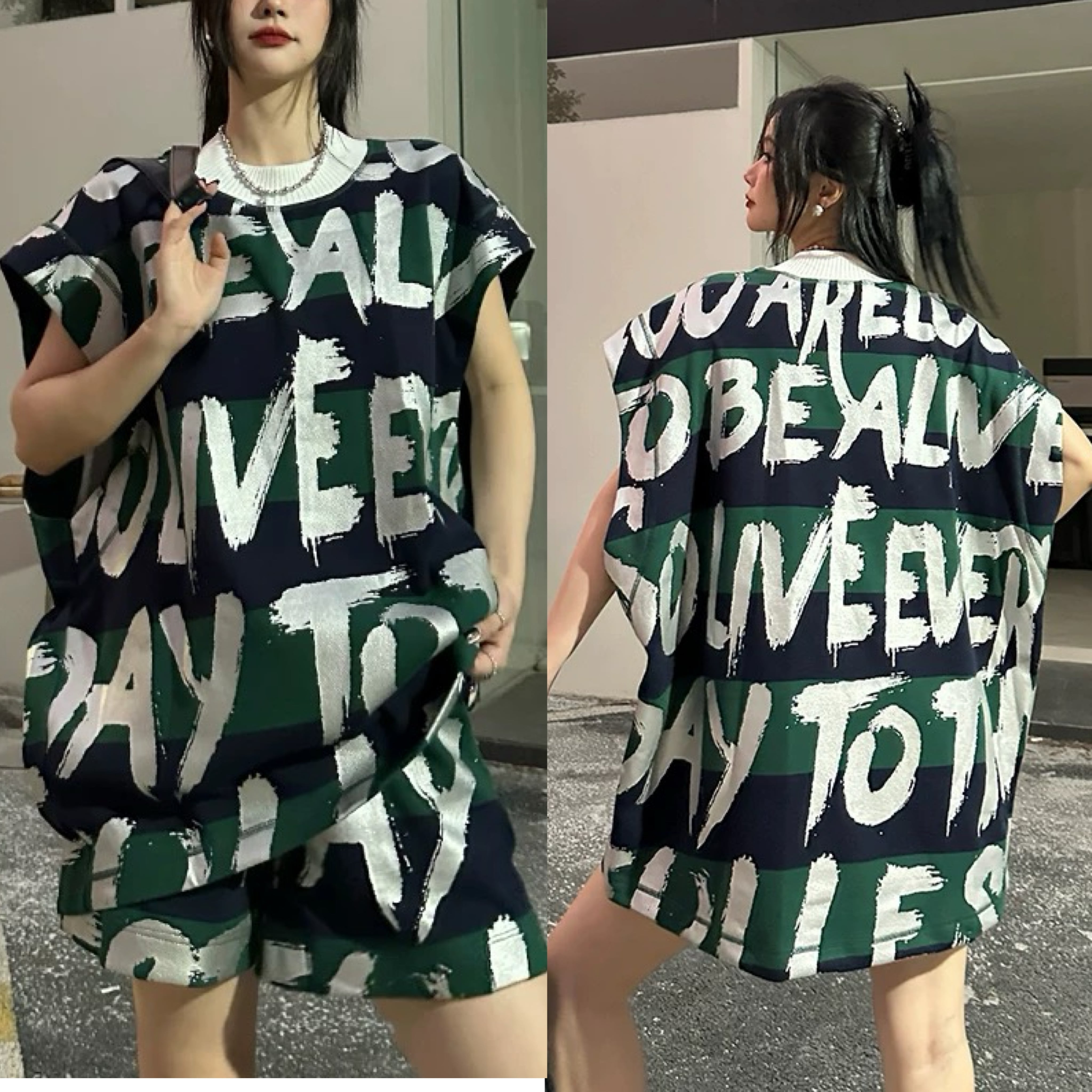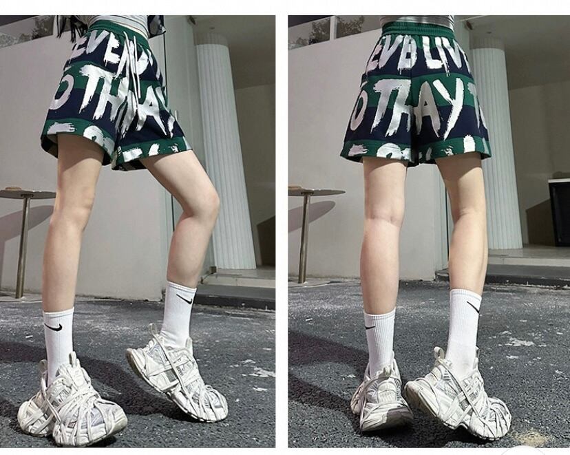 【セットアップ】ハーフパンツ、短パン、緑、グリーン、白 エイジ、オーバーサイズ、カジュアル スエット