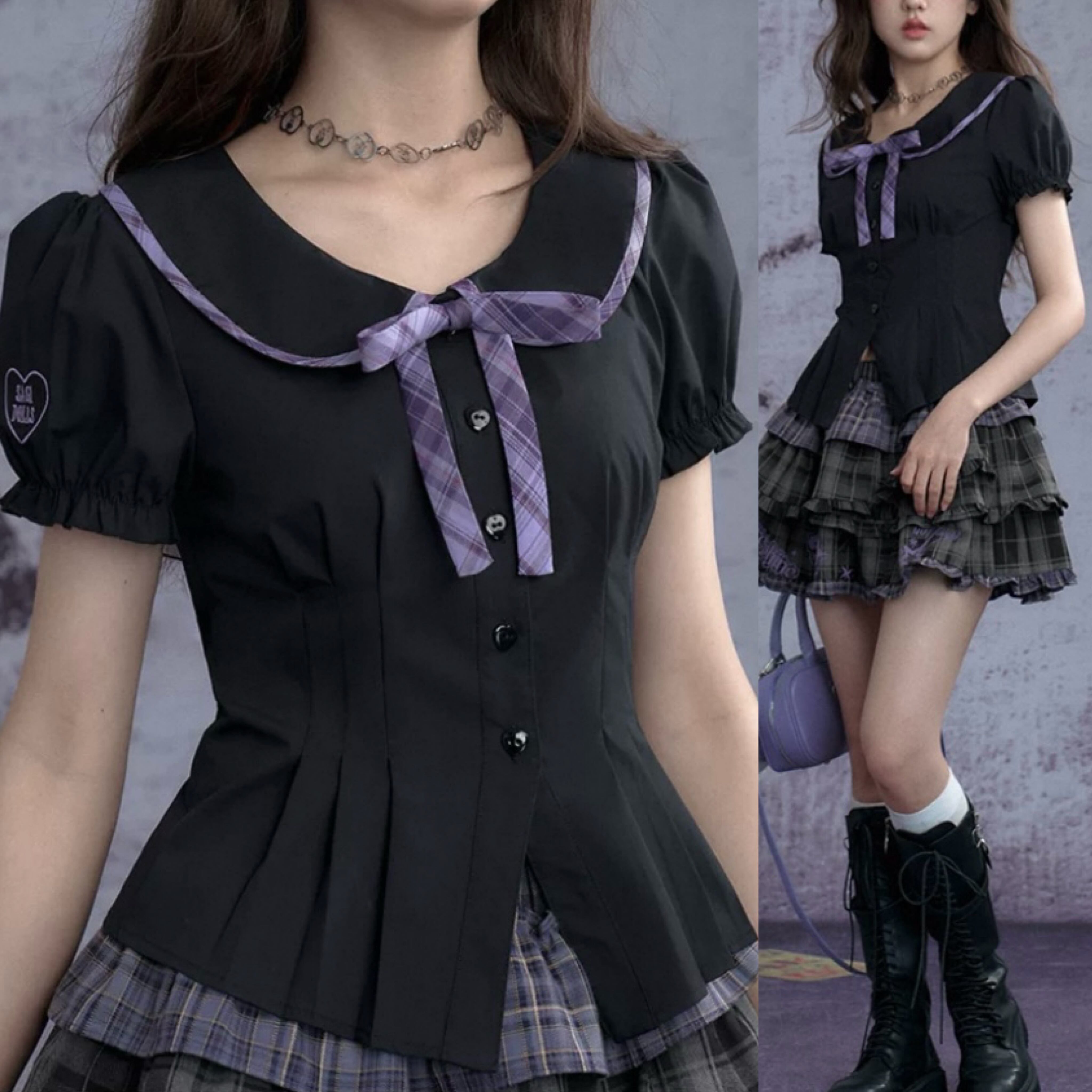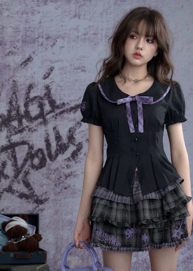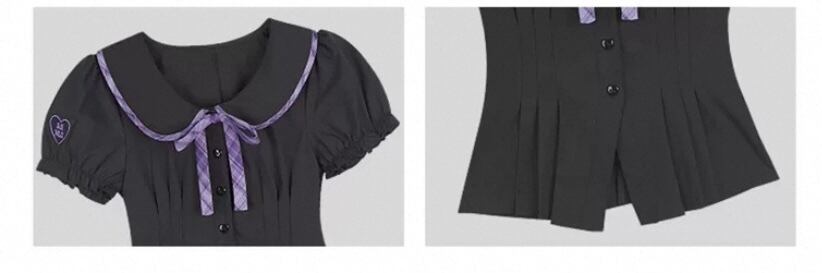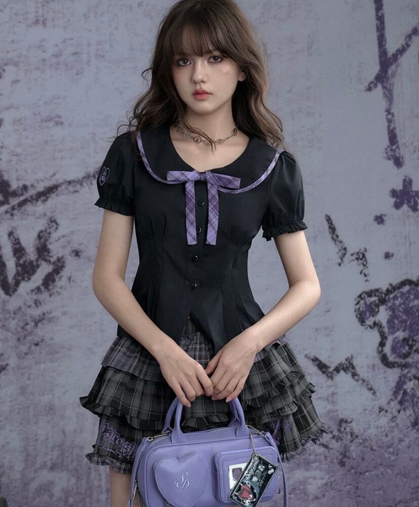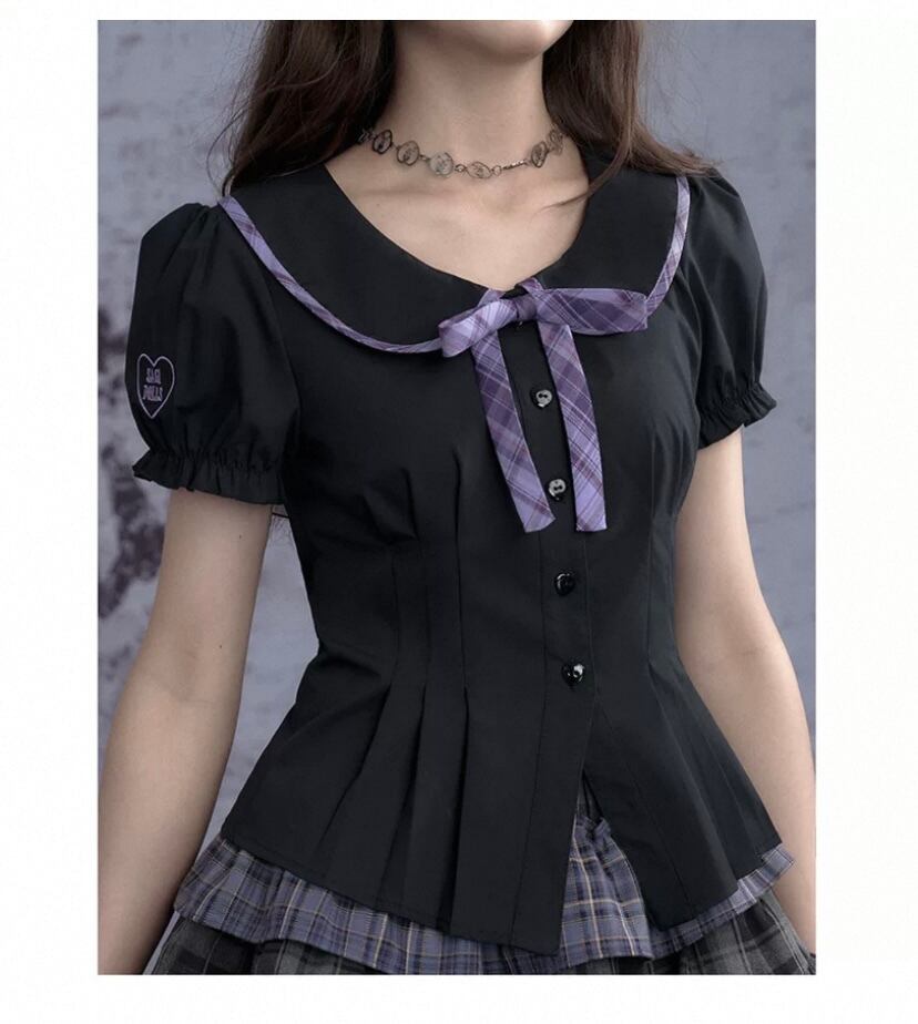 紫 丸襟 リボン ブラウス トップス ガーリー
