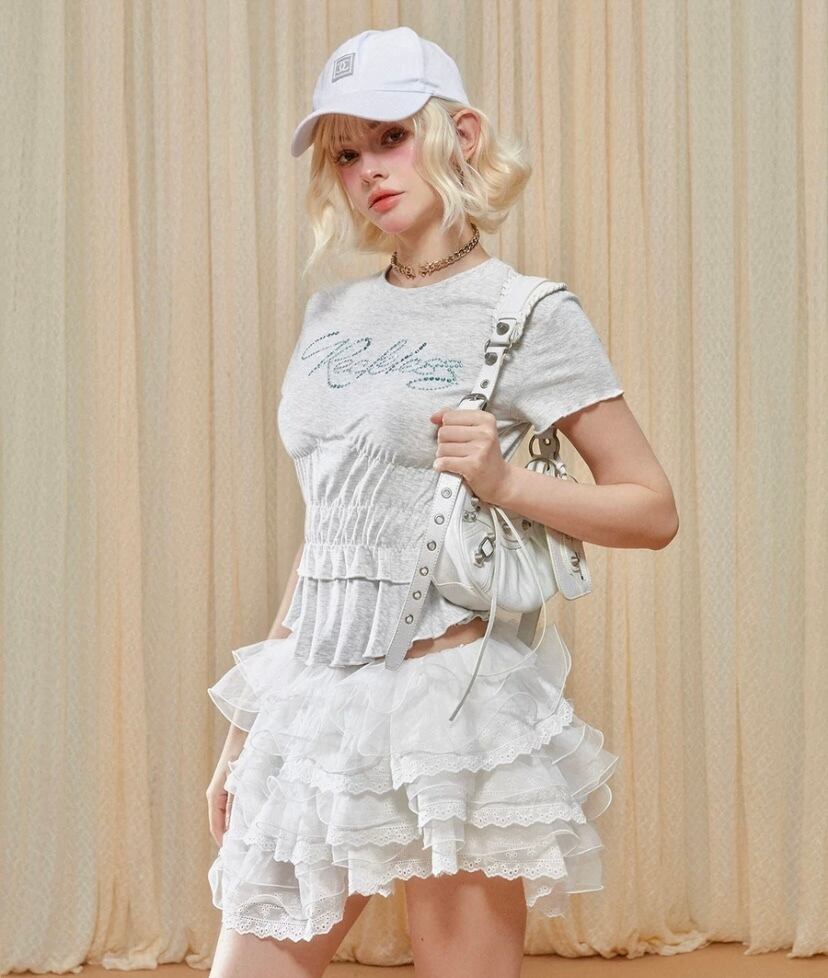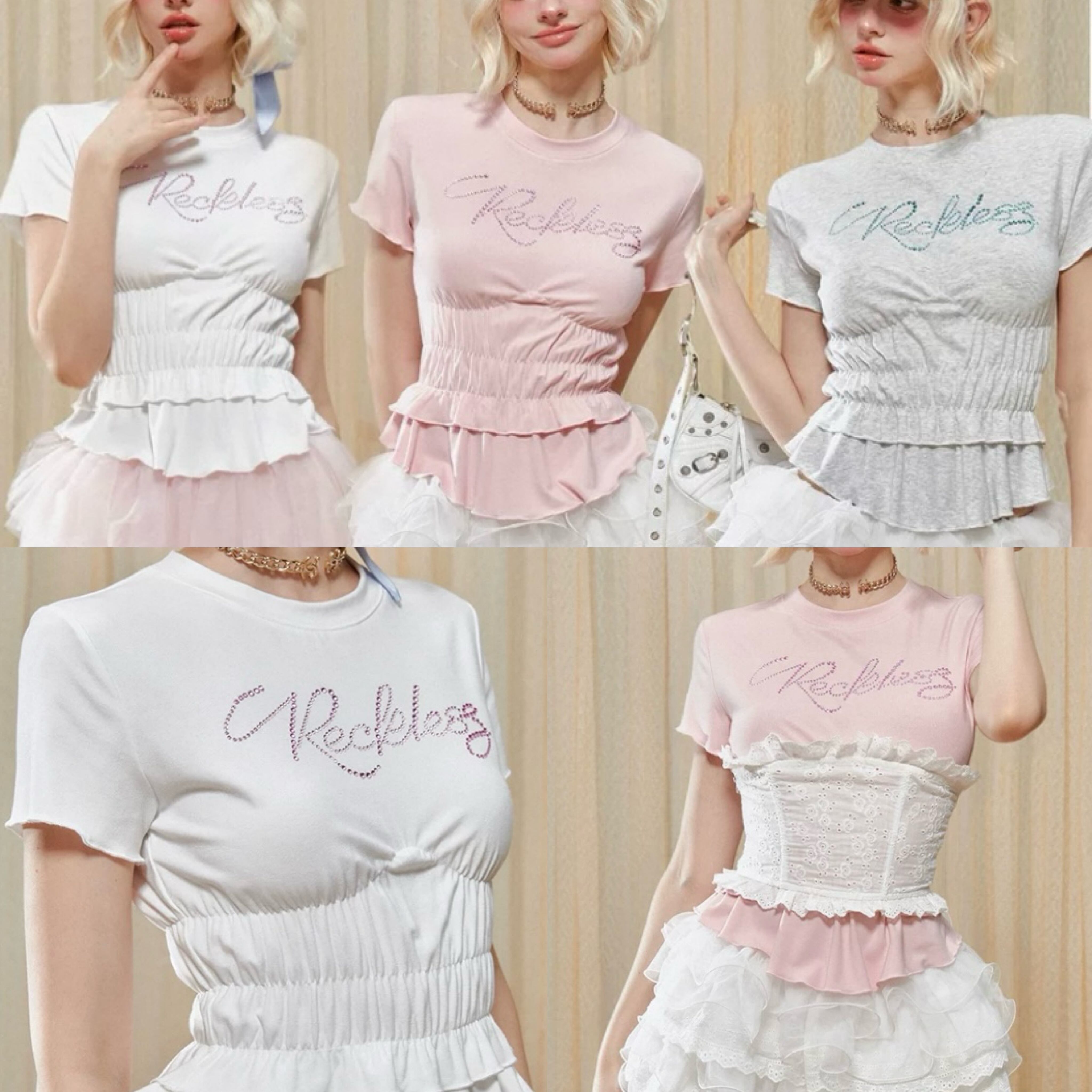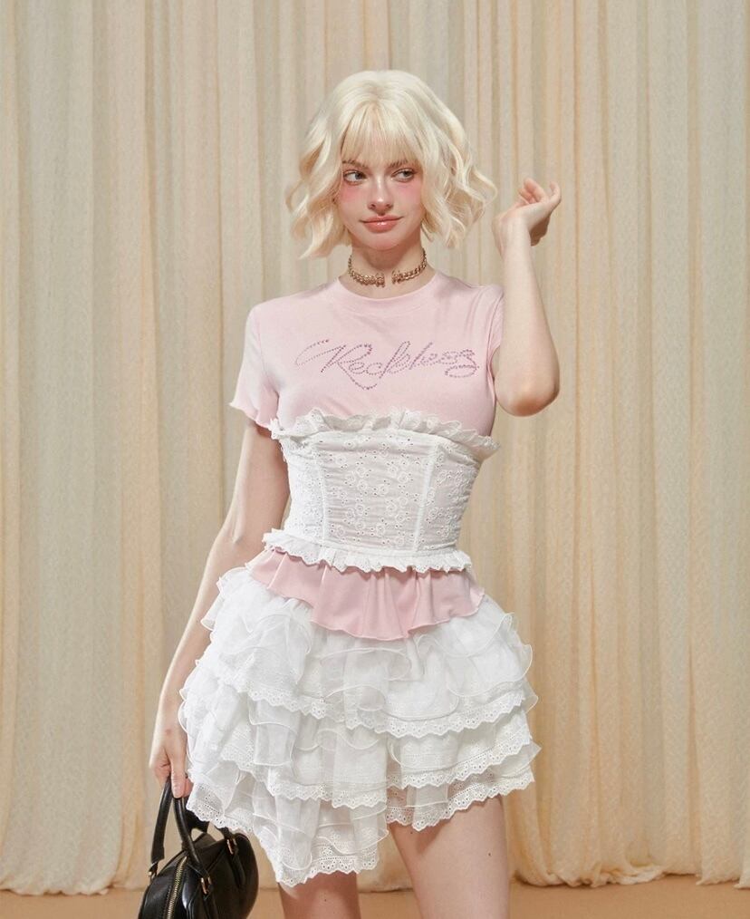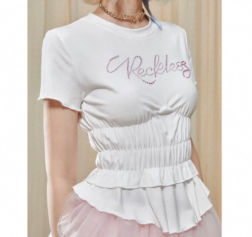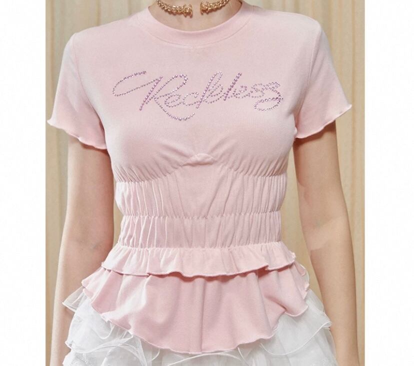 可愛い カジュアル 白 ピンク 水色 キラキラ Tシャツ