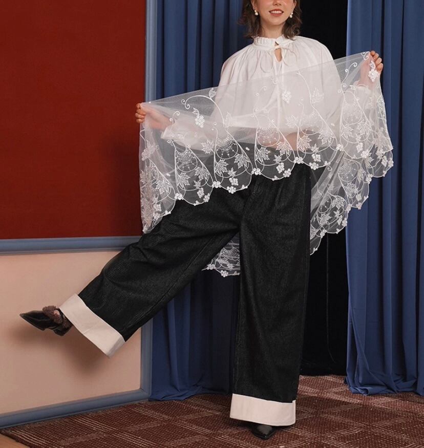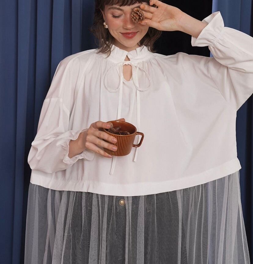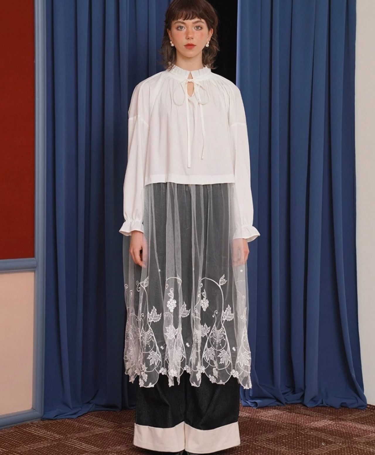 下のほうは透けていますので、重ね着やパンツなどで少しお腹見せなども可愛いです。いろいろなお洋服に合わせられます。