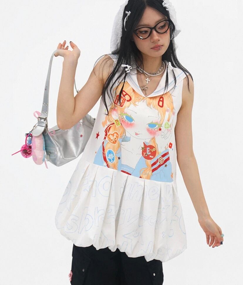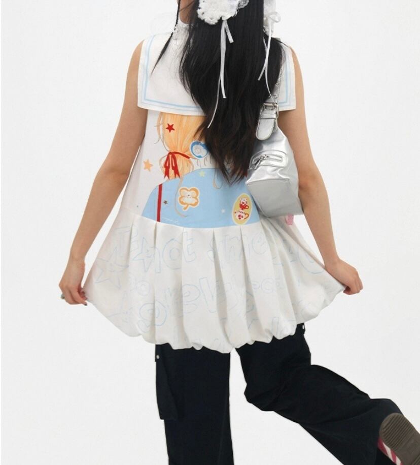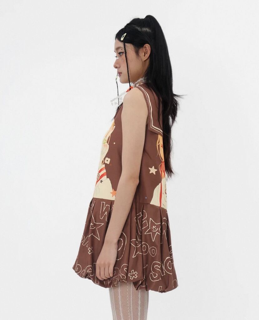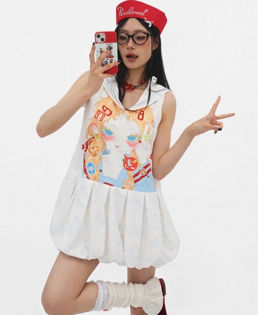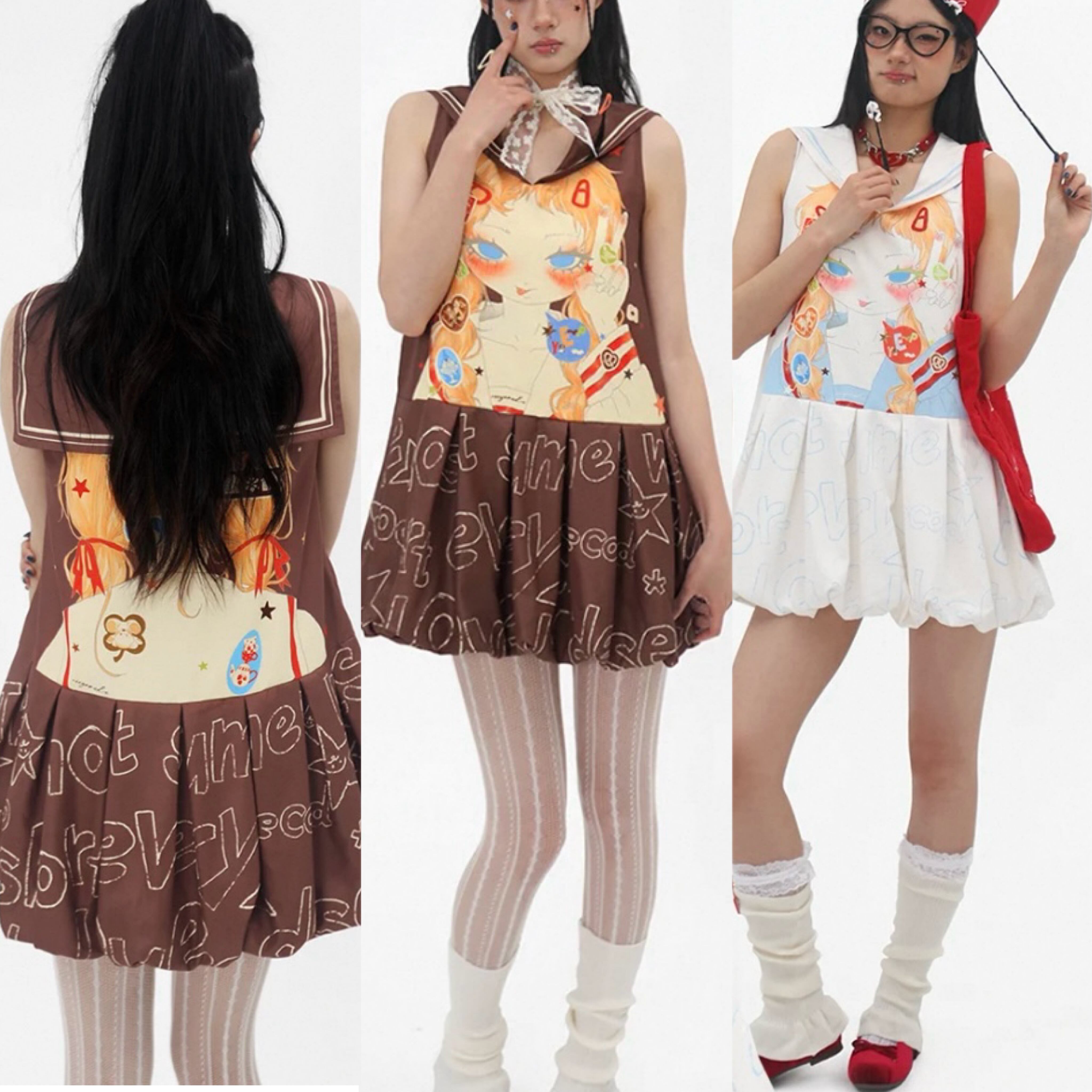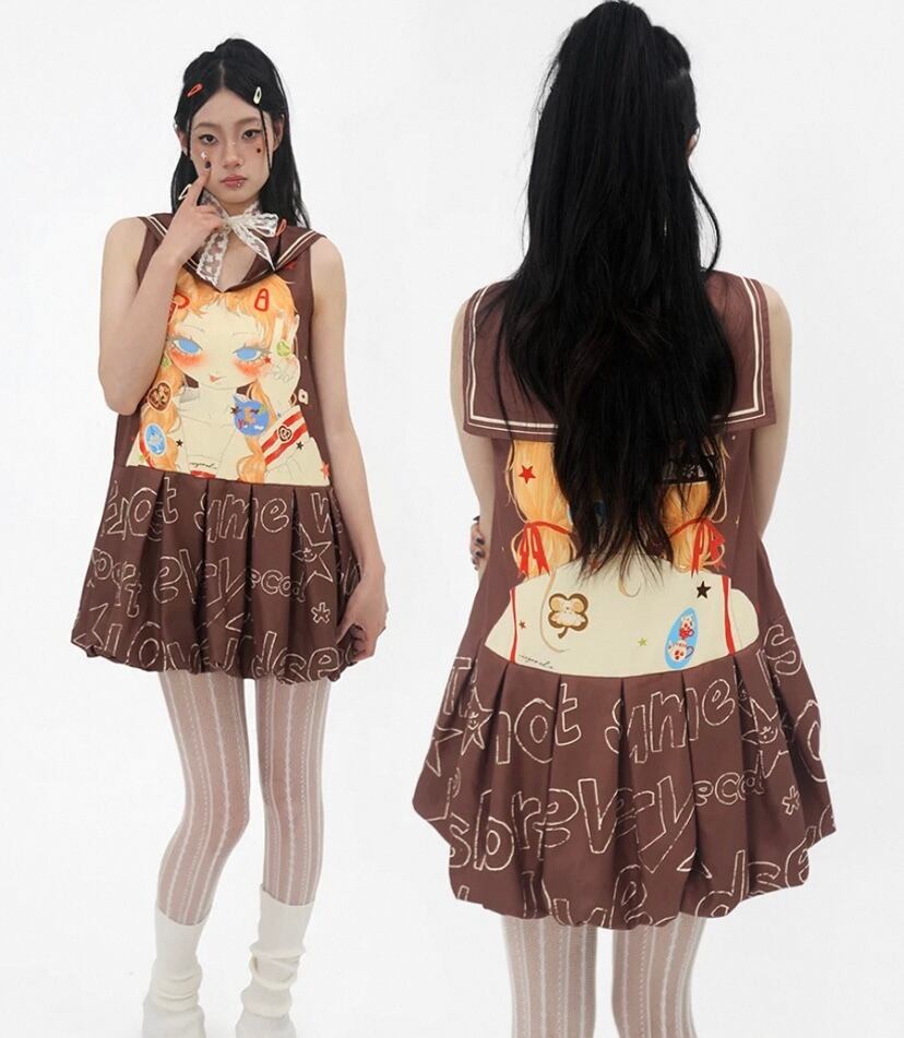 セーラー 茶色、白 かわいい マリン ワンピース、ミニスカート 原宿 ホワイト