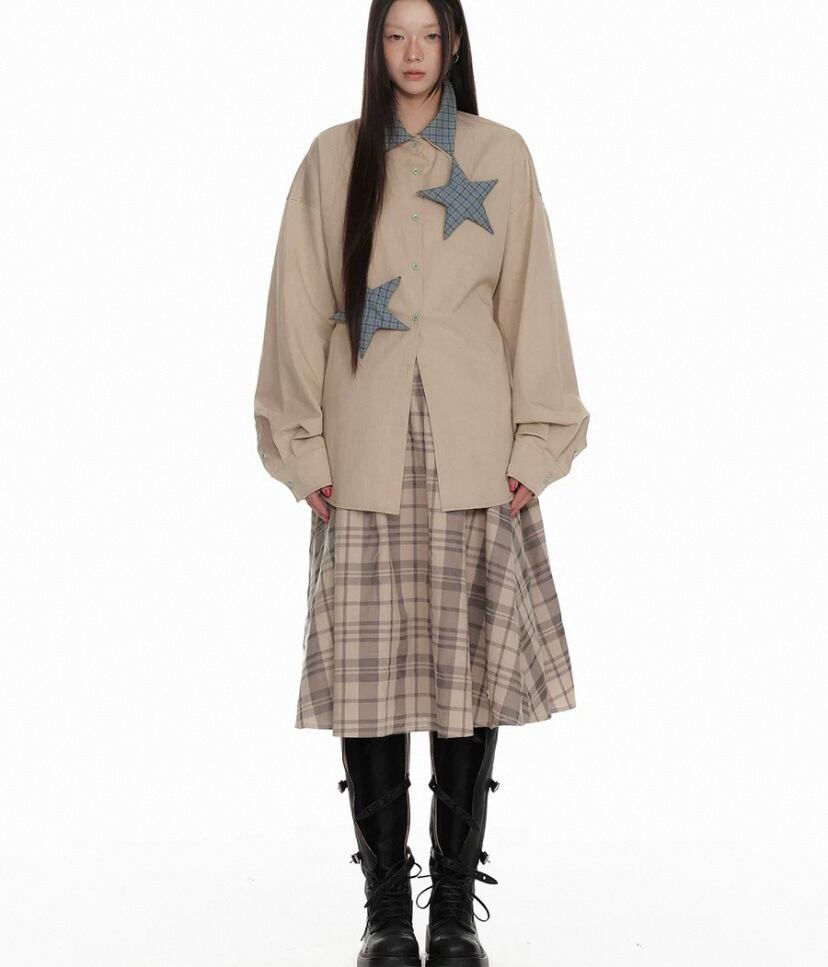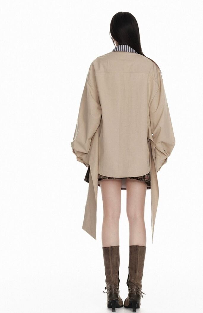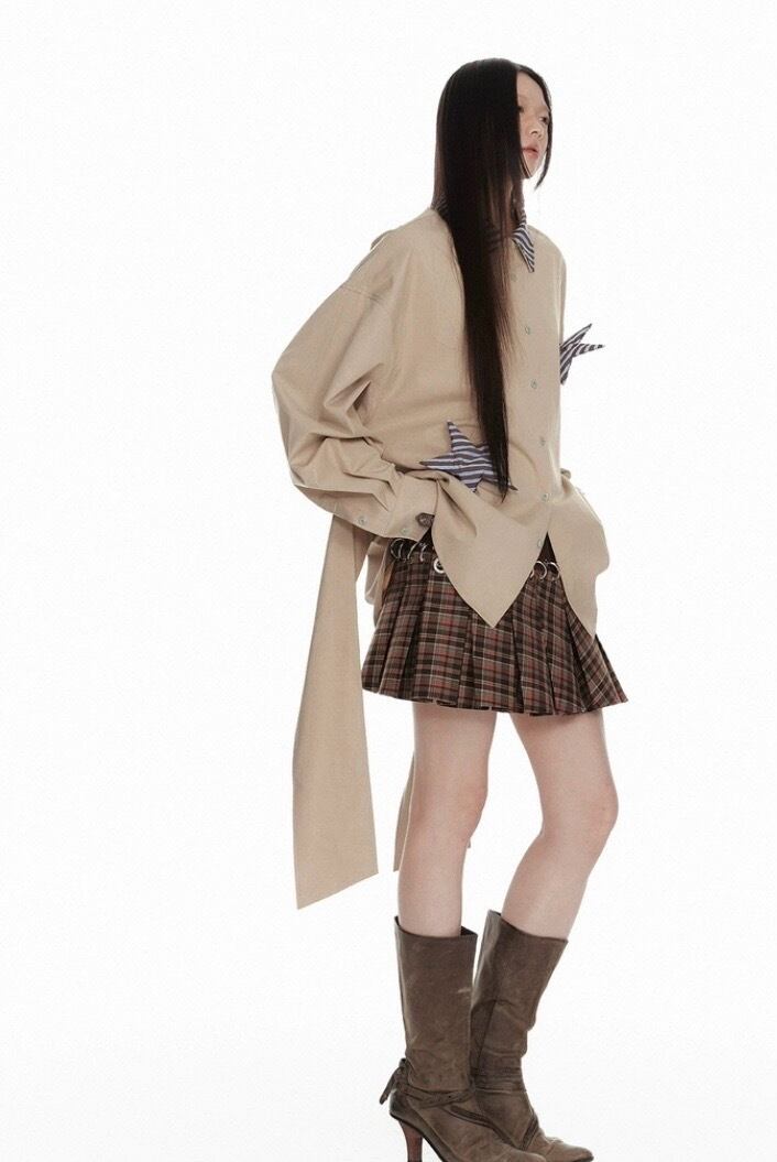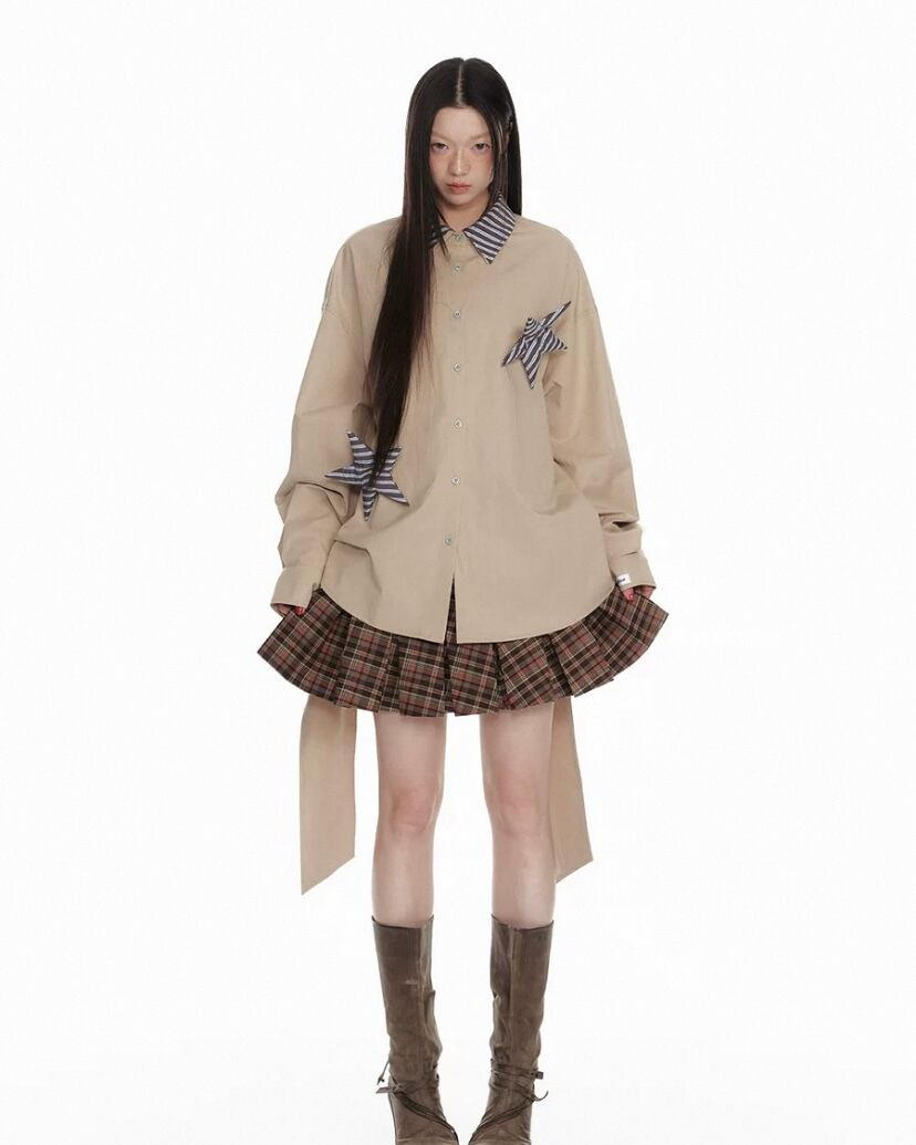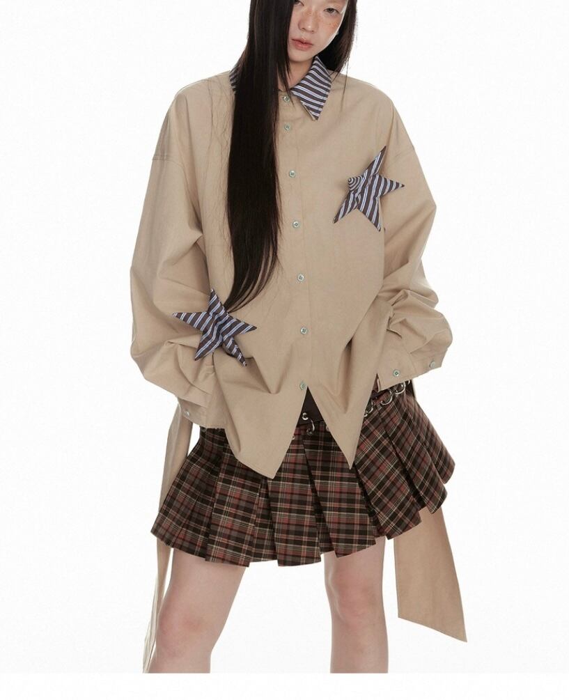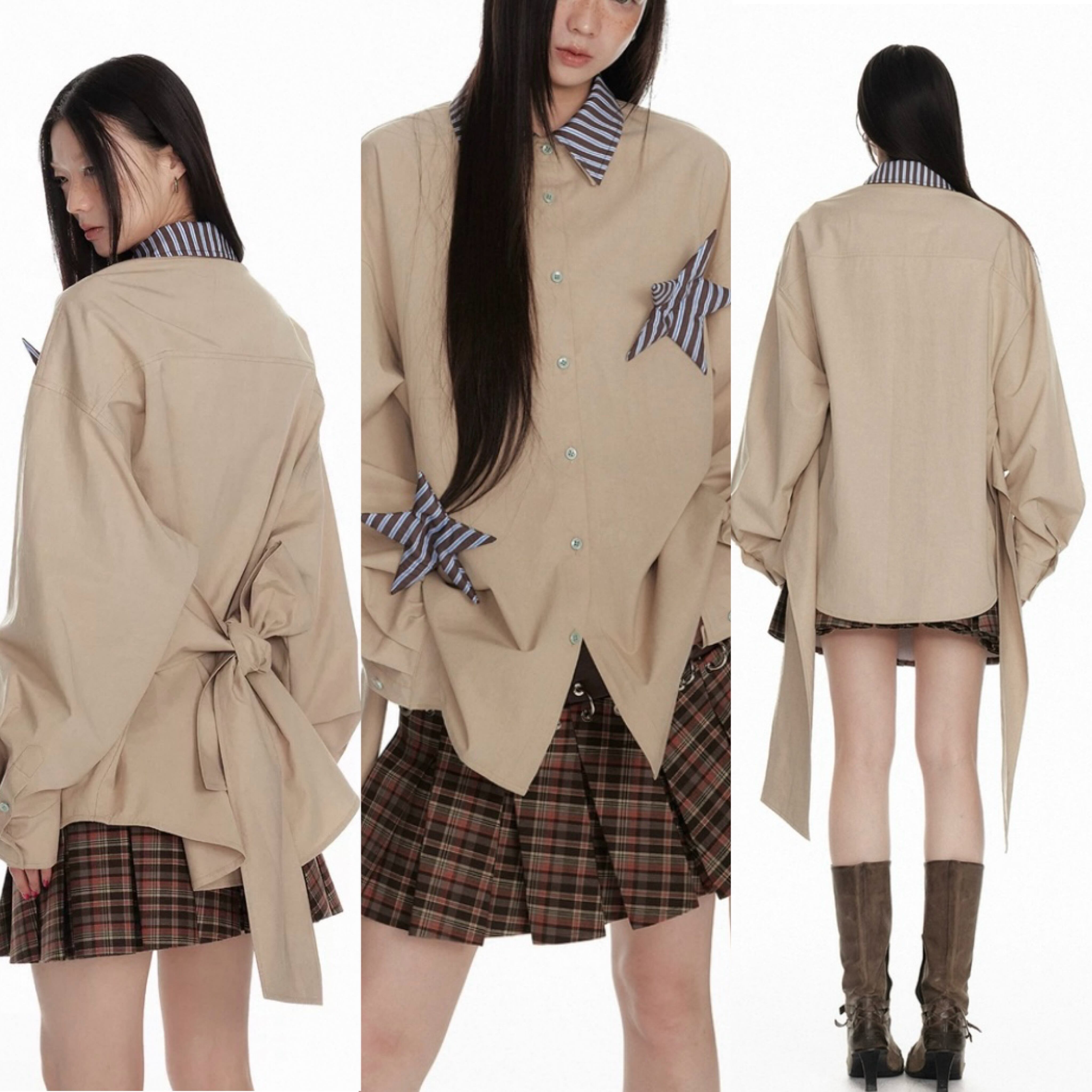 シャツ オーバーサイズ、ゆったり リボン 星 ブラウス シャツ