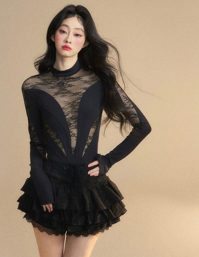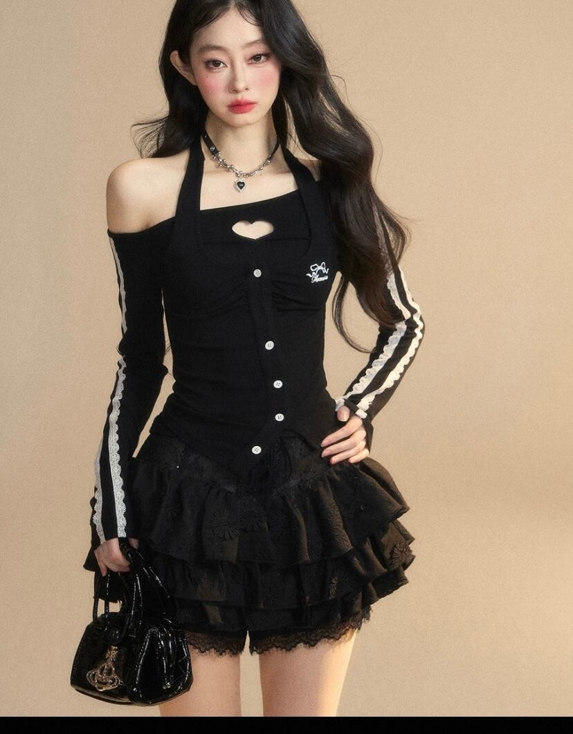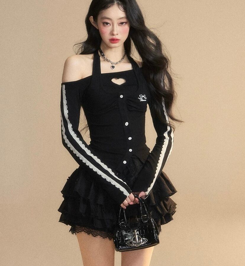 黒 オフショルダー、トップス ブラウス、レース かわいい ガーリー、ブラウス Tシャツ