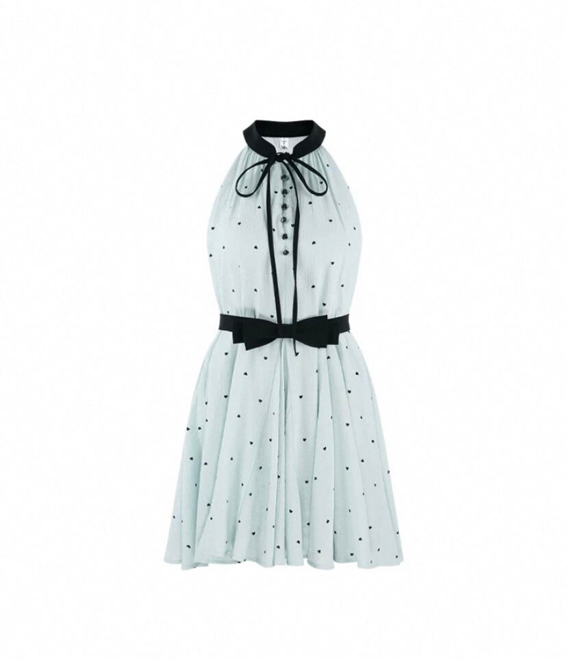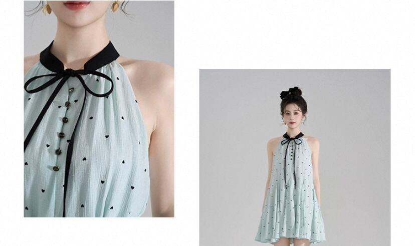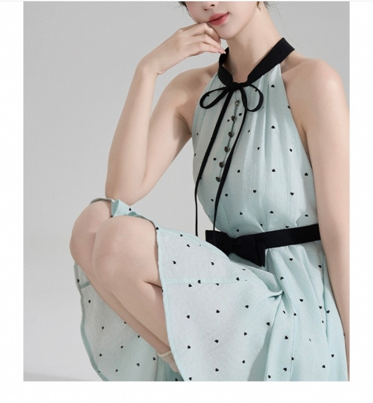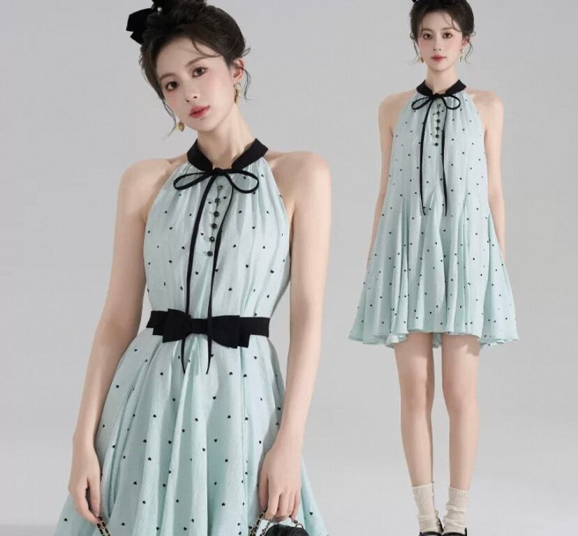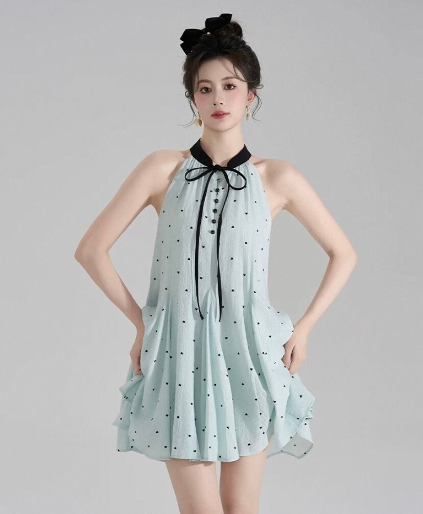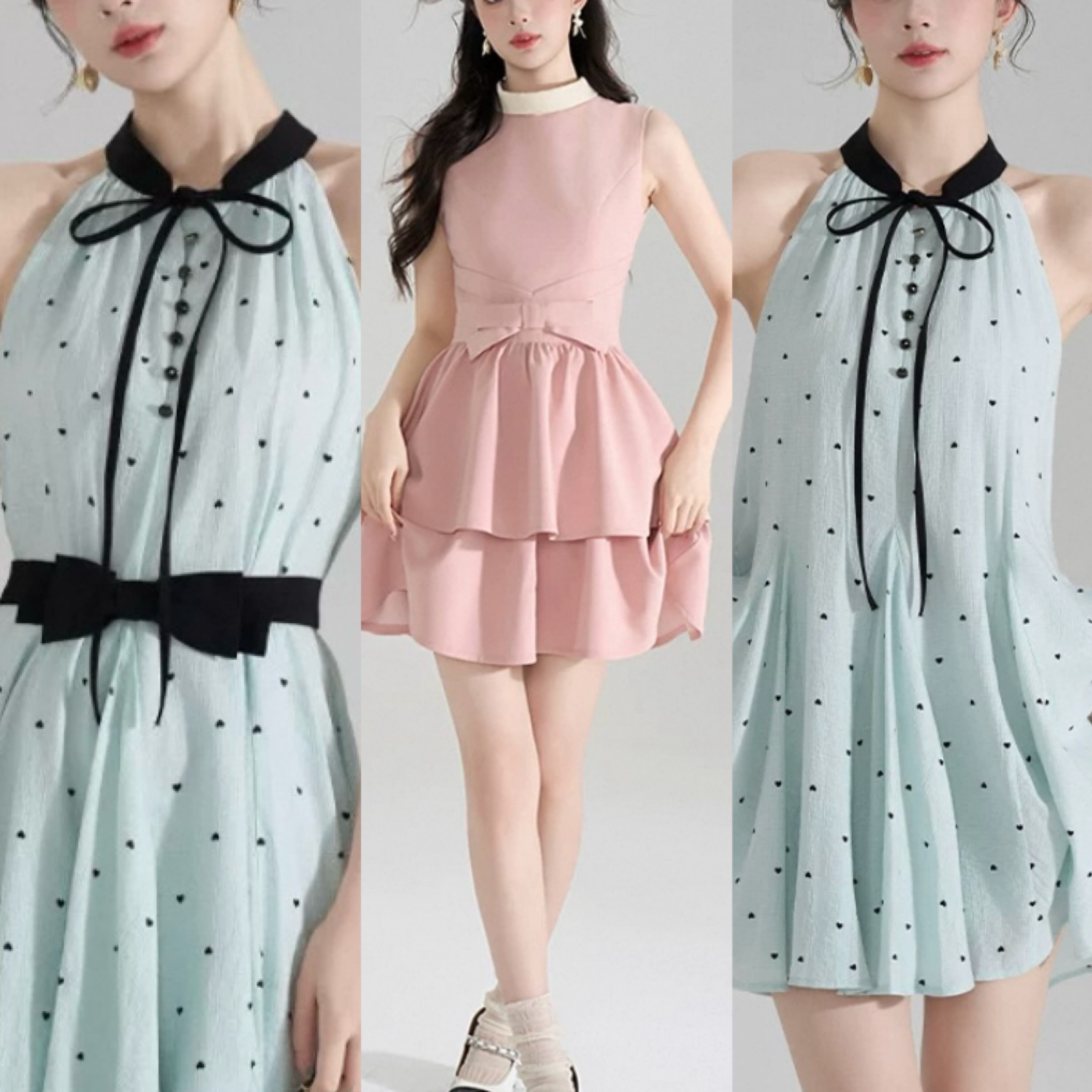 水色、ピンク リボン 水玉 ドット リボン かわいい ワンピース