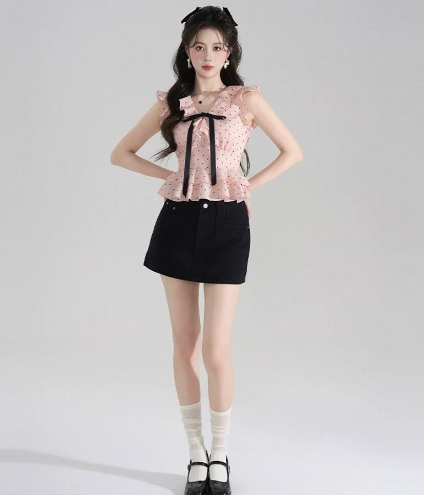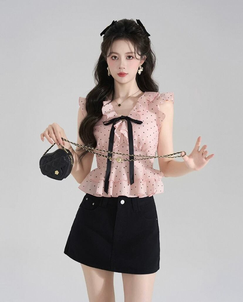 ピンク リボン、かわいい ブラウス、トップス