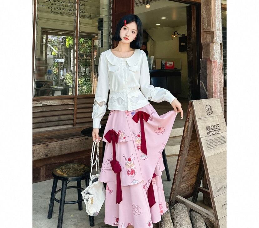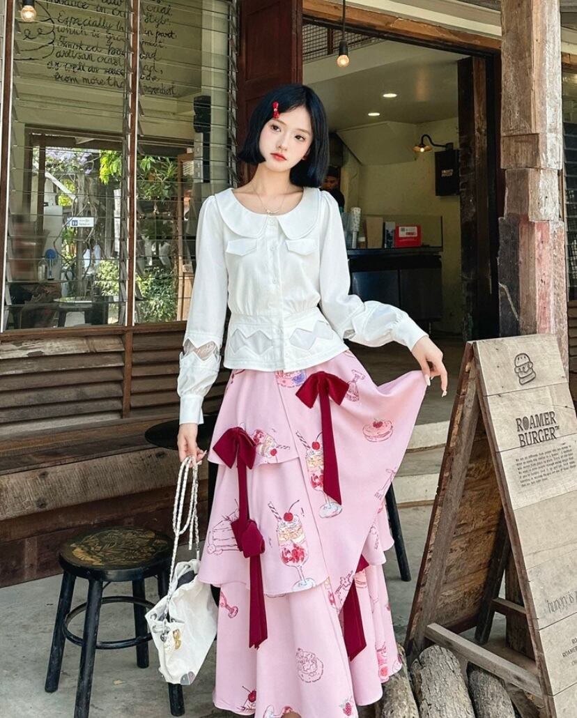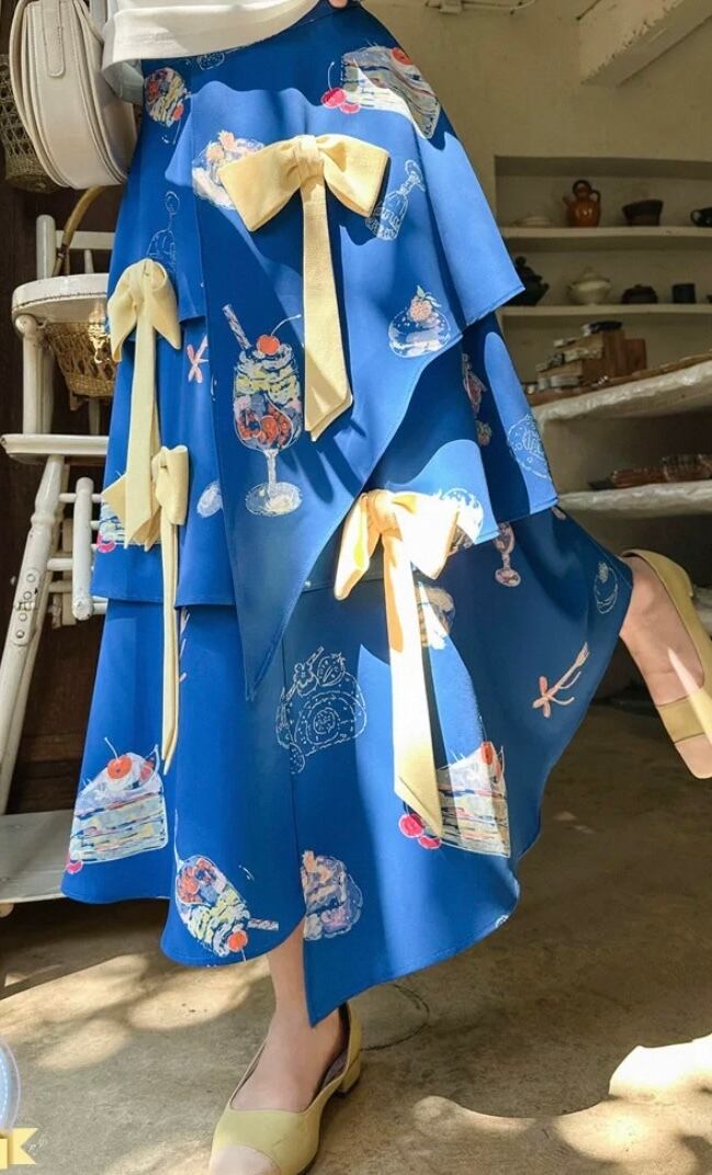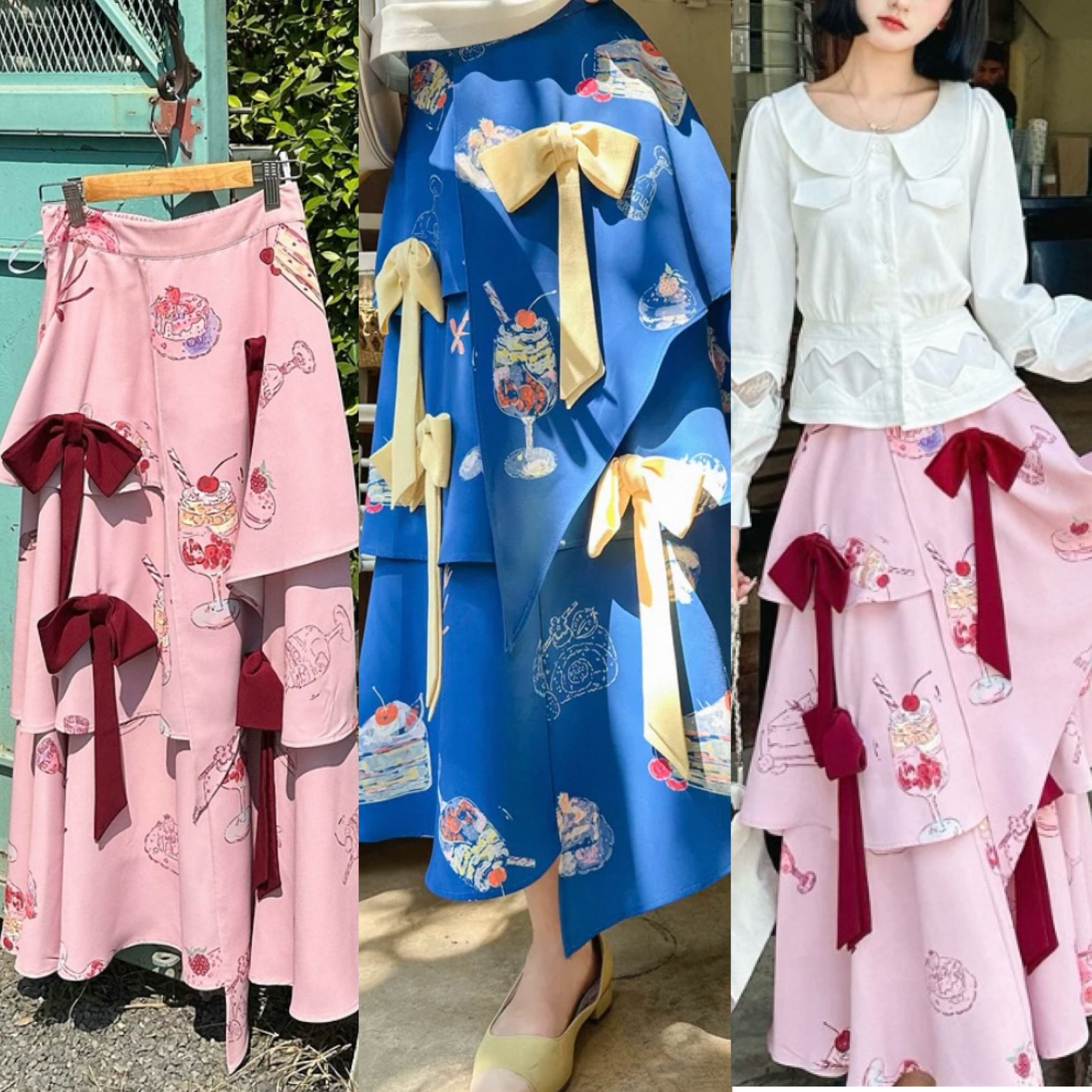 ボトムス、水色、ピンク、赤 リボン スイーツ かわいい パフェ