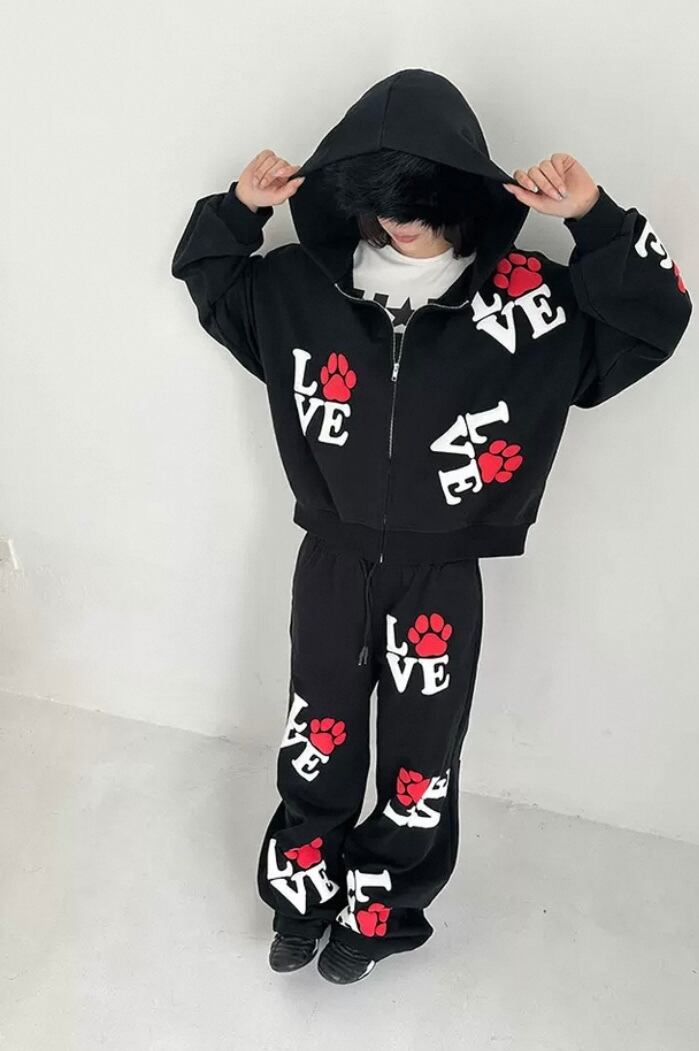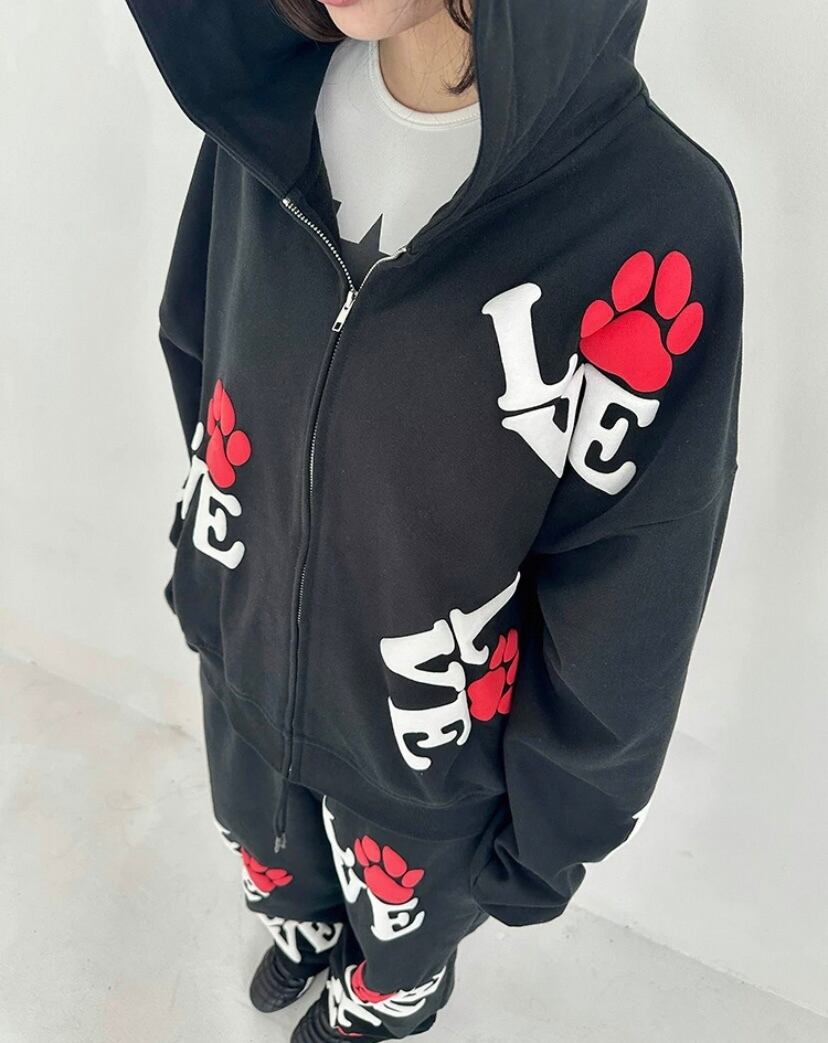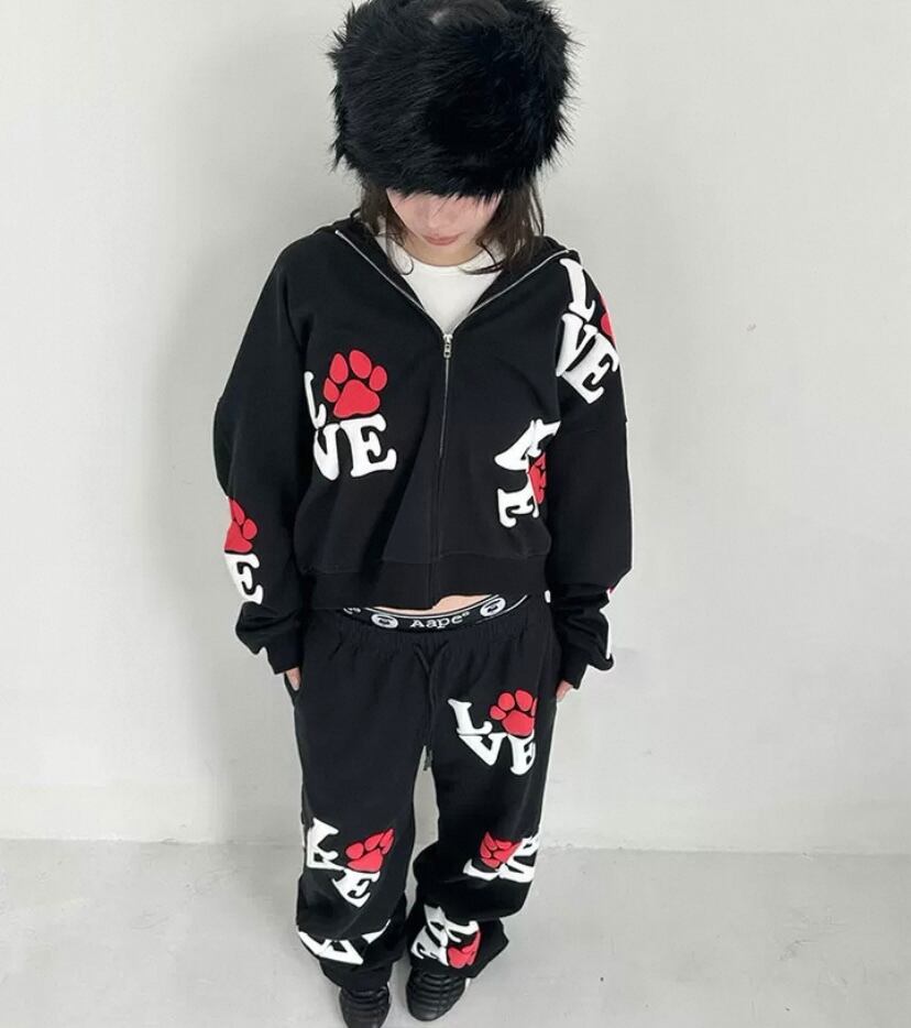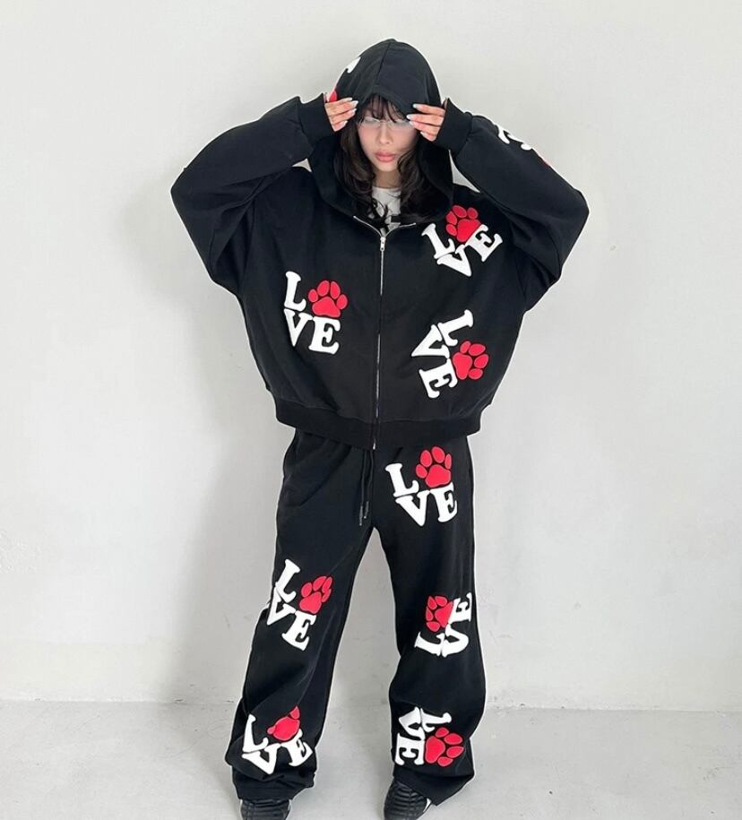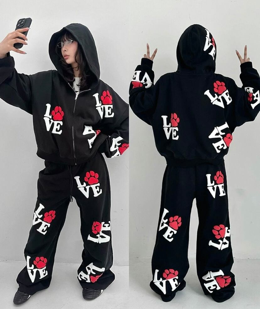 【パーカー】黒 ピンク スウェット パーカー トレーナー 犬 キラキラ ラインストーン