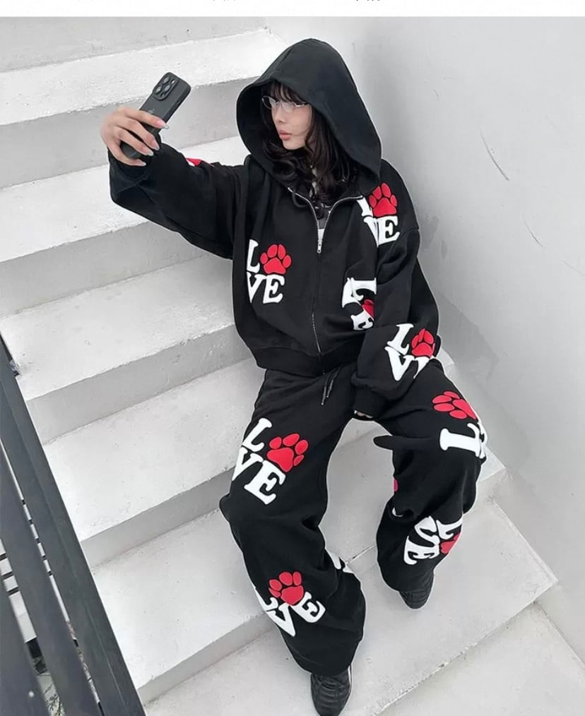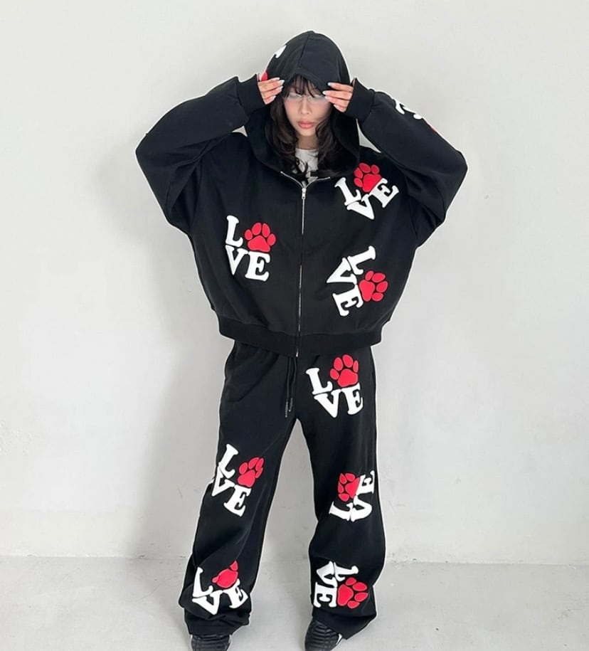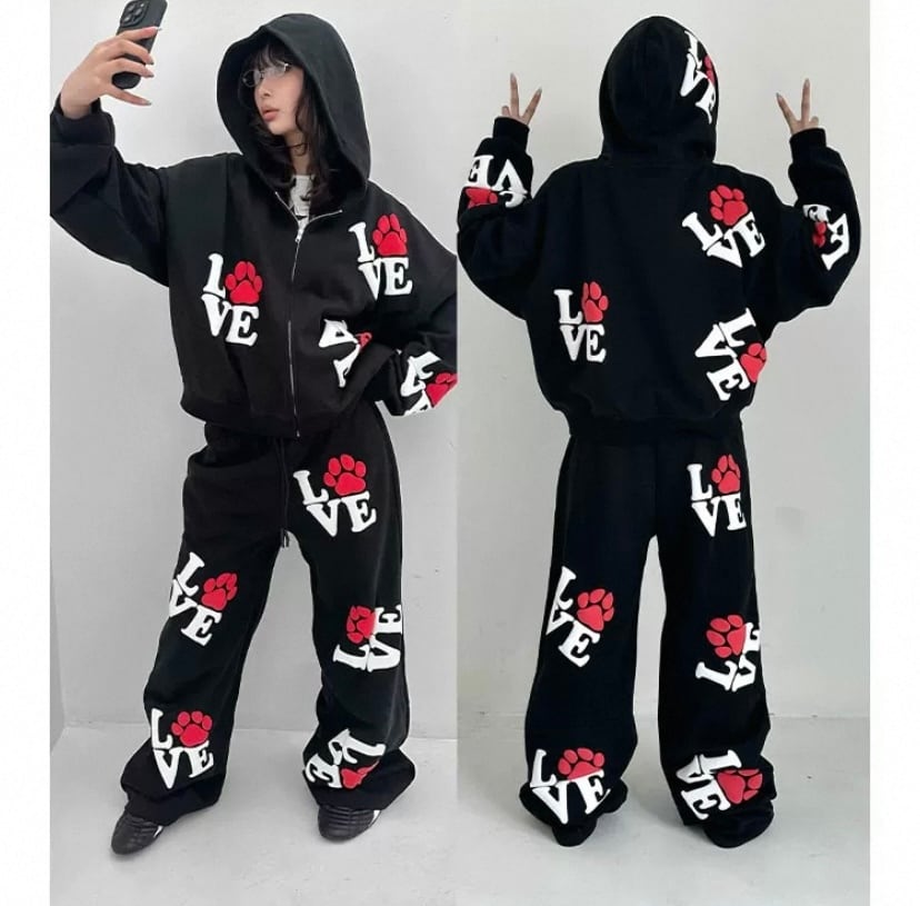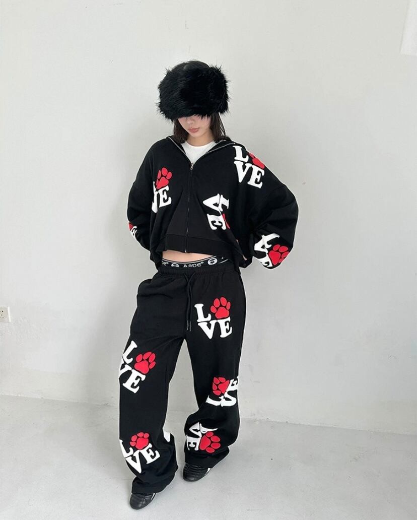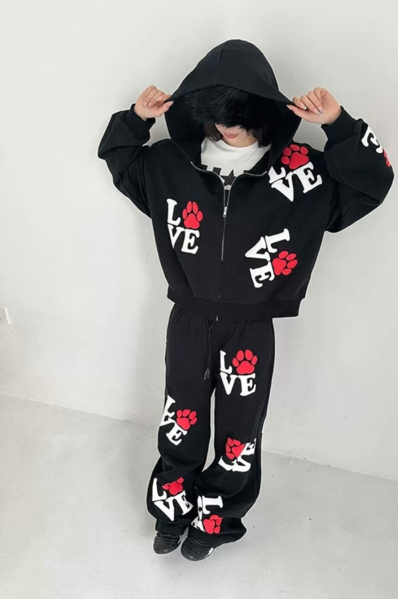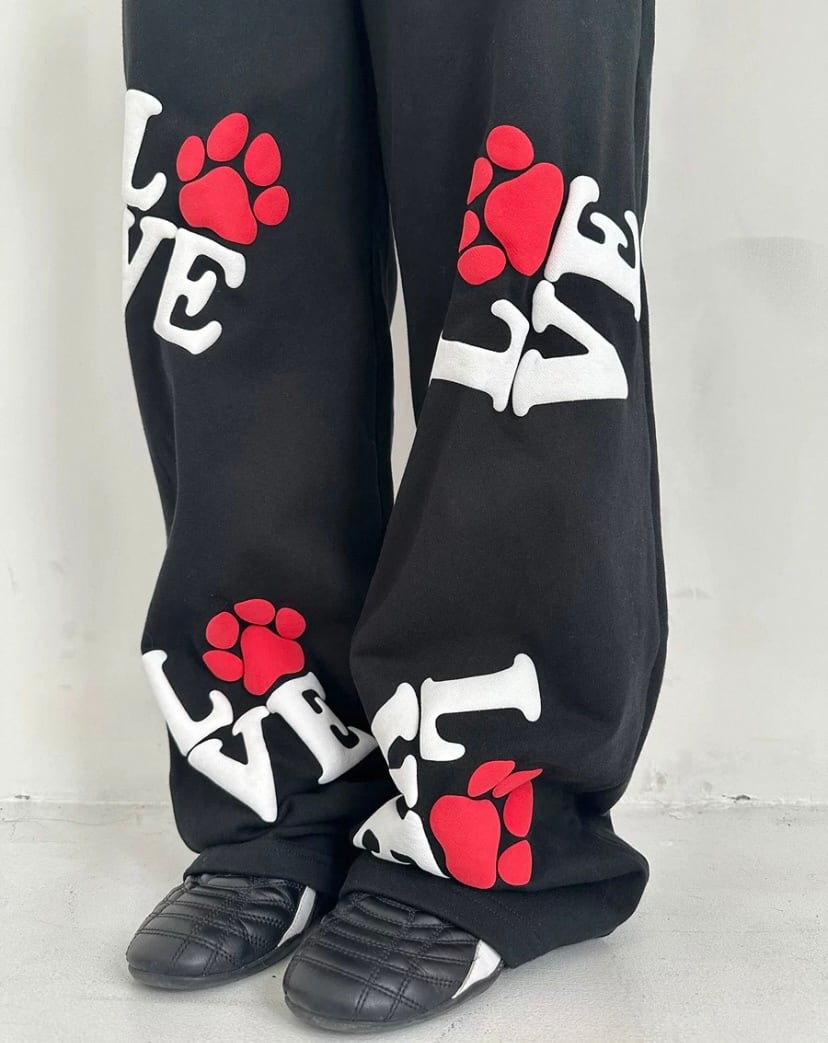 【ボトムス】黒 LOVE ハート ラブ 黒 スウェット パンツ