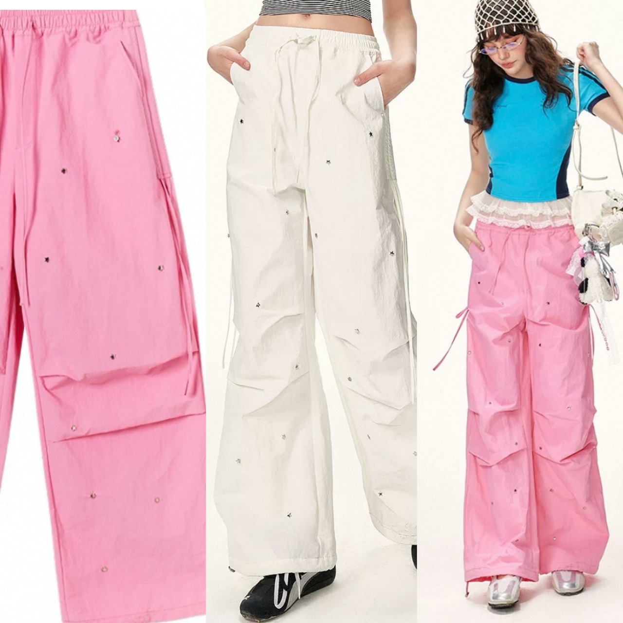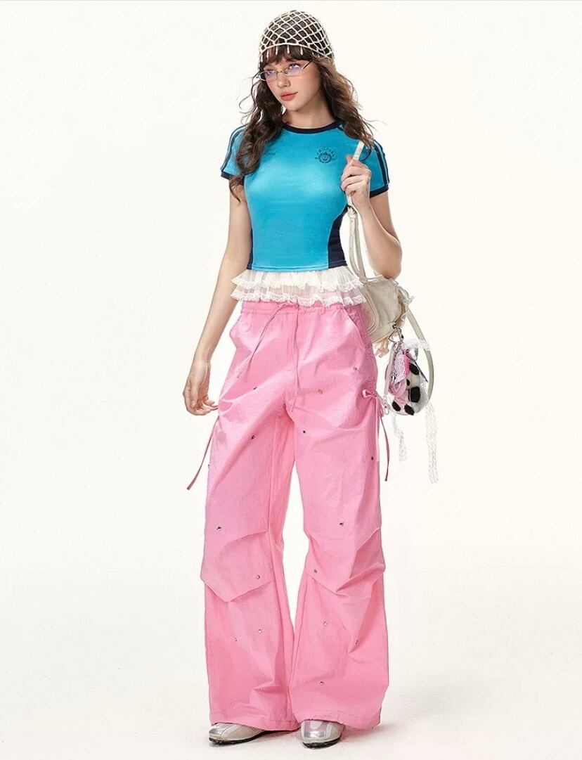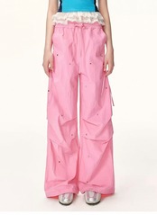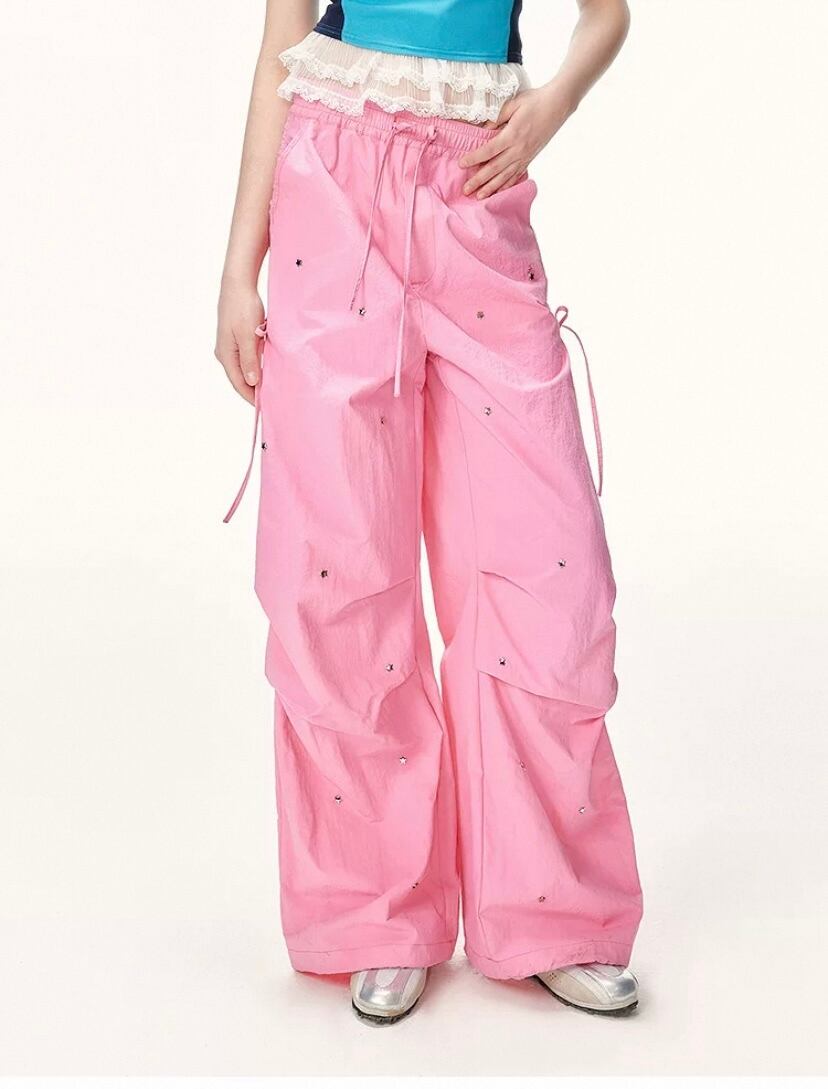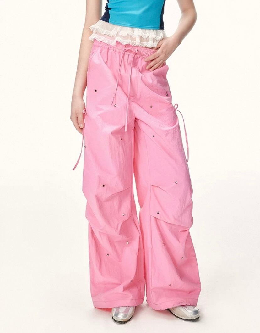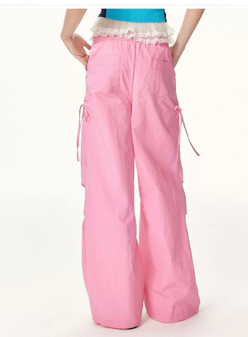 スウェット パンツ、ボトムス、白、ピンク カジュアル