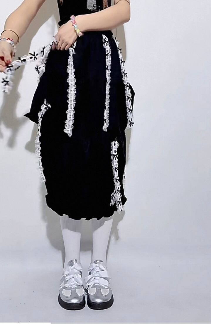 【複数way】スカート カスタム リボン、かわいい ミニスカート バルーンスカート、ロングスカート ボトムス