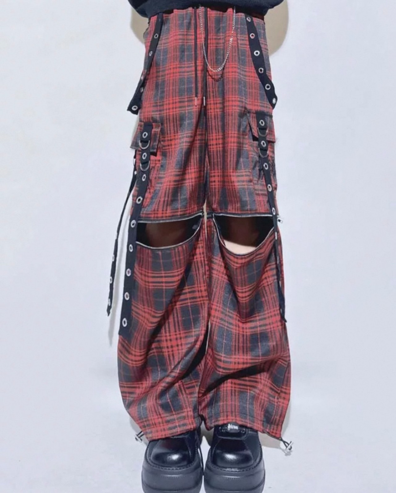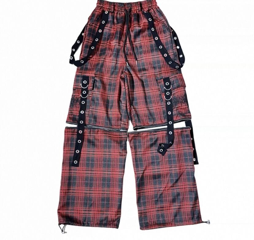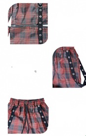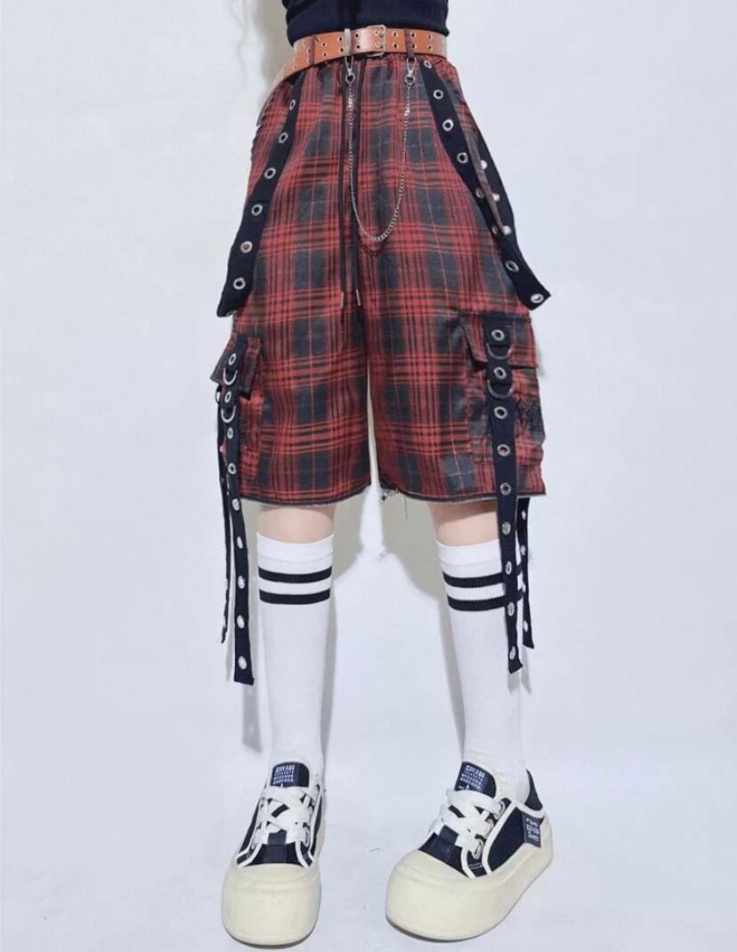 【2way】ネイビー、赤 チェック、ボトムス パンツ、ハーフパンツ、ズボン