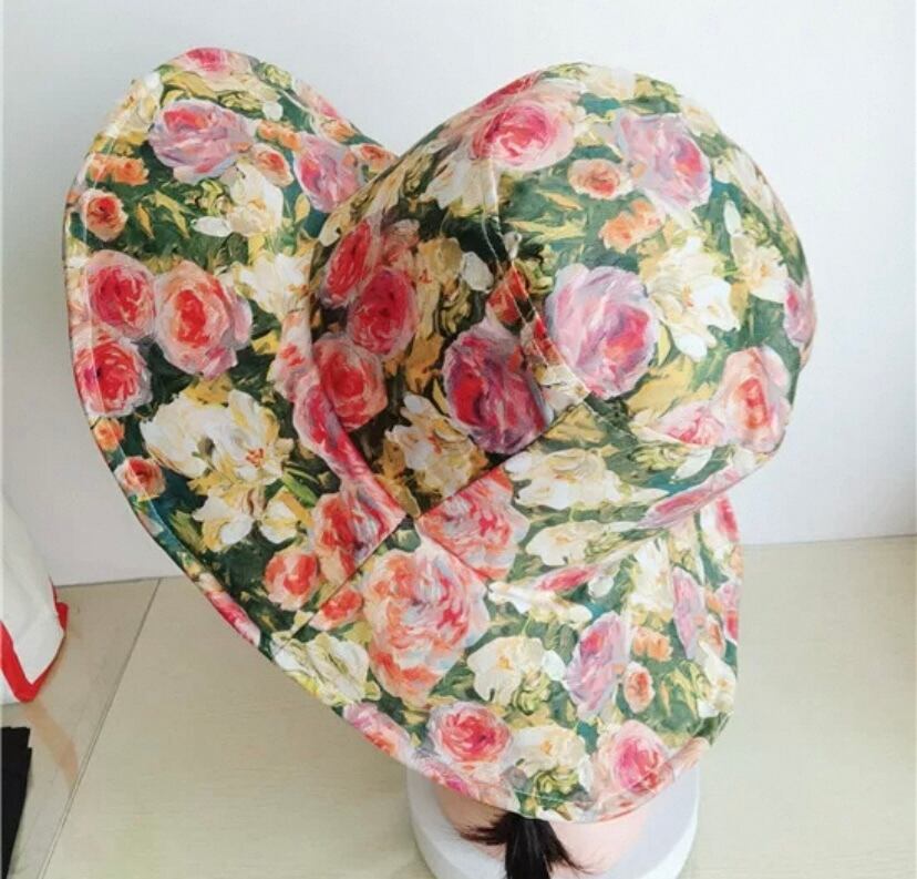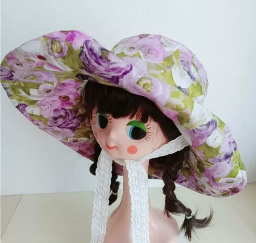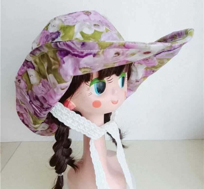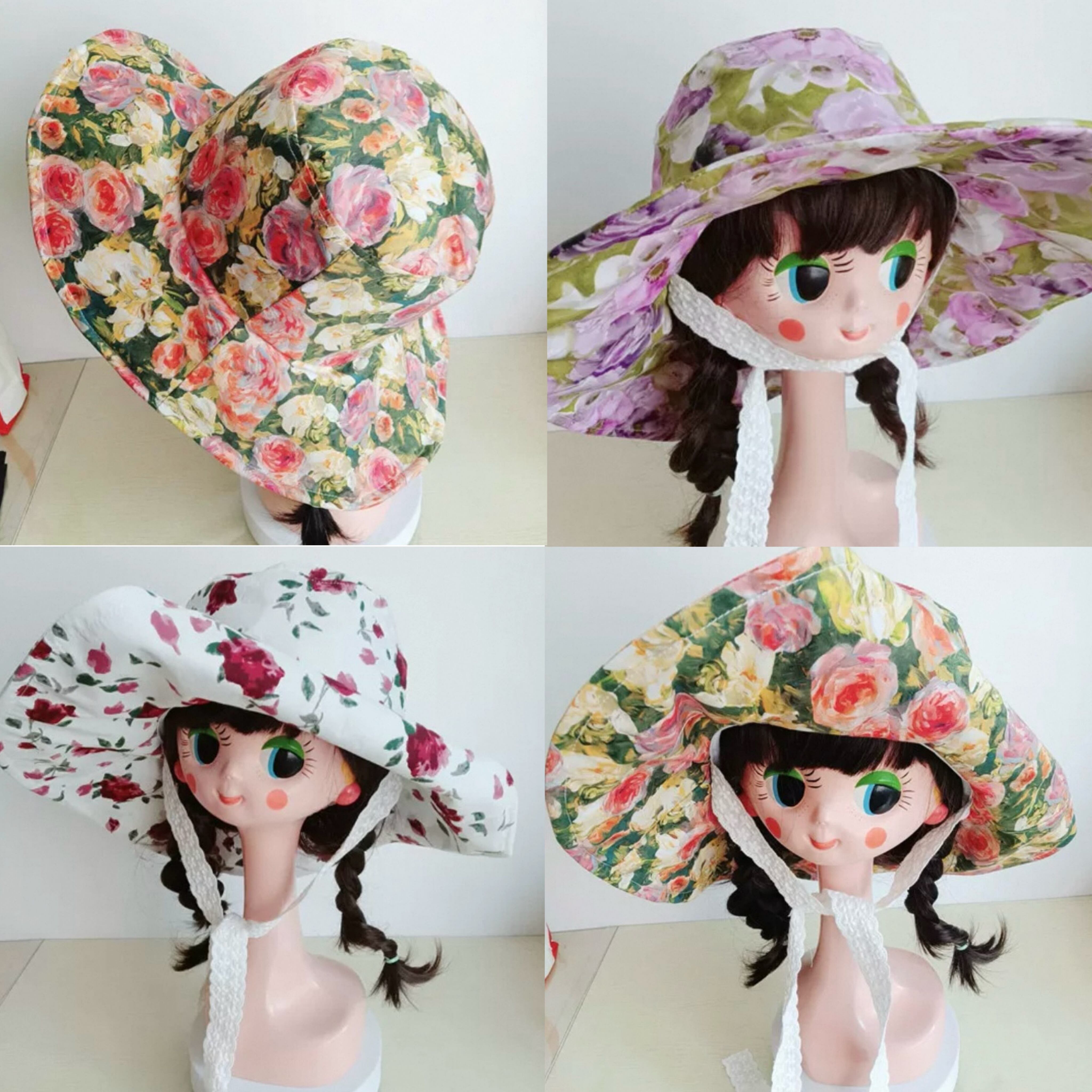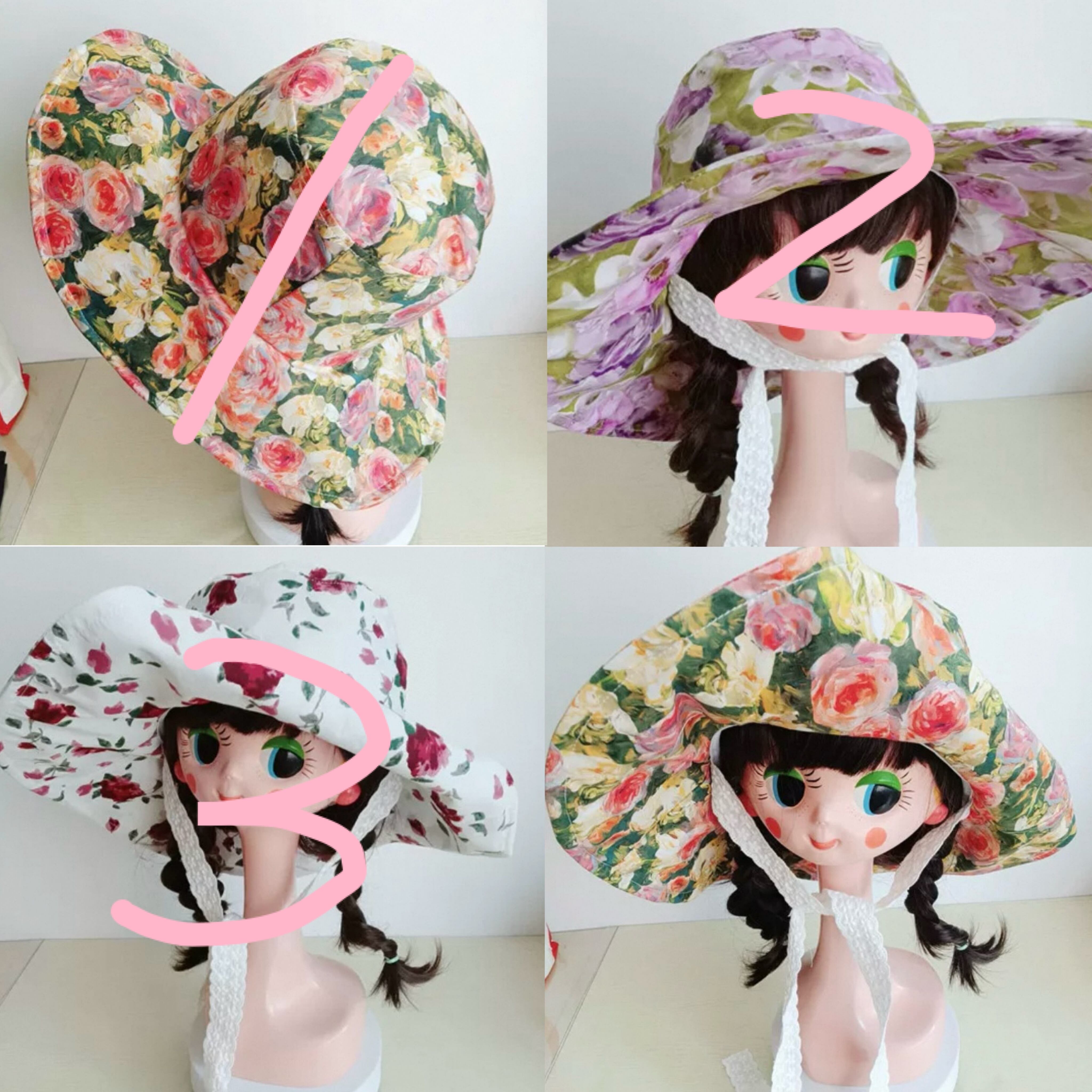 白、紫 緑、赤 花柄 フラワー 帽子