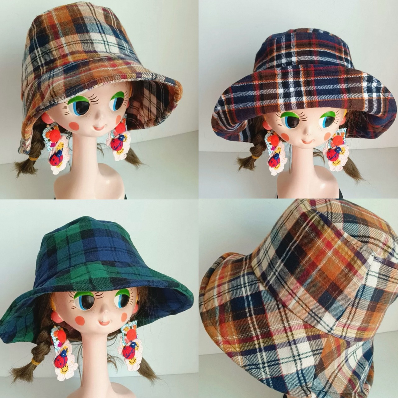 ネイビー 茶色 ベージュ チェック 茶色 帽子