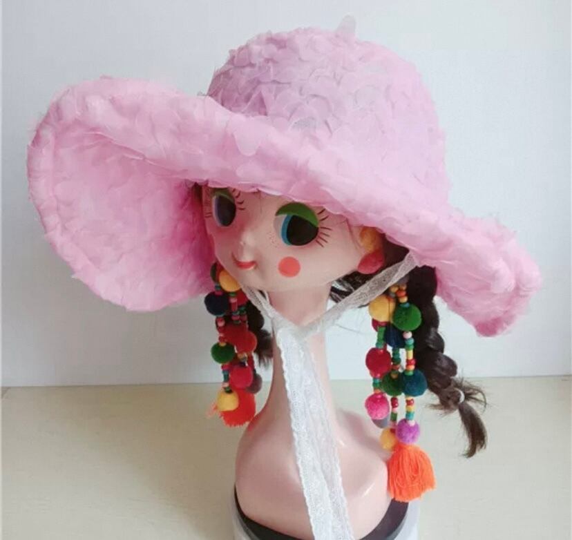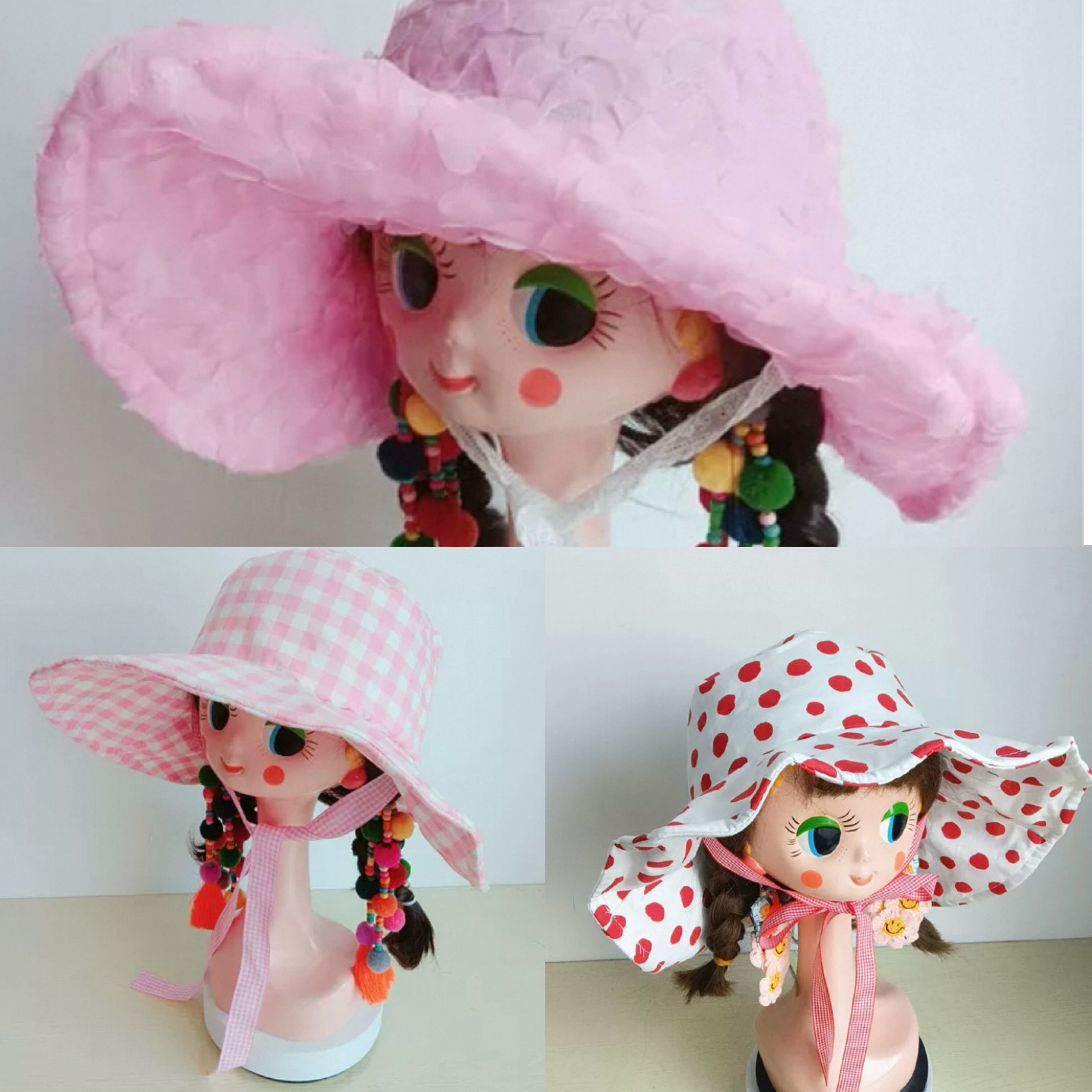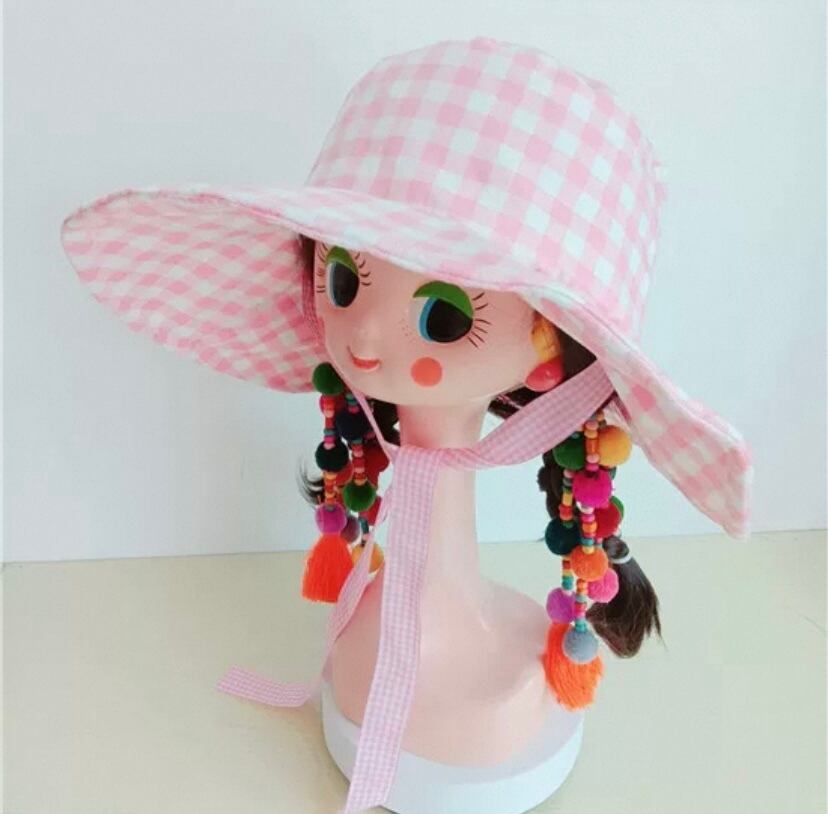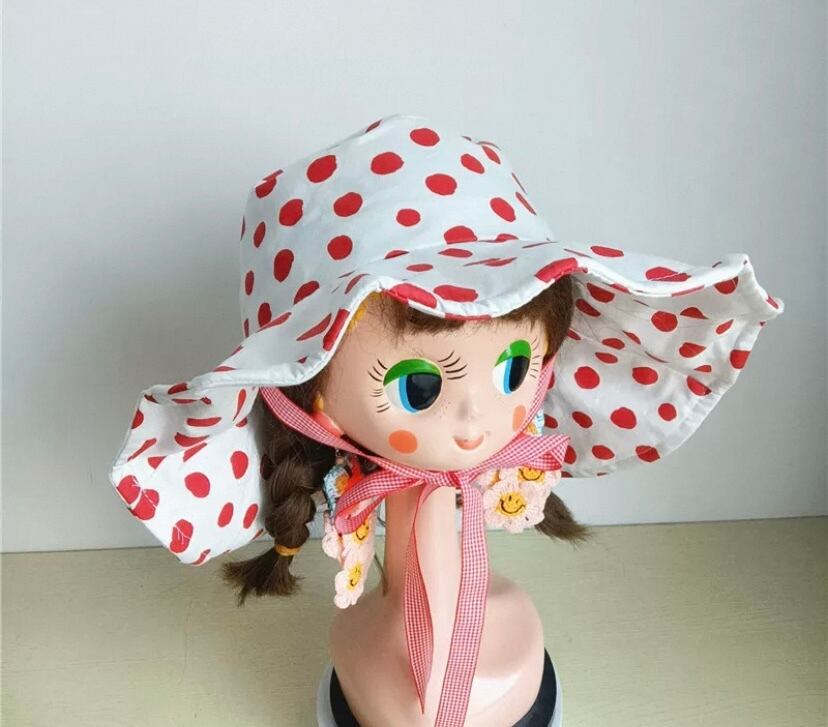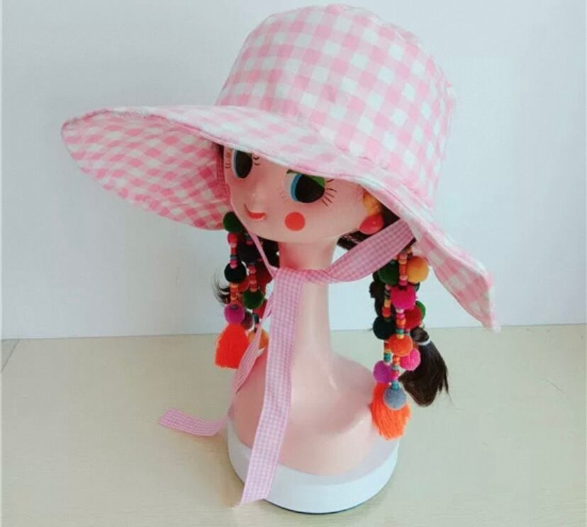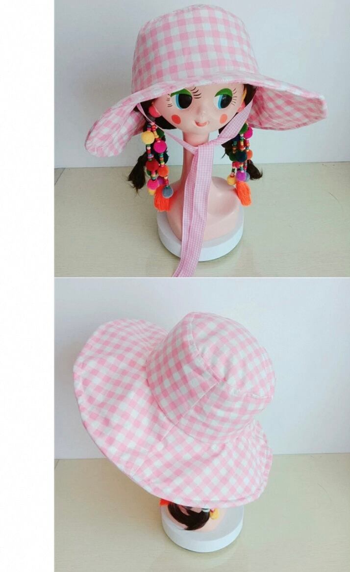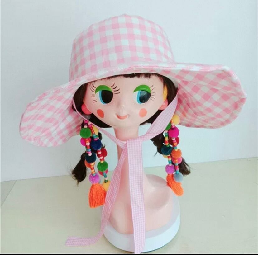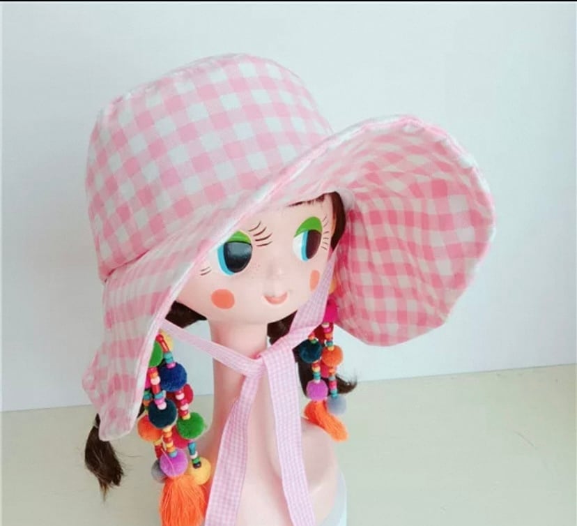 ピンク チェック リボン 水玉、赤 帽子 子