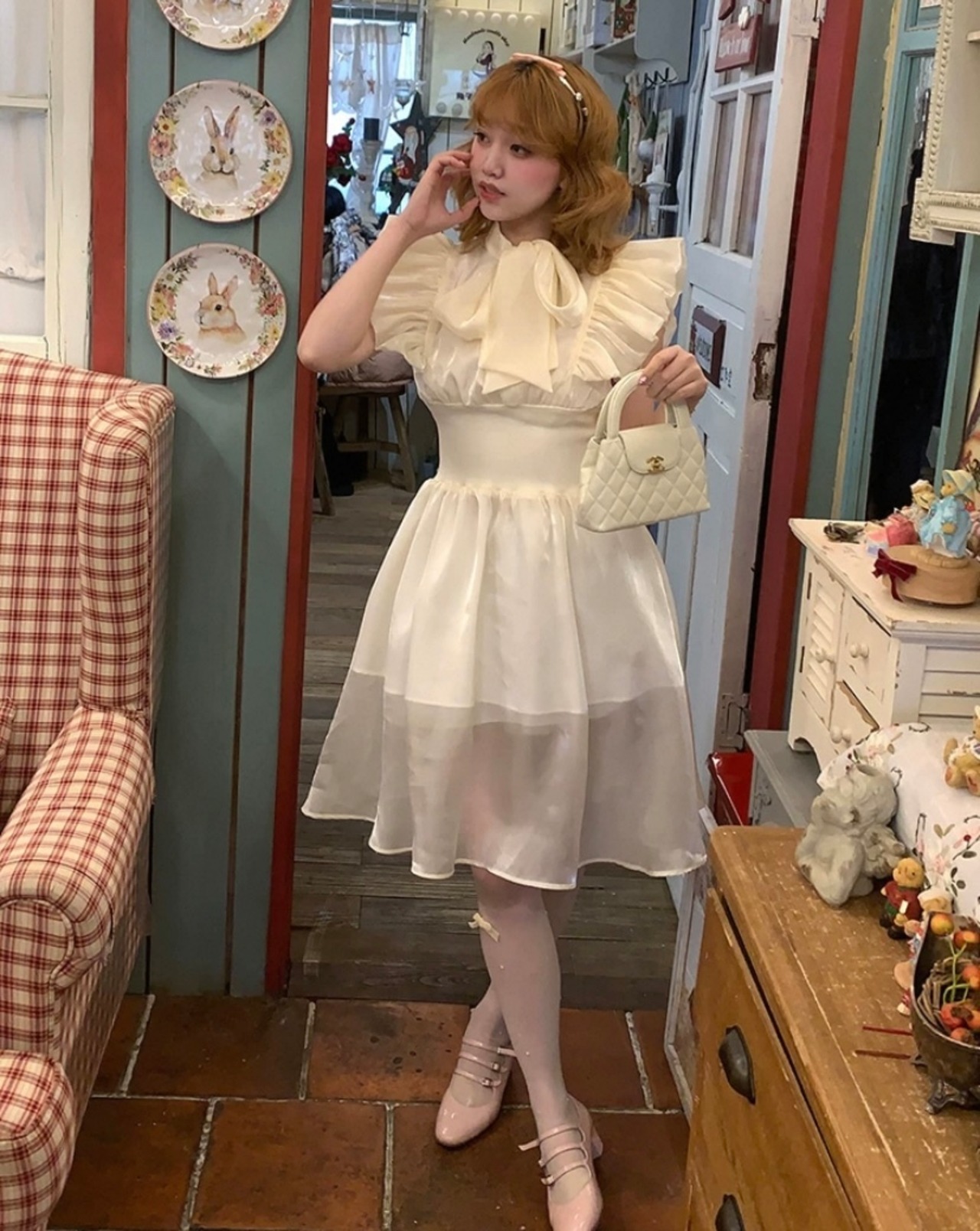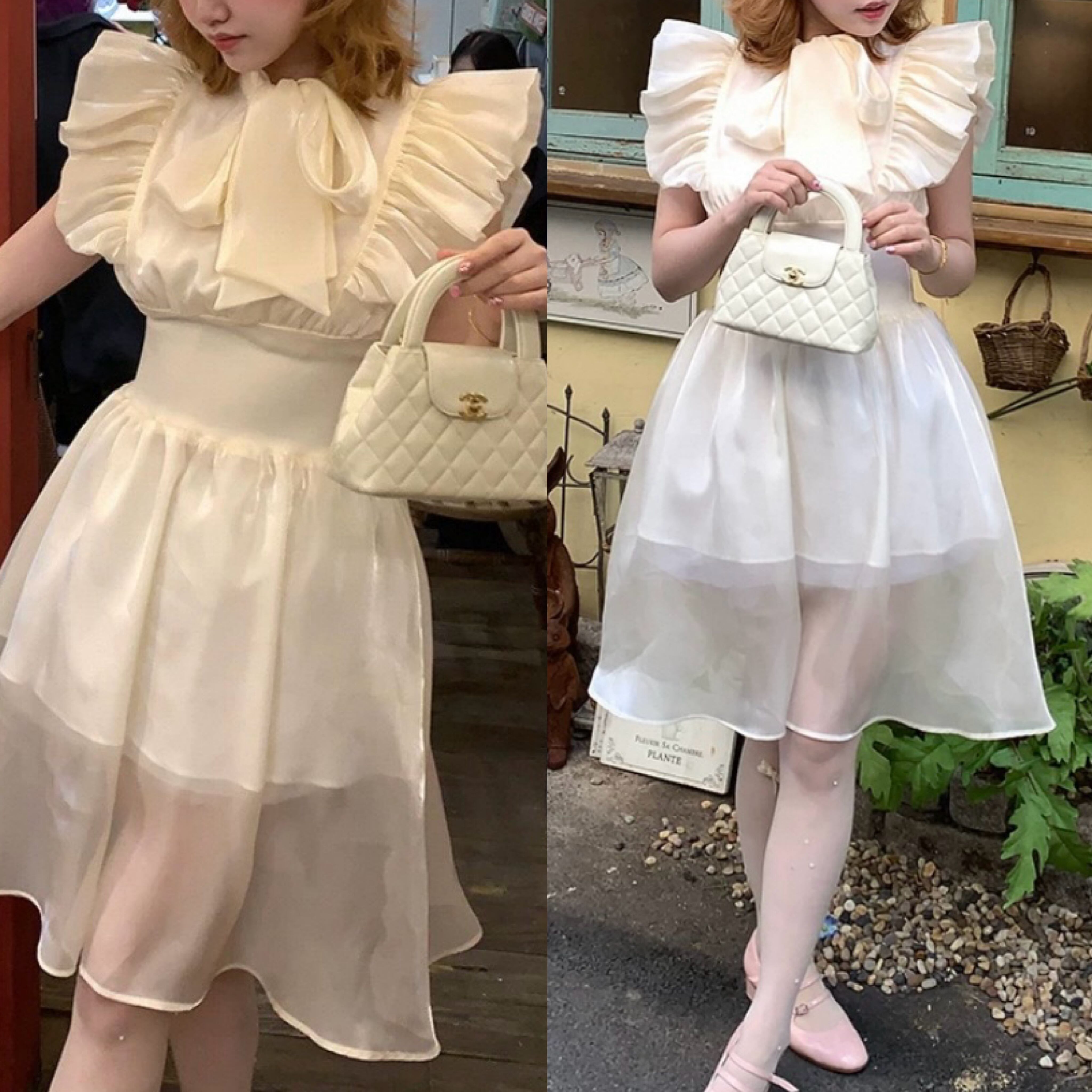 白 かわいい ブラウス、リボン ワンピース エレガント