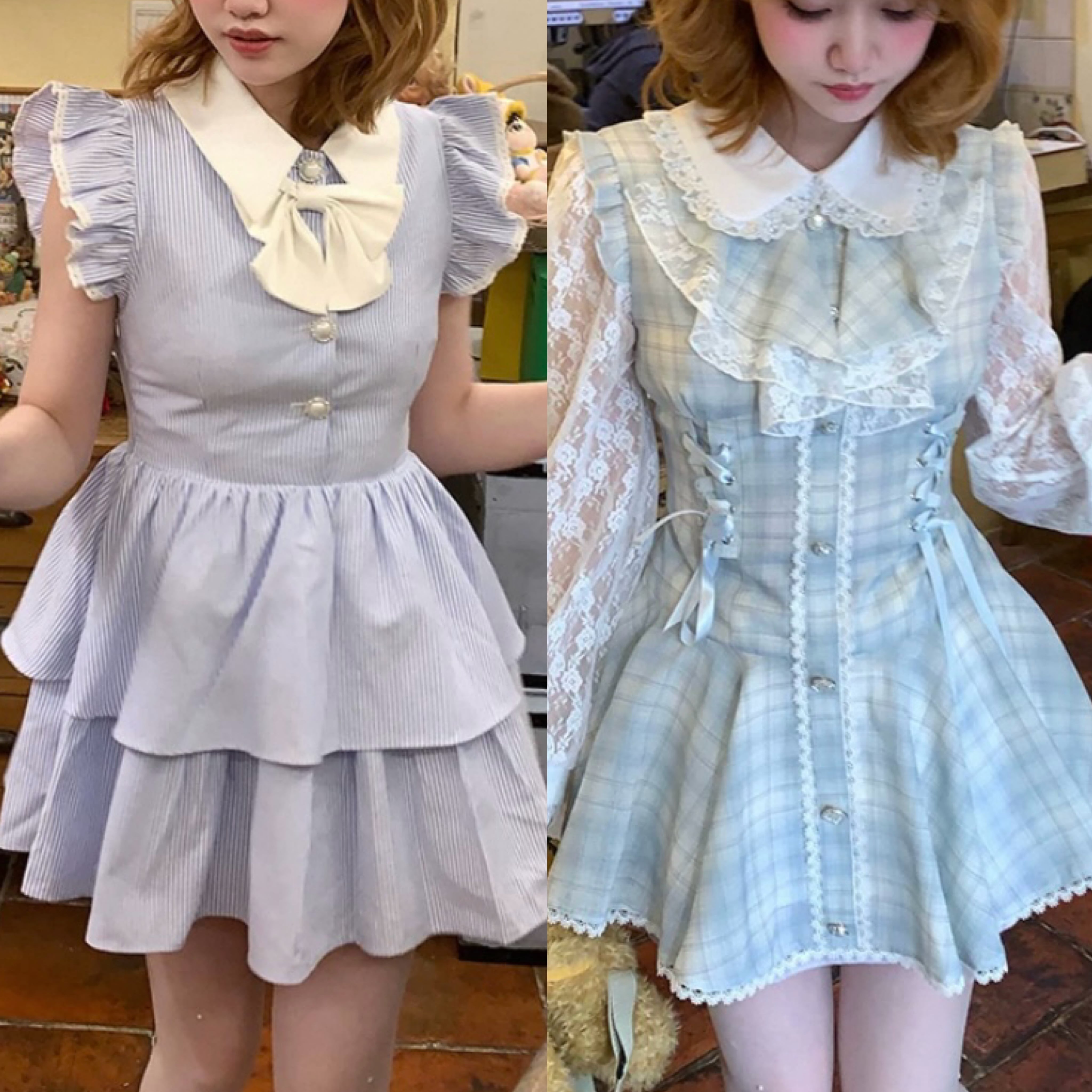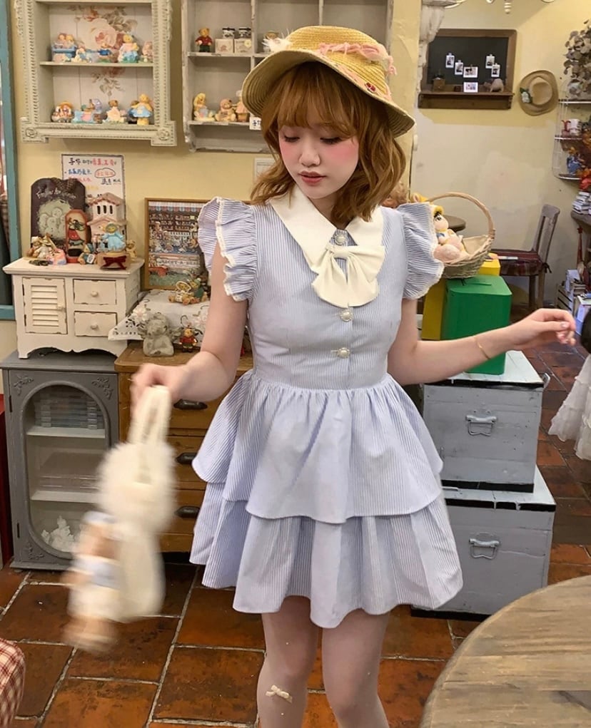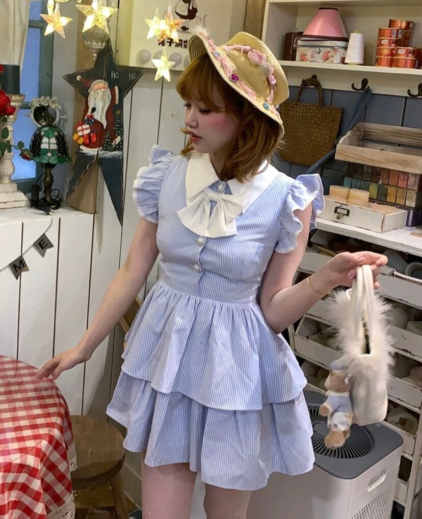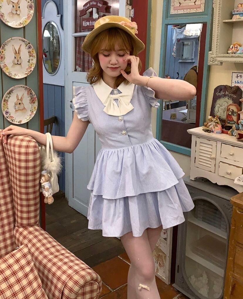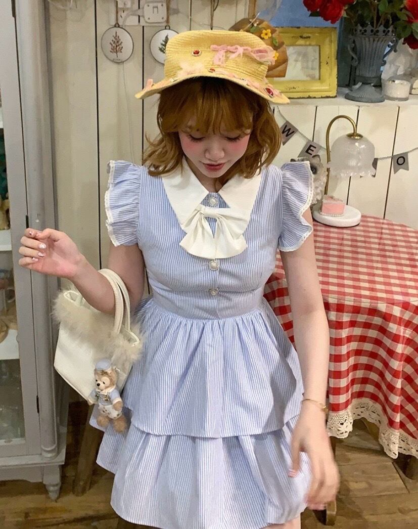 水色 さわやか ワンピース、ブラウス、トップス