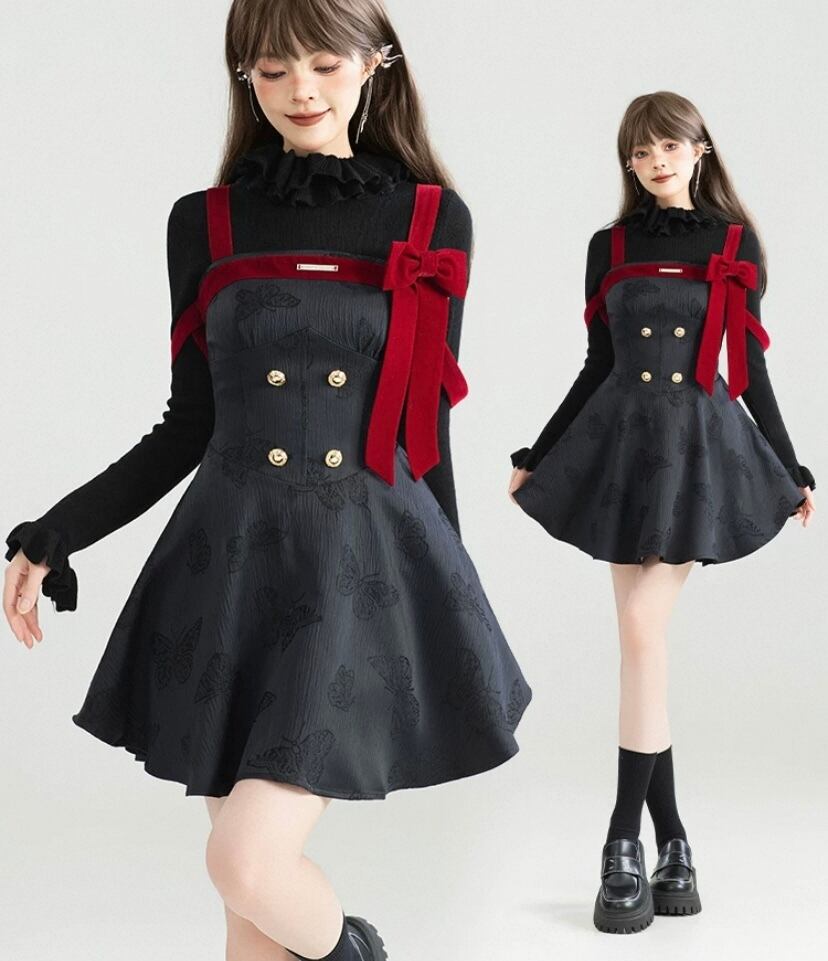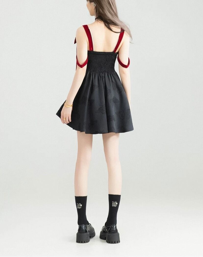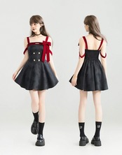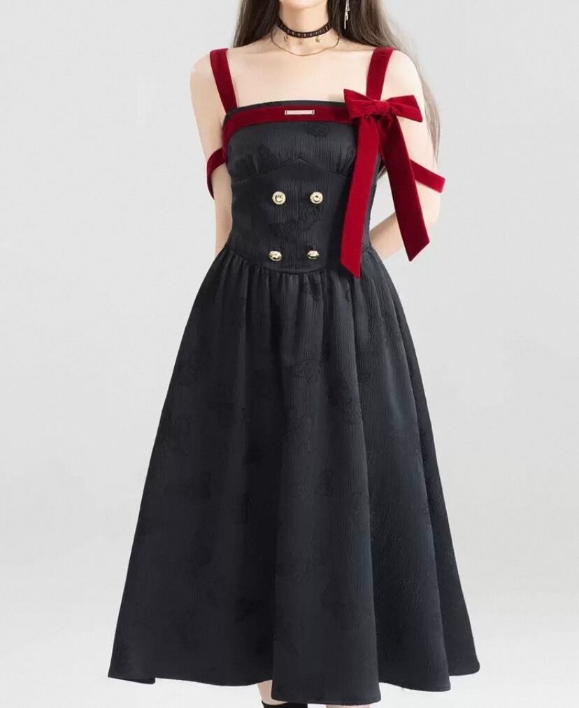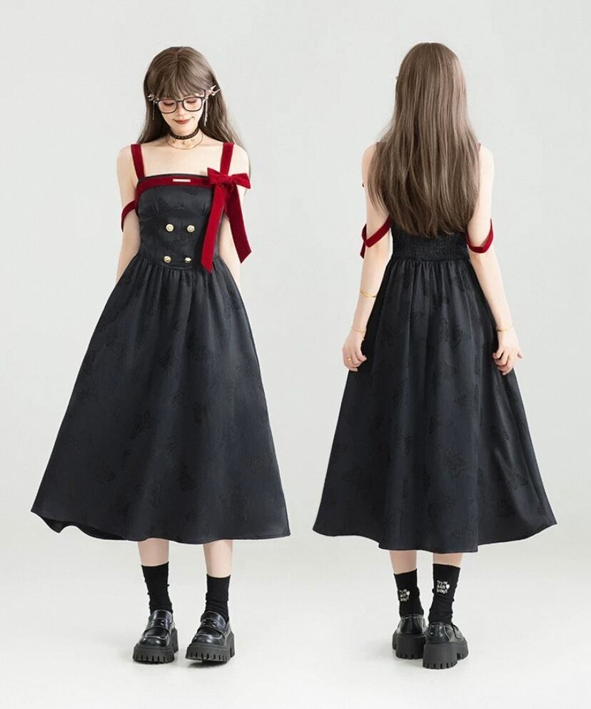 黒 キャミソール、赤 リボン ワンピース かわいい