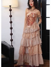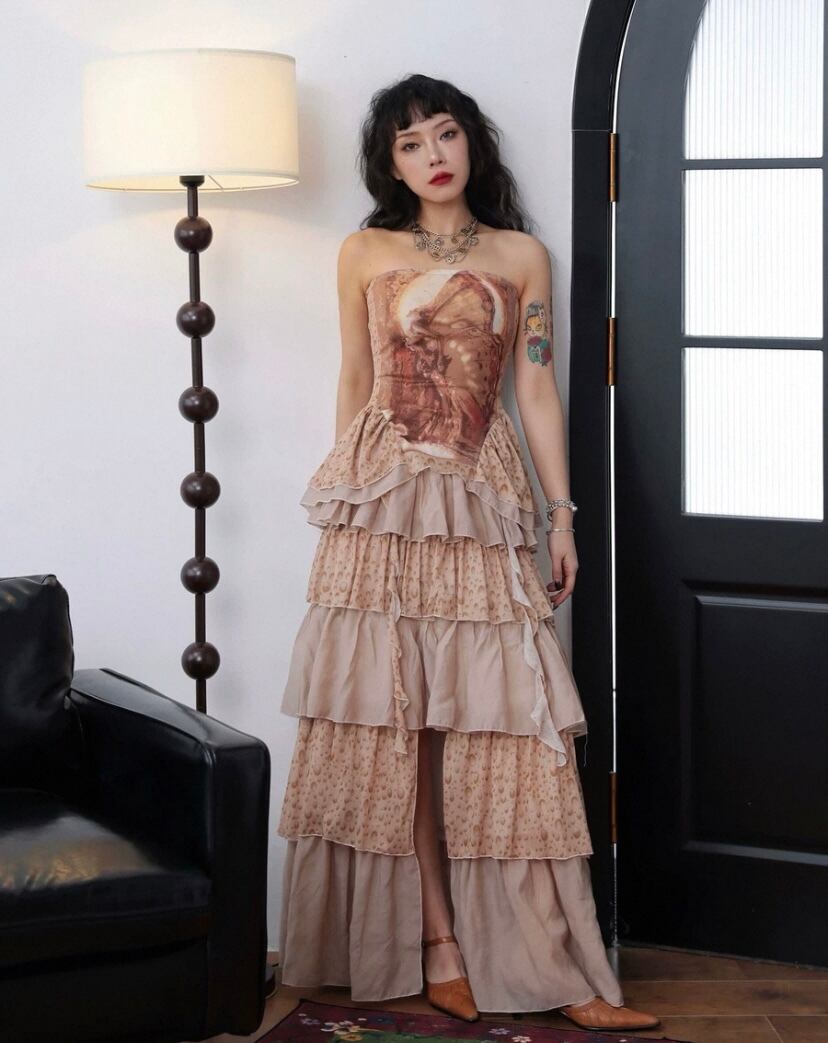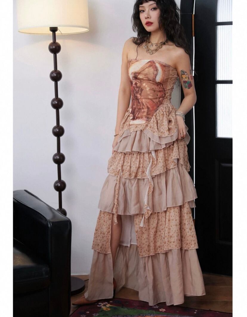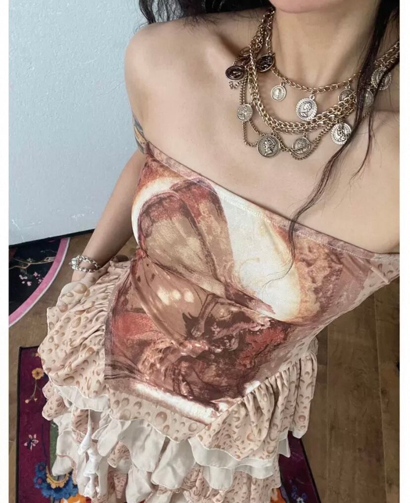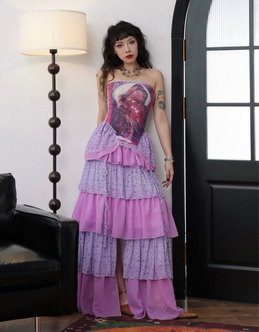 【セットアップ】ベージュ、紫 ワンピース ロング スカート ベアトップ チュニック
