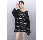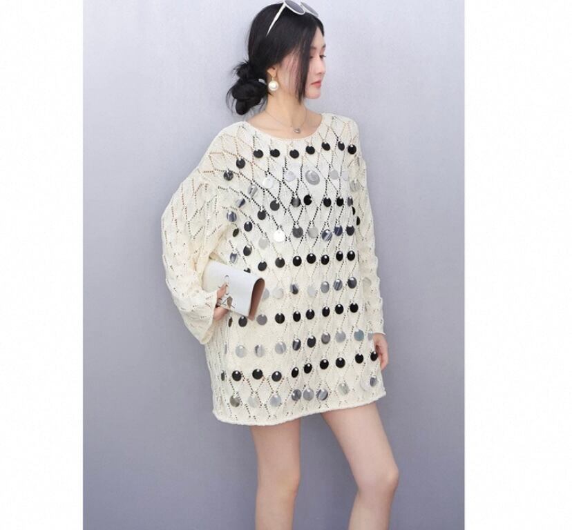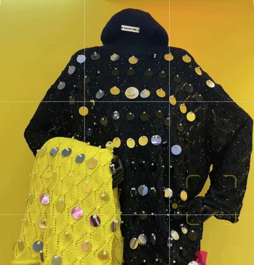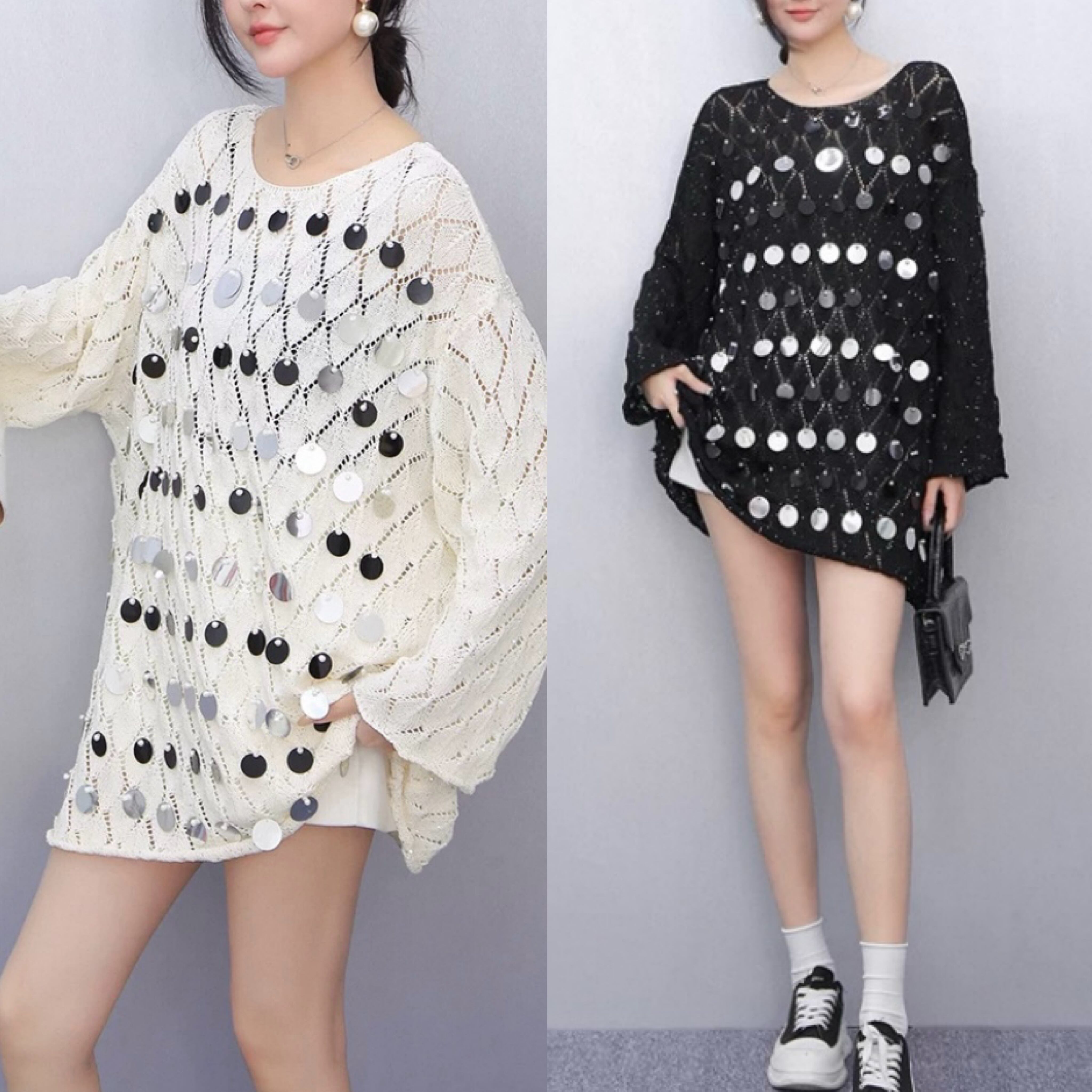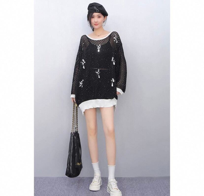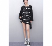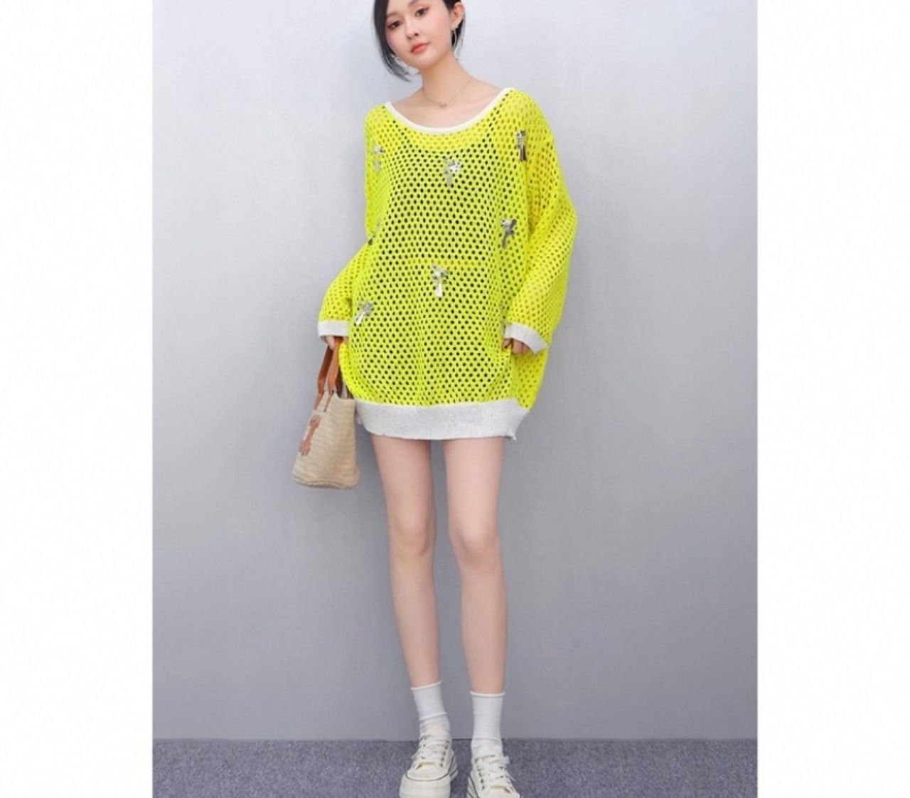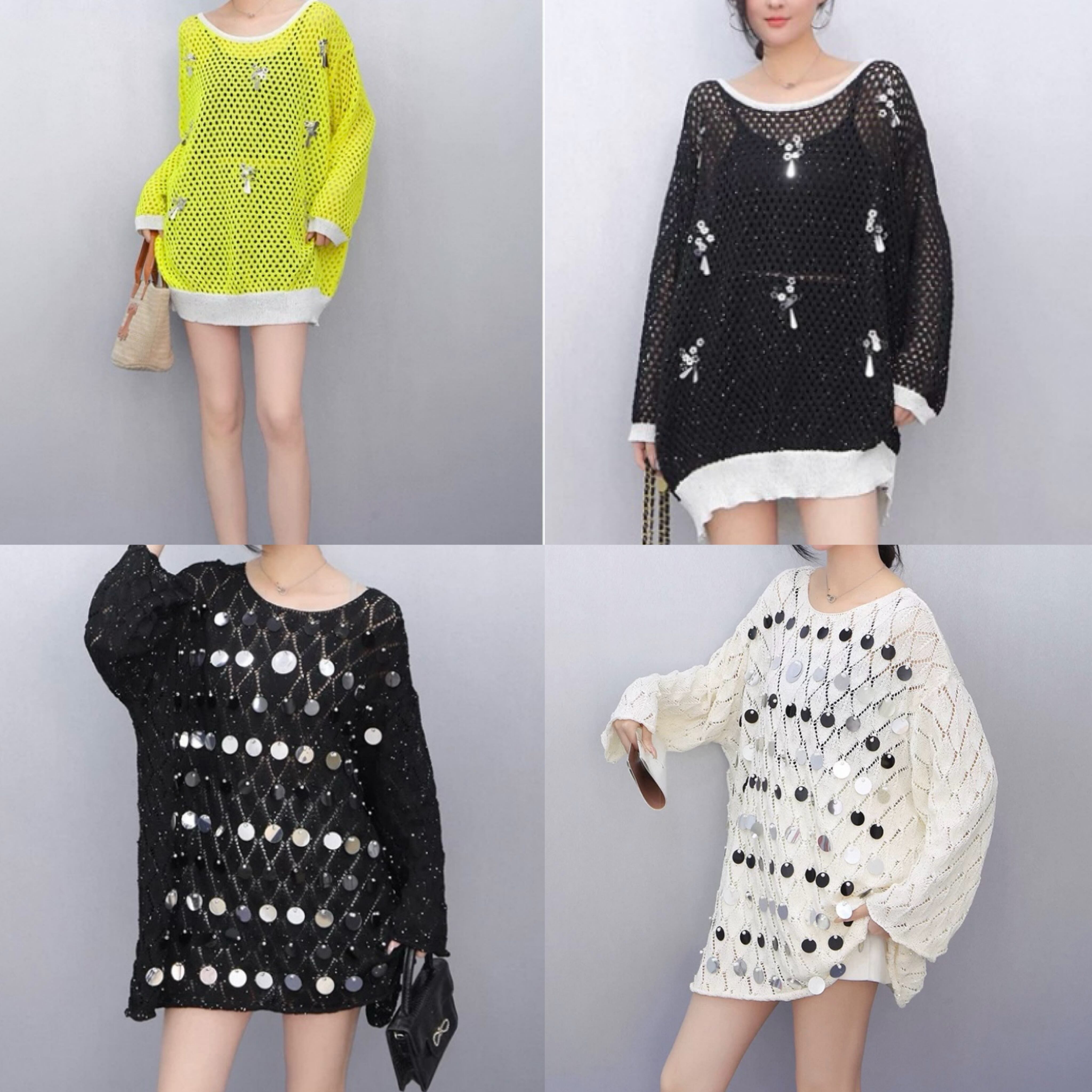 トップス 白 黒 カジュアル あみあみ、メッシュ 黄色