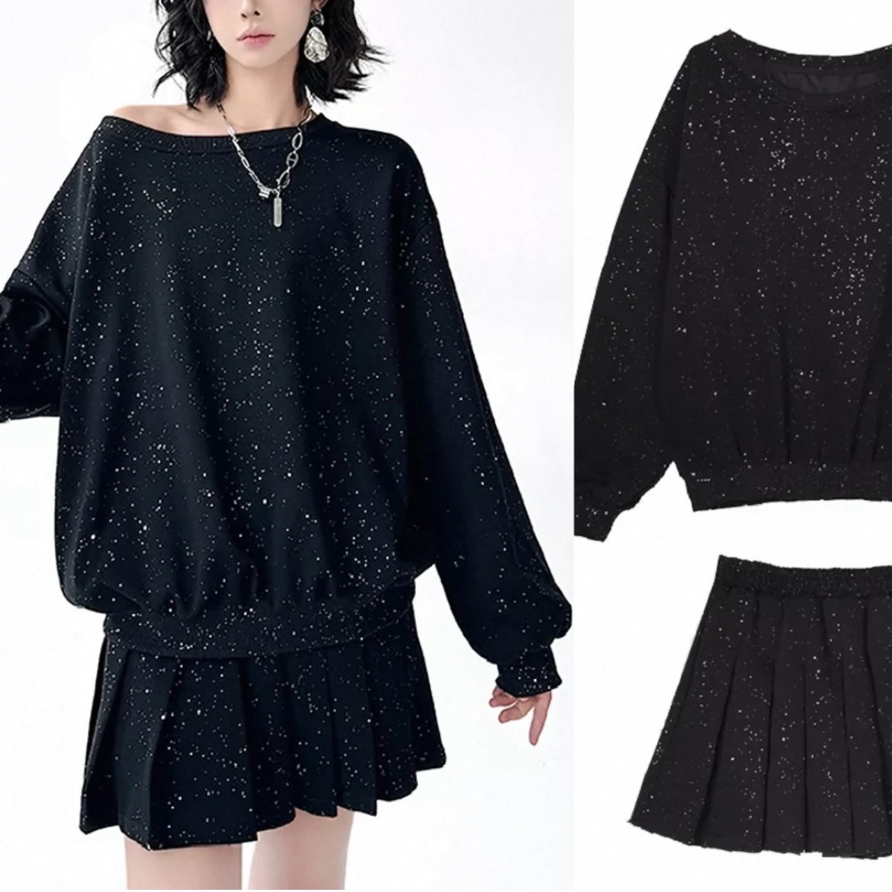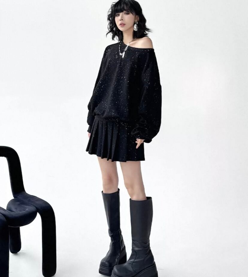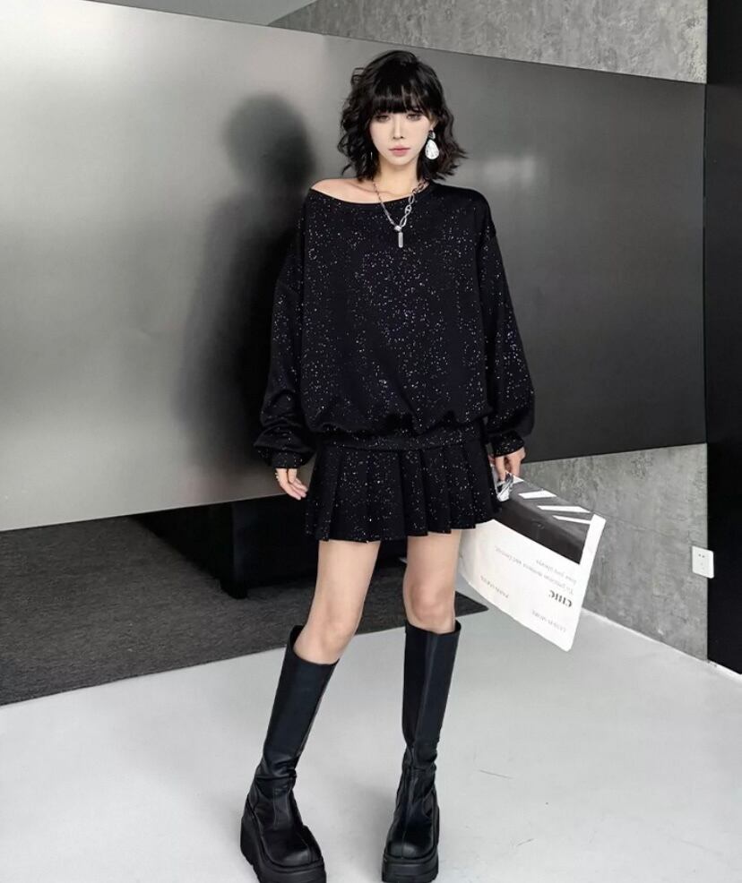 【セットアップ】黒 ミニスカート トレーナー XL ツーピース