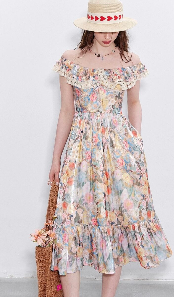 グラデーション オフショルダー ワンピース ベージュ 黄色