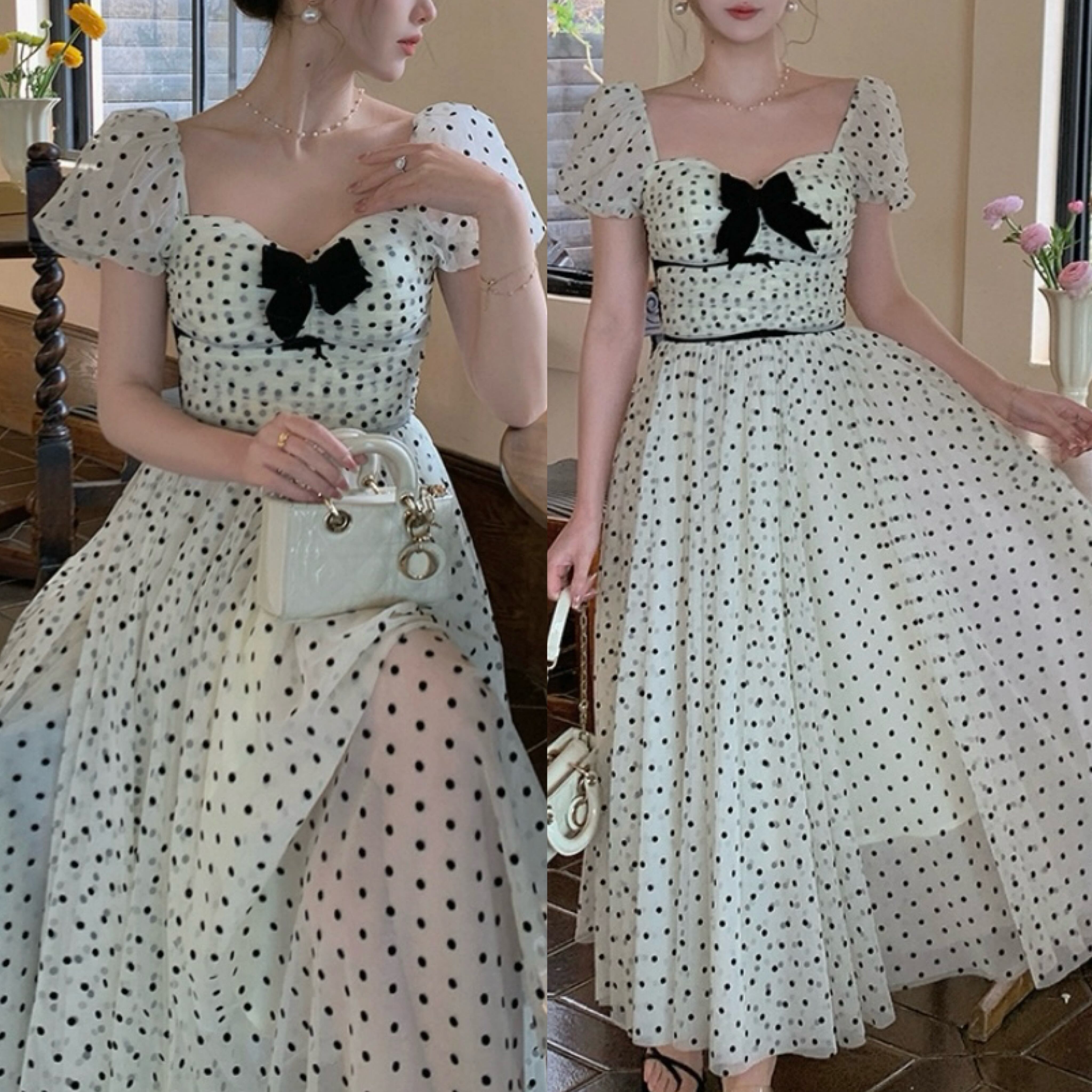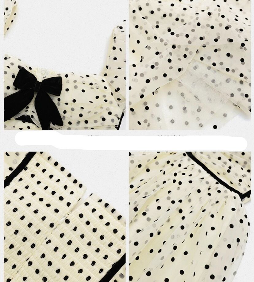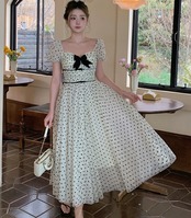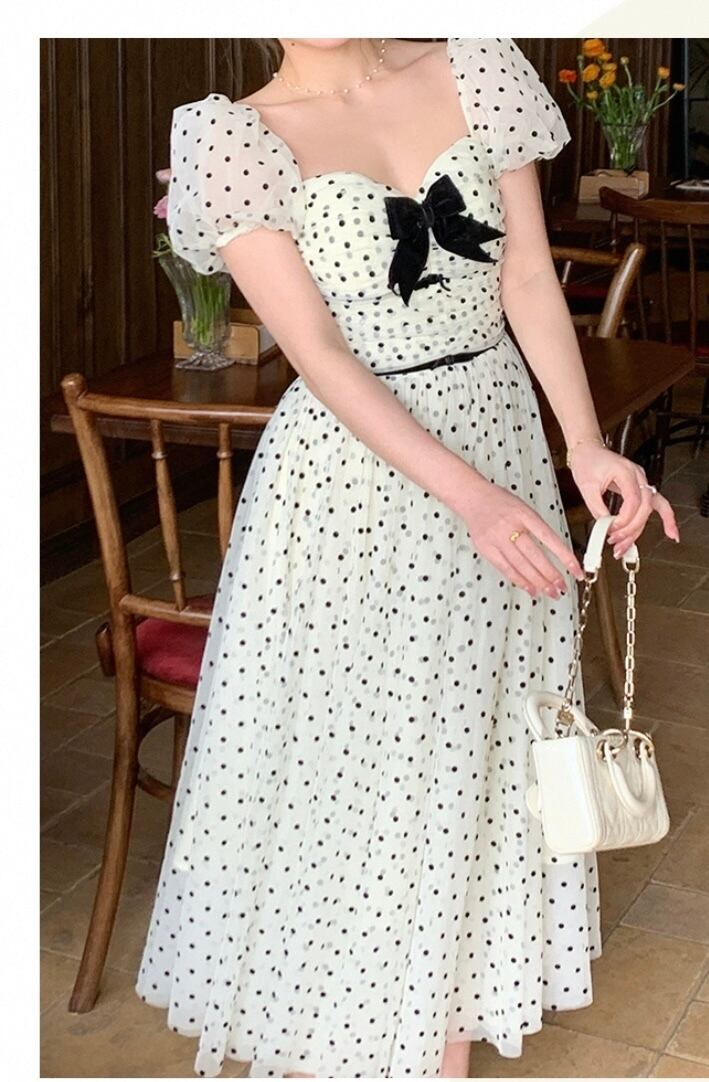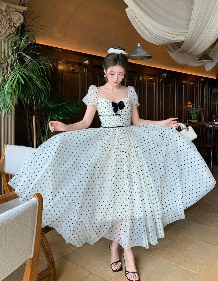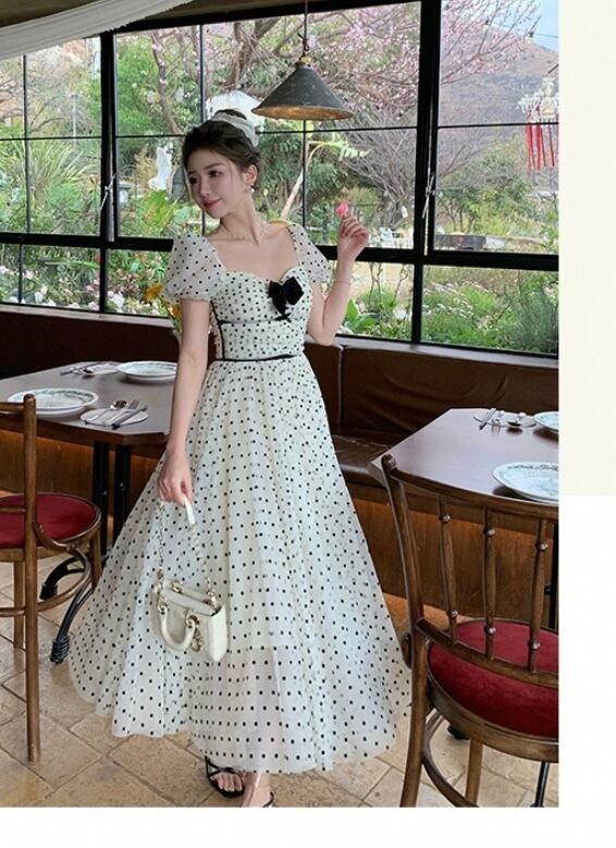 白 黒 水玉 ドット リボン ワンピース ドレス かわいい XL