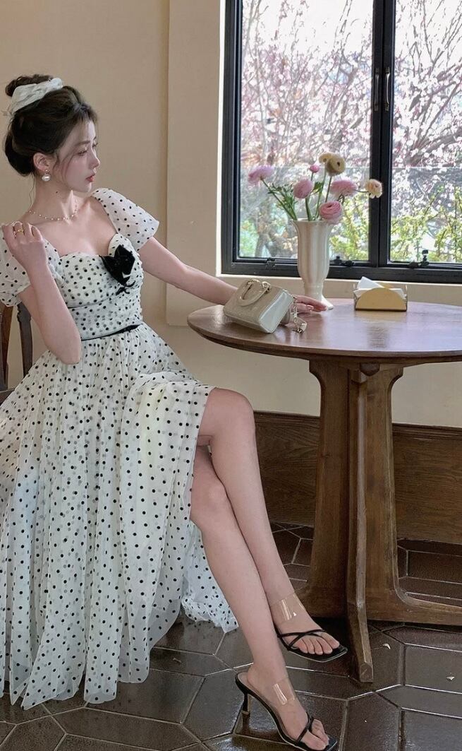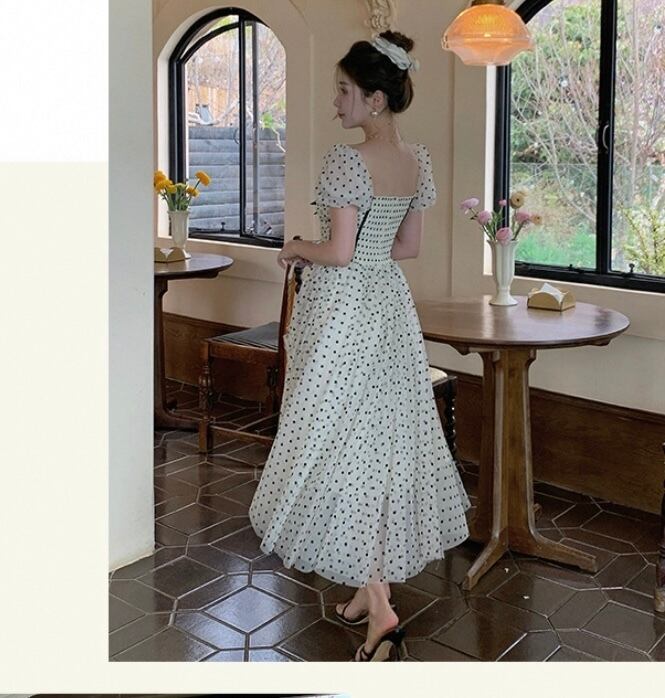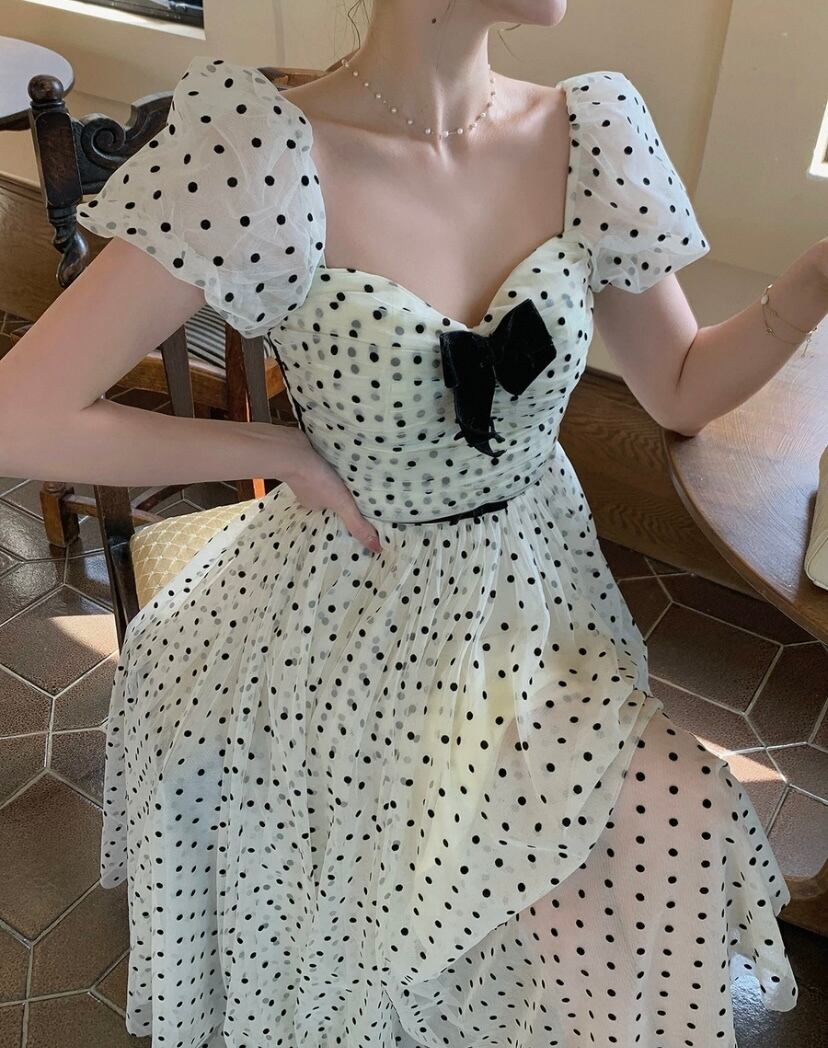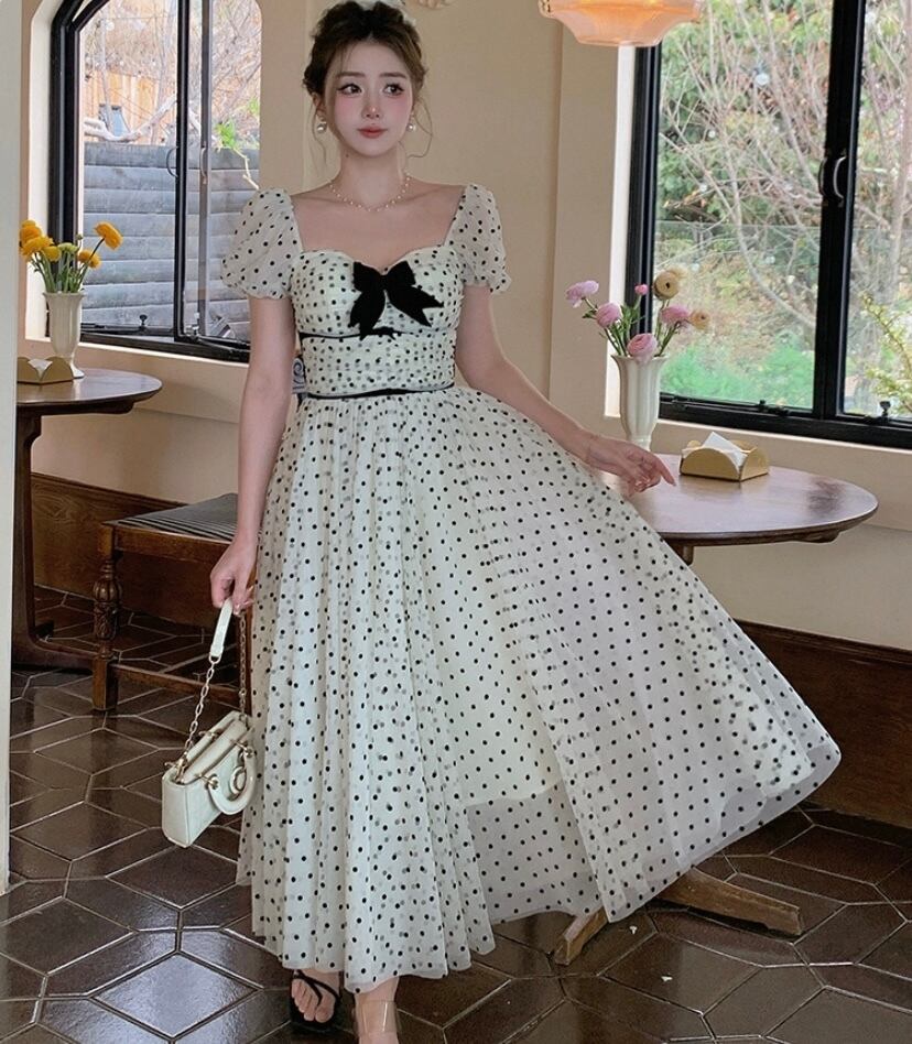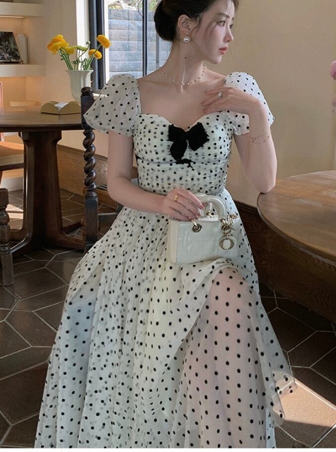 白 黒 水玉 ドット リボン ワンピース ドレス かわいい XL